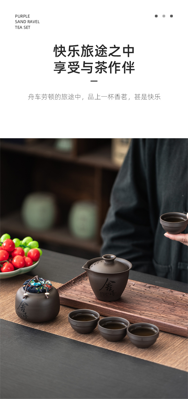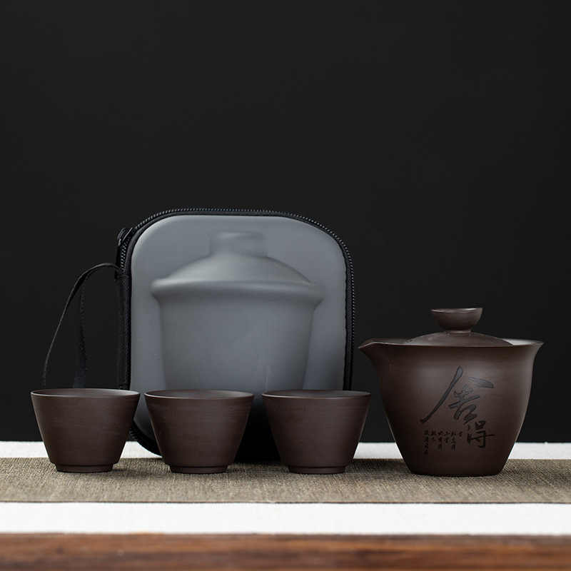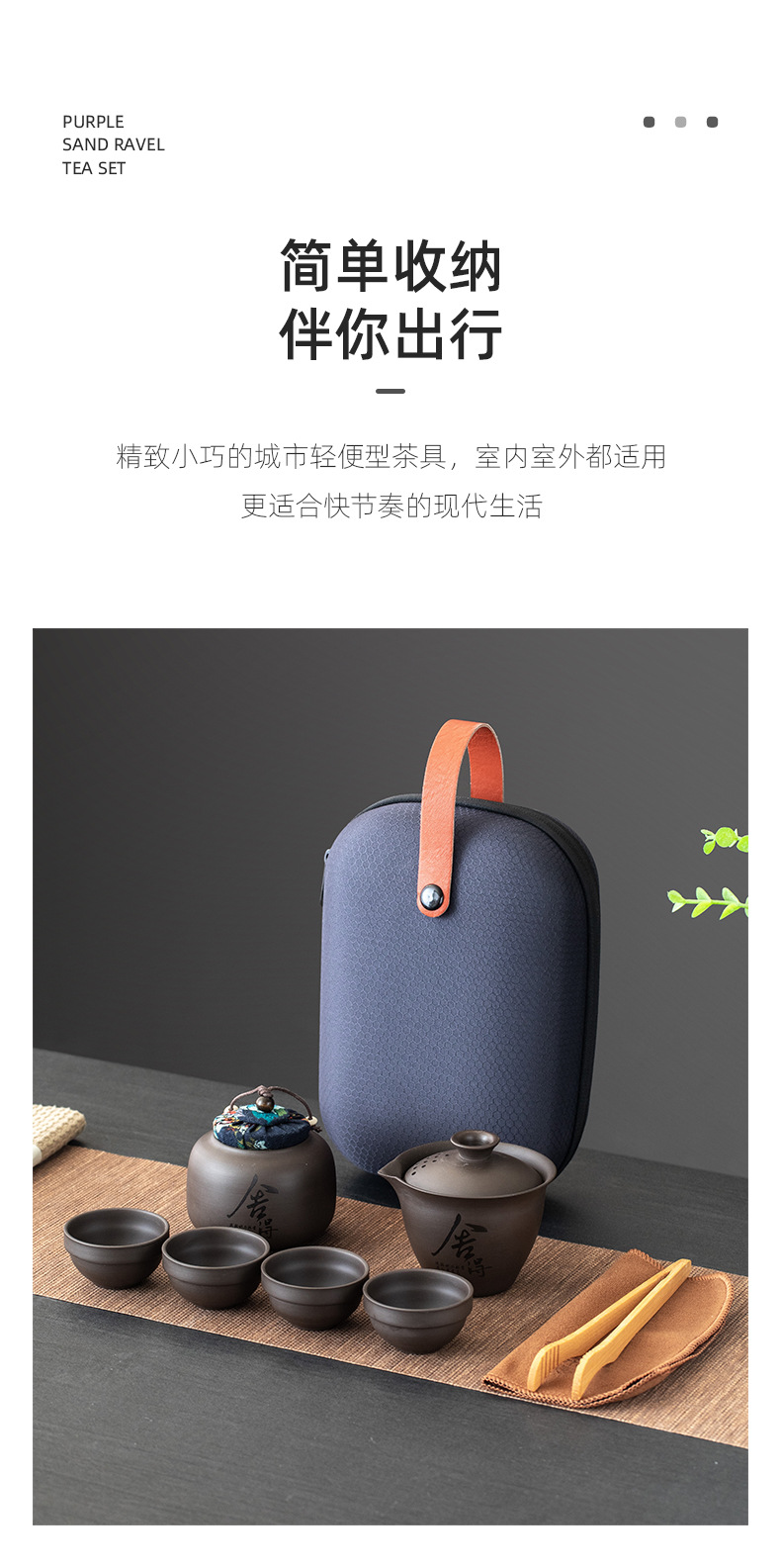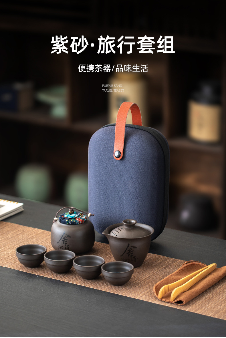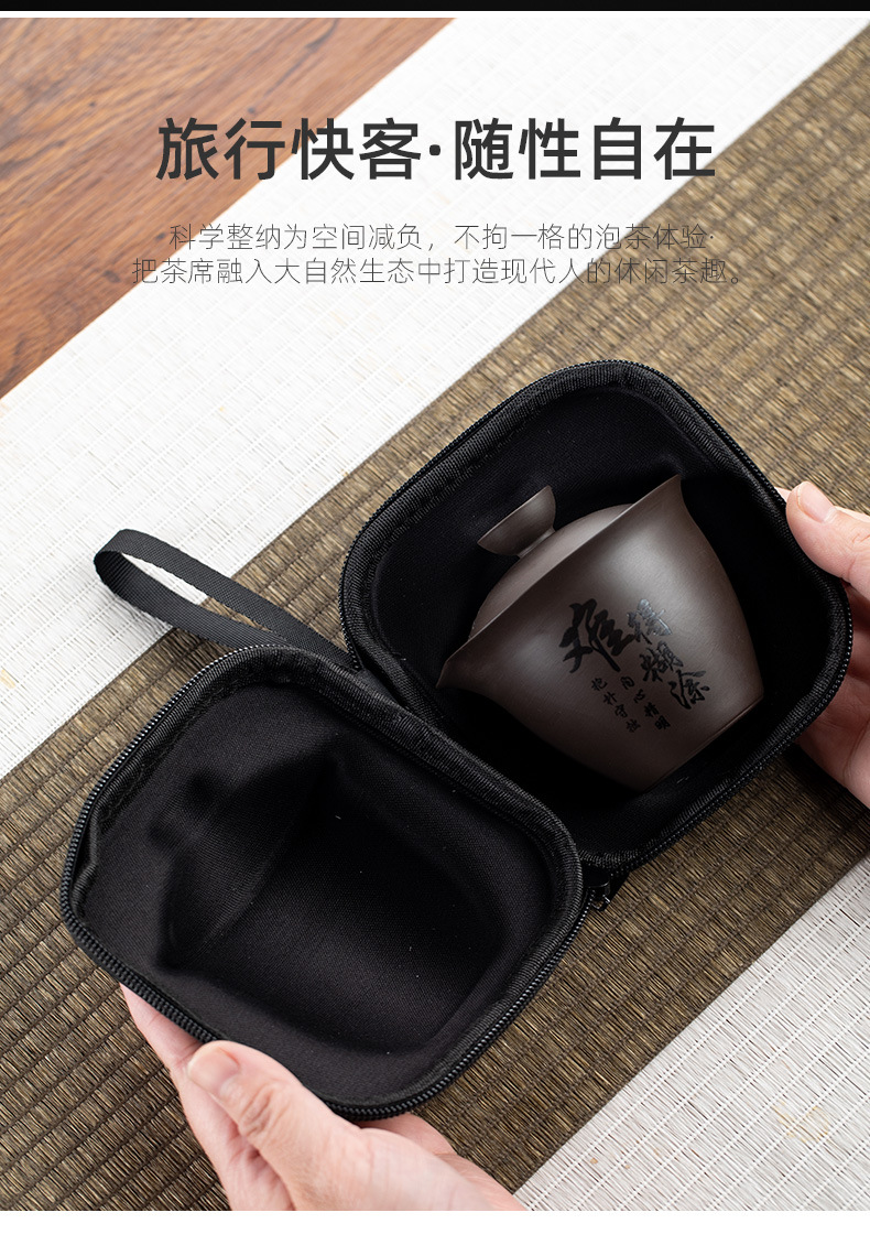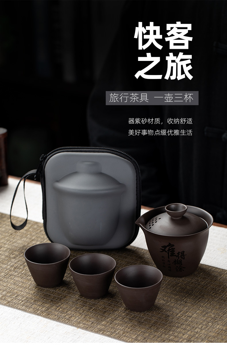 紫泥紫砂茶壶商务旅行茶具快客杯便携式收纳包户外泡车载一壶三杯