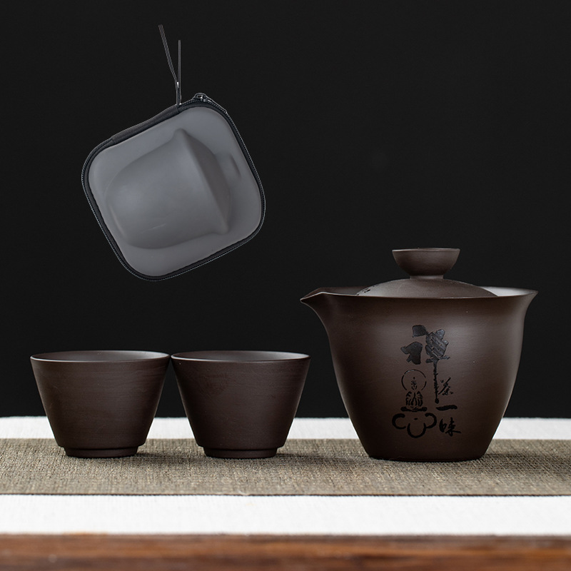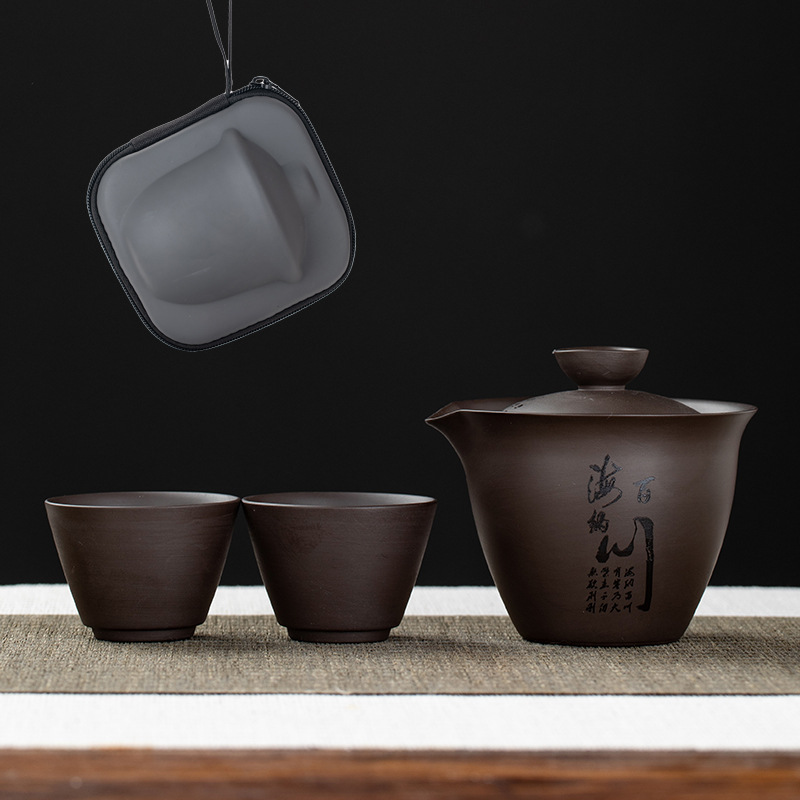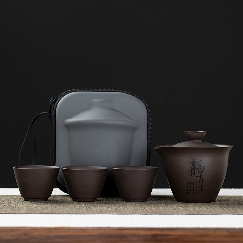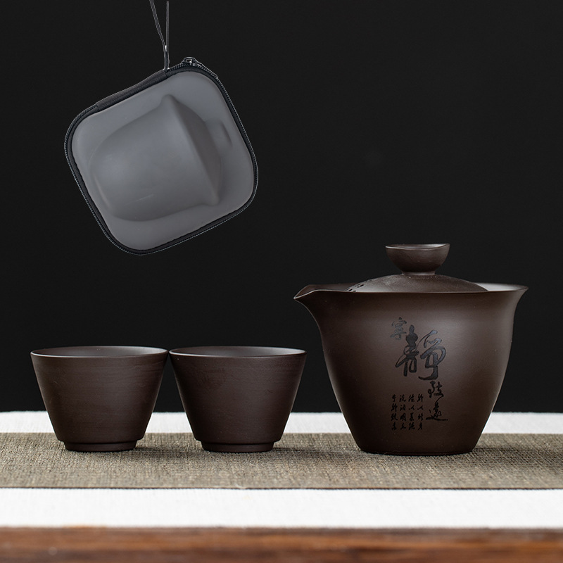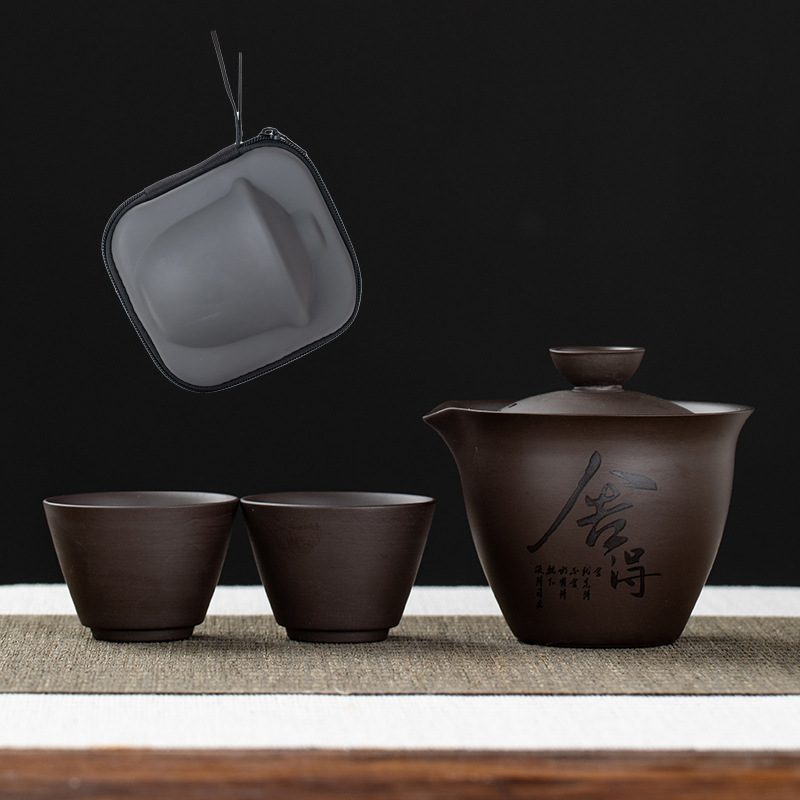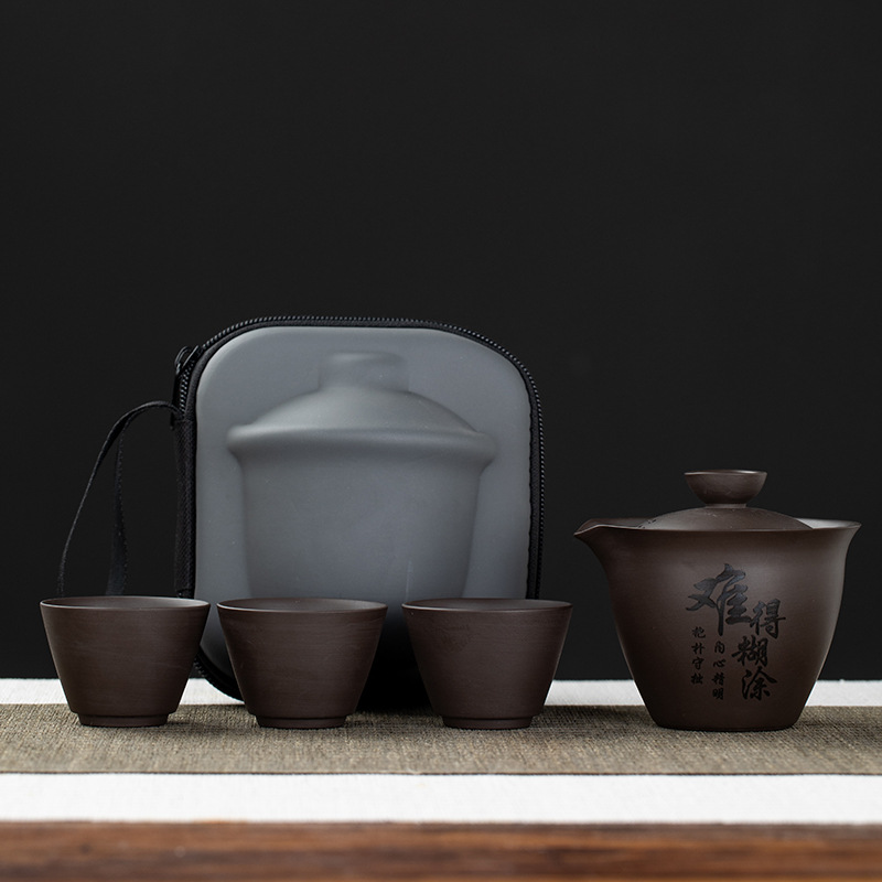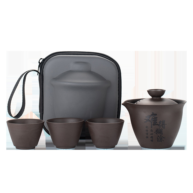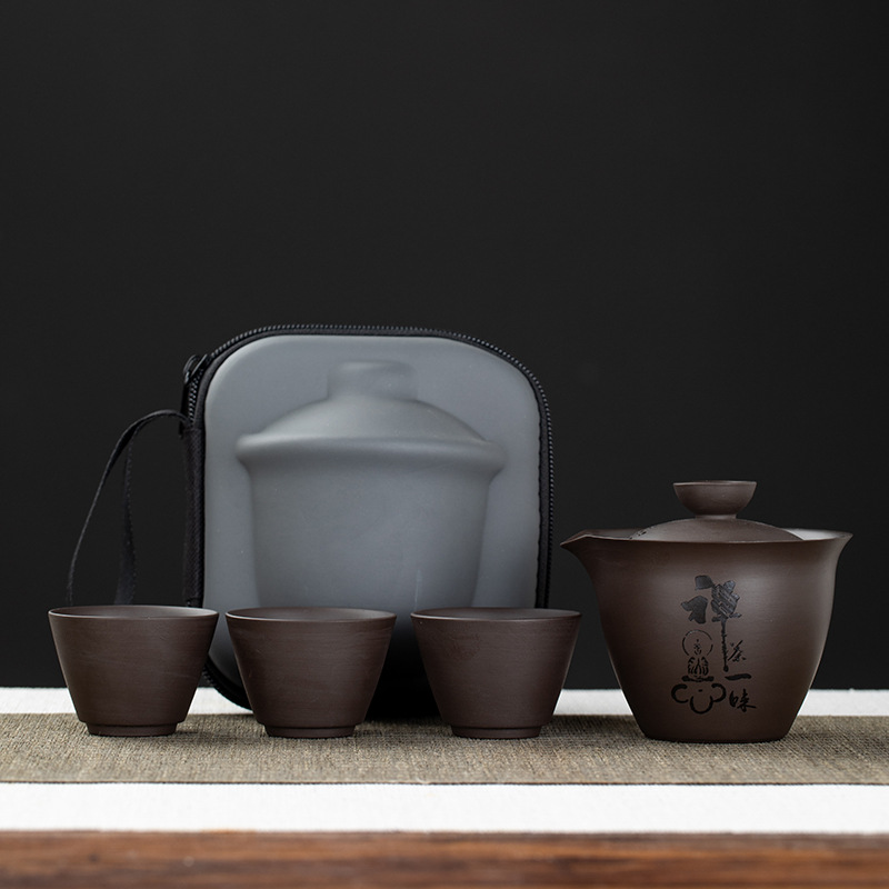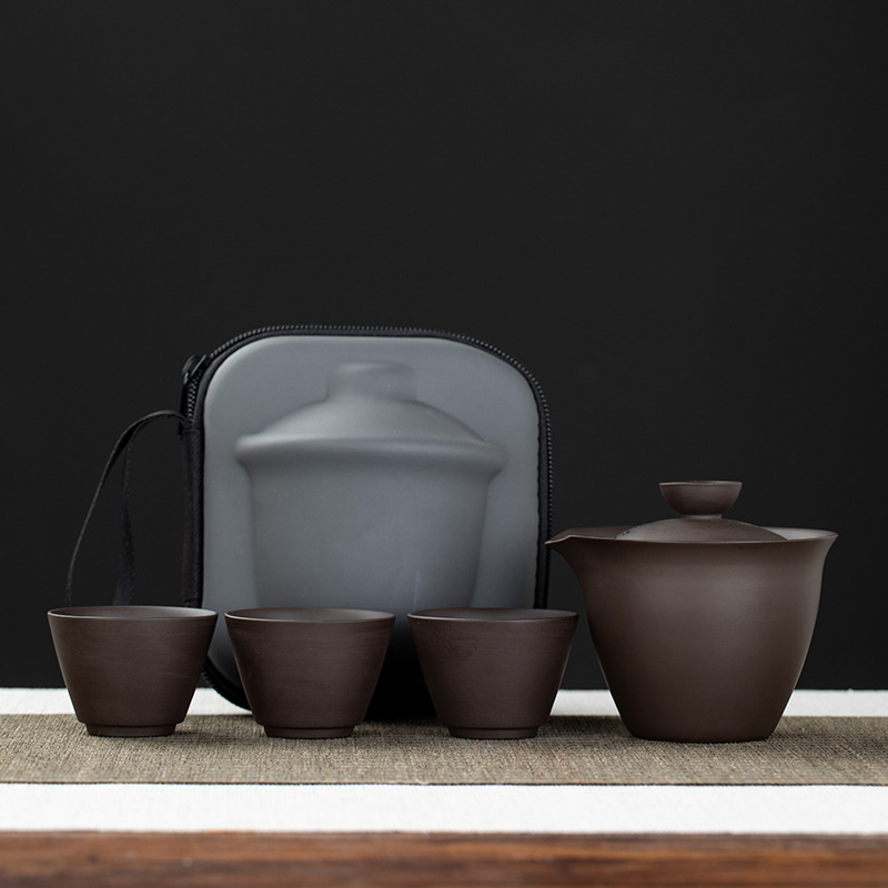紫泥紫砂茶壶商务旅行茶具快客杯便携式收纳包户外泡车载一壶三杯