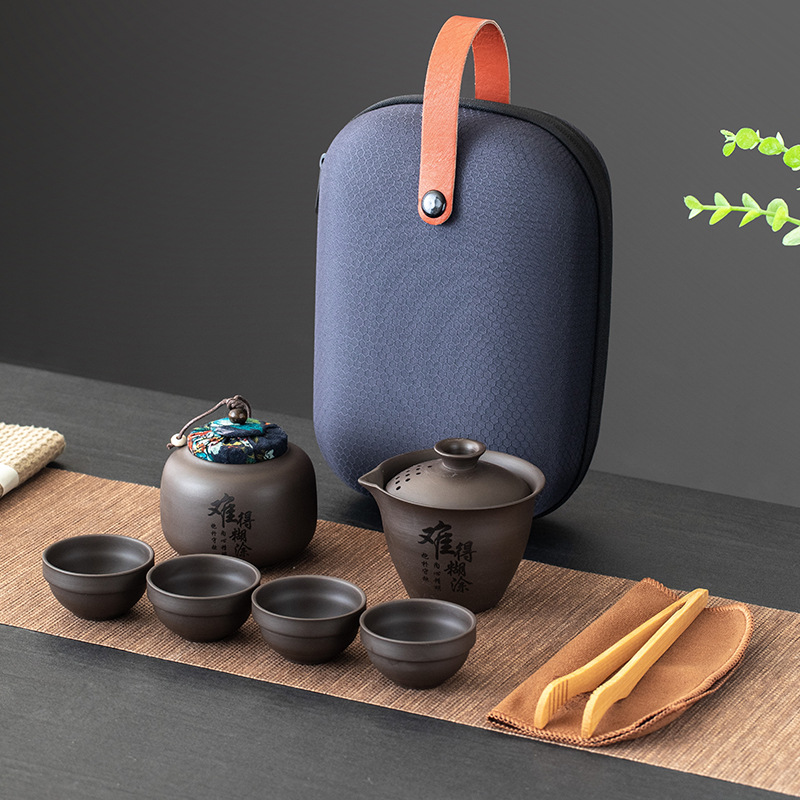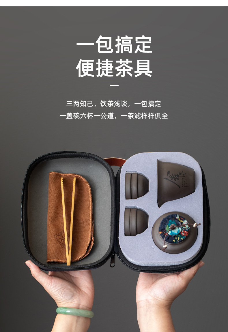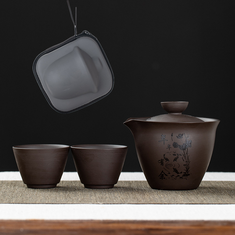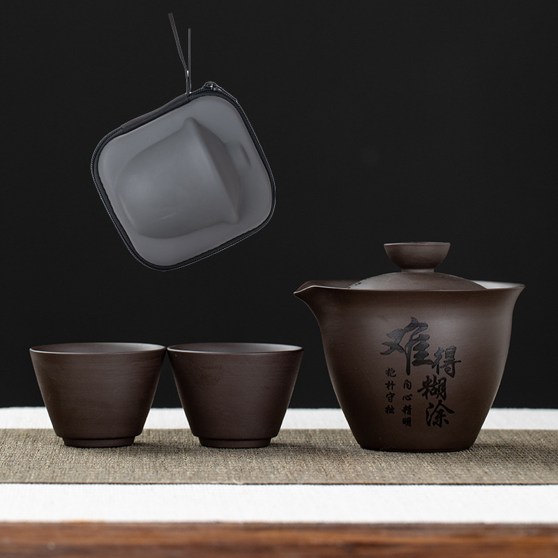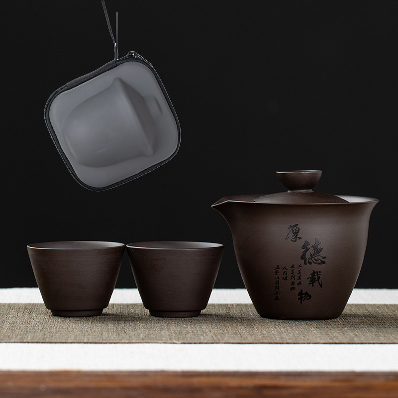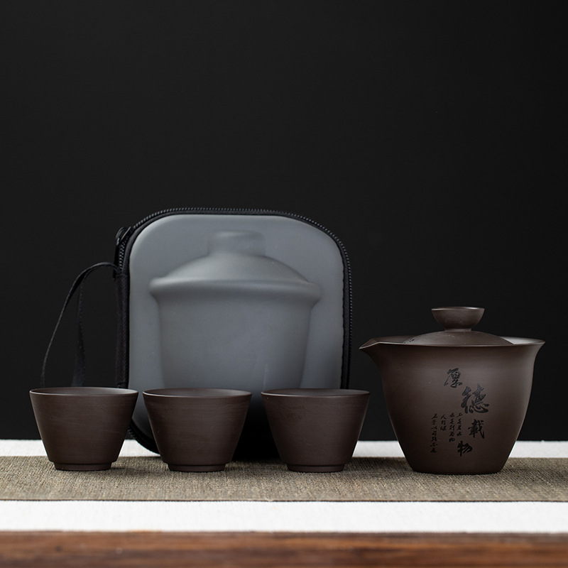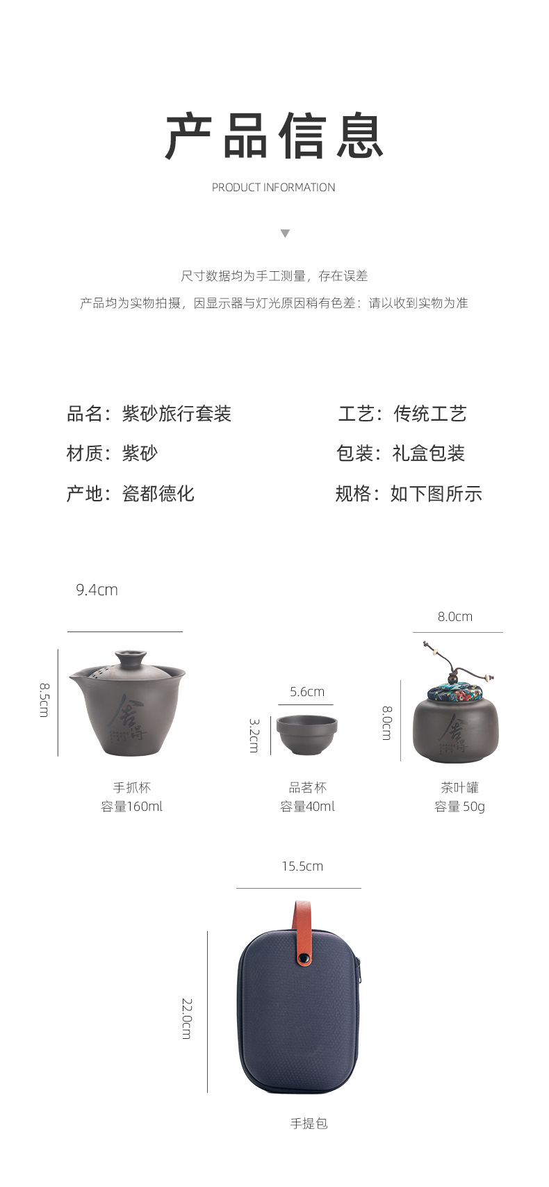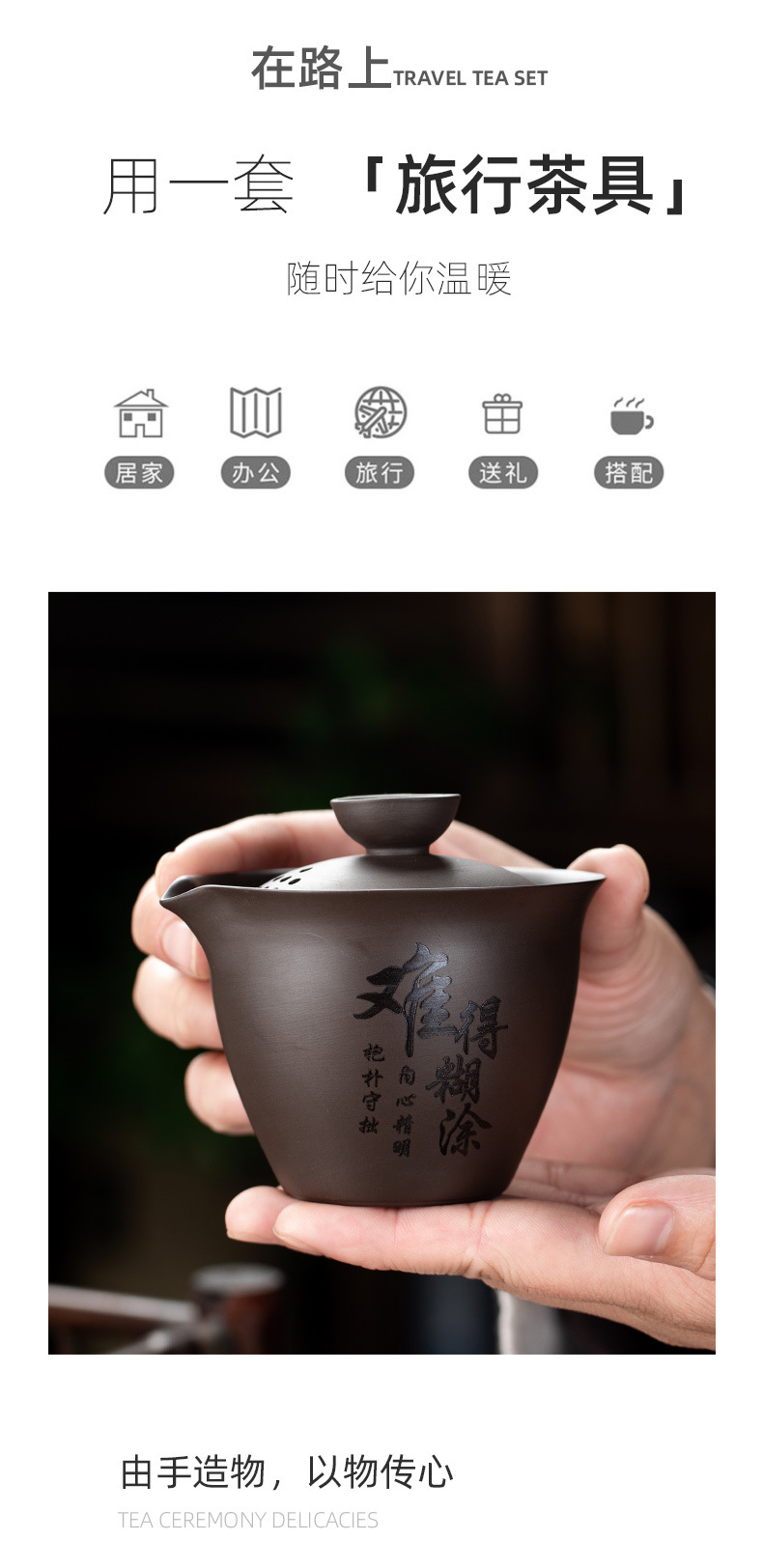紫泥紫砂茶壶商务旅行茶具快客杯便携式收纳包户外泡车载一壶三杯