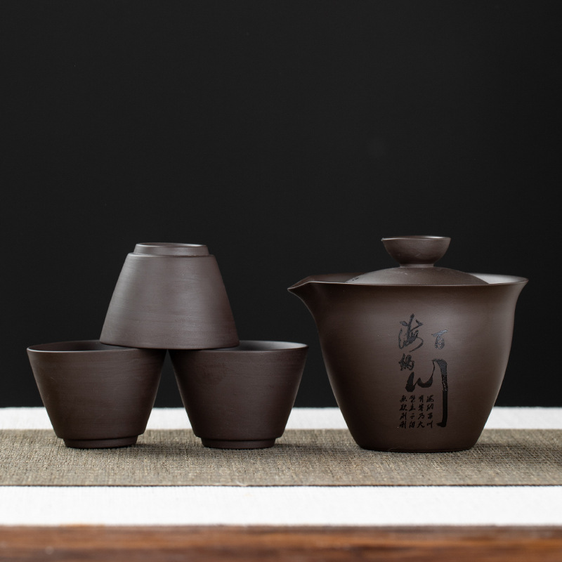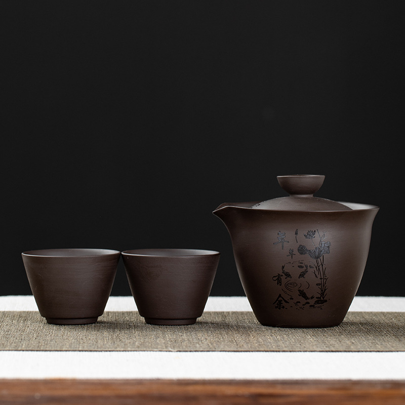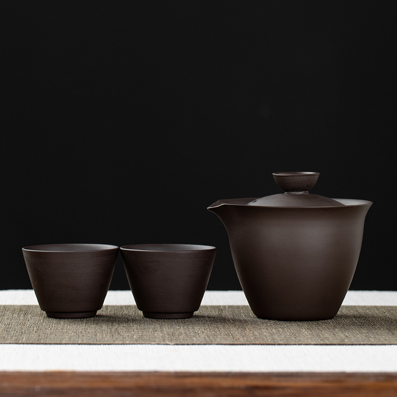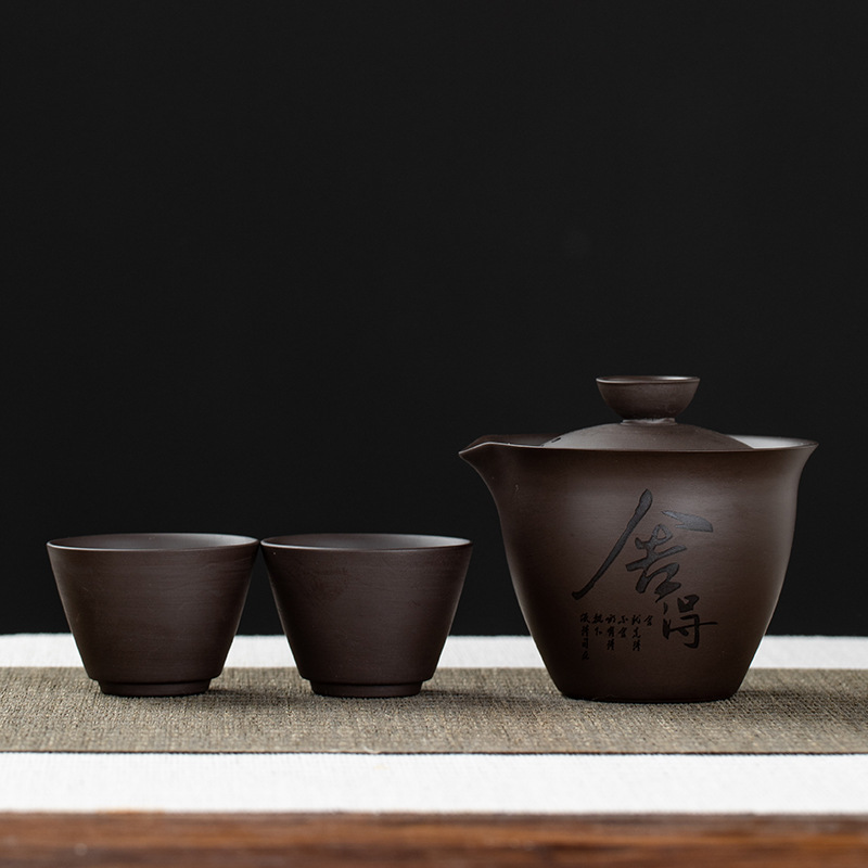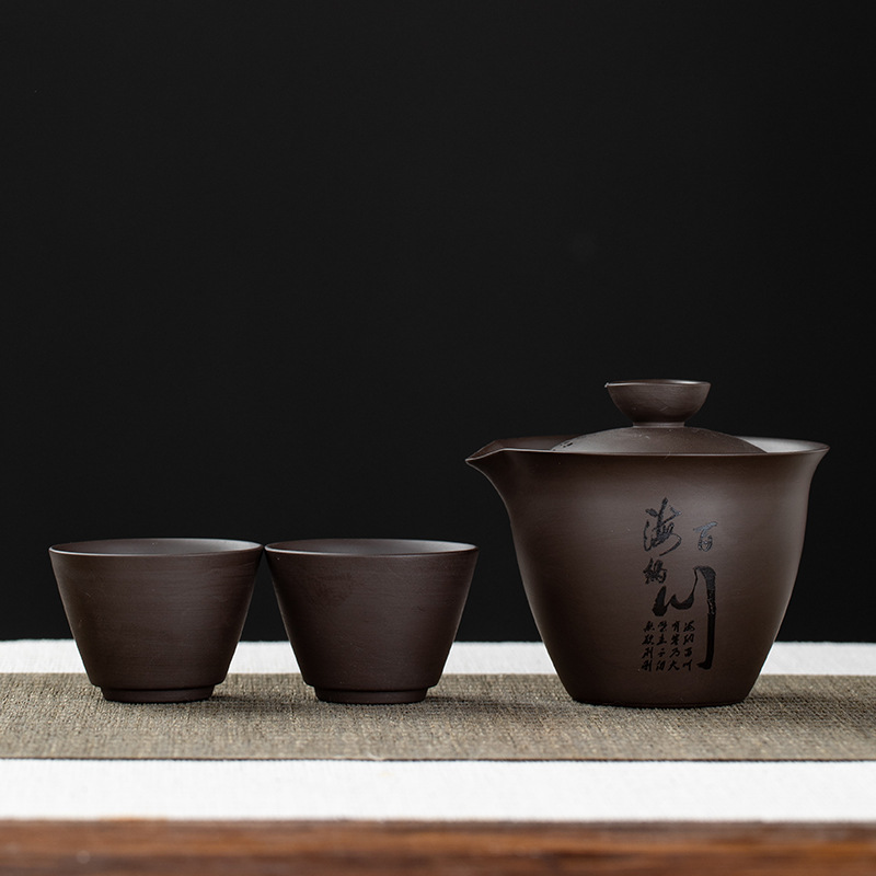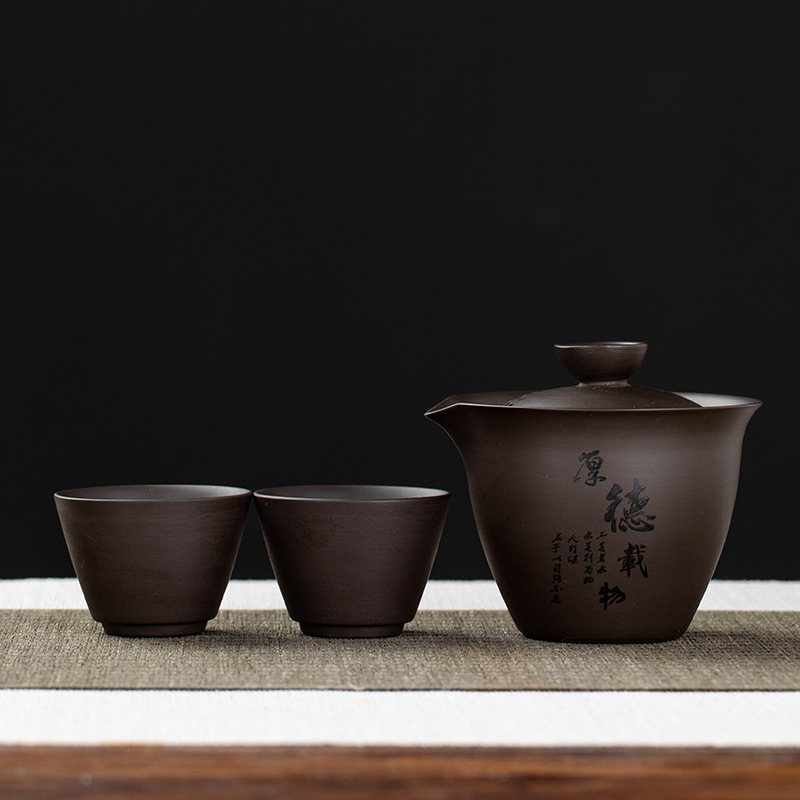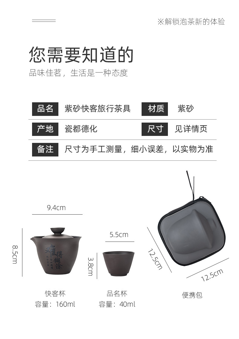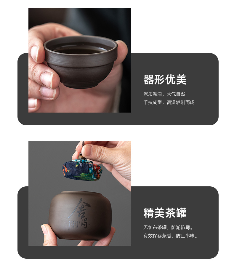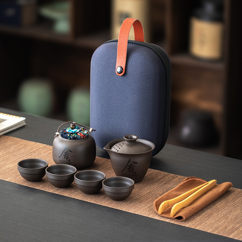 紫泥紫砂茶壶商务旅行茶具快客杯便携式收纳包户外泡车载一壶三杯