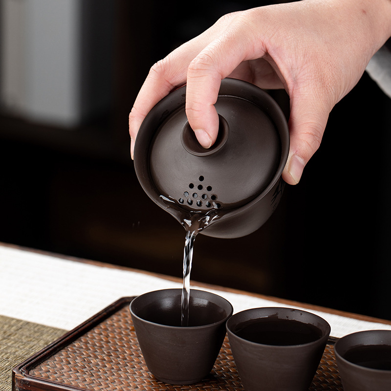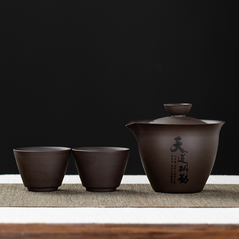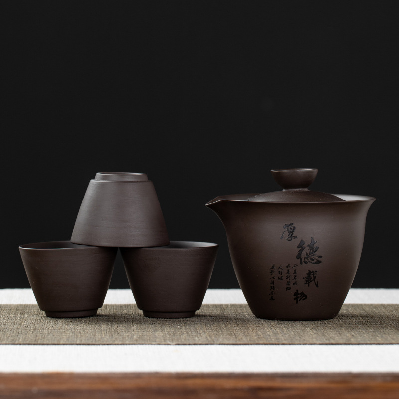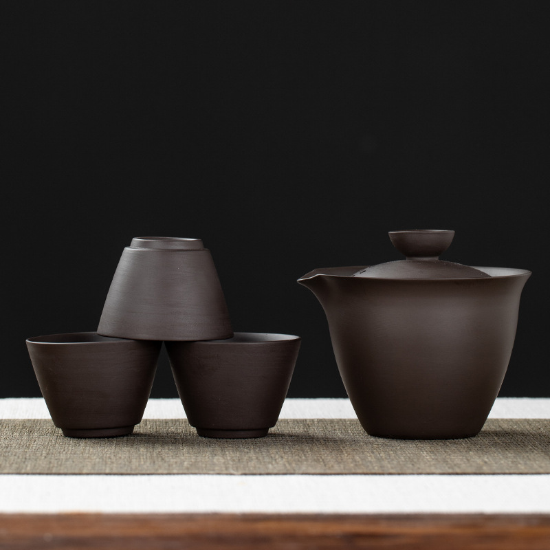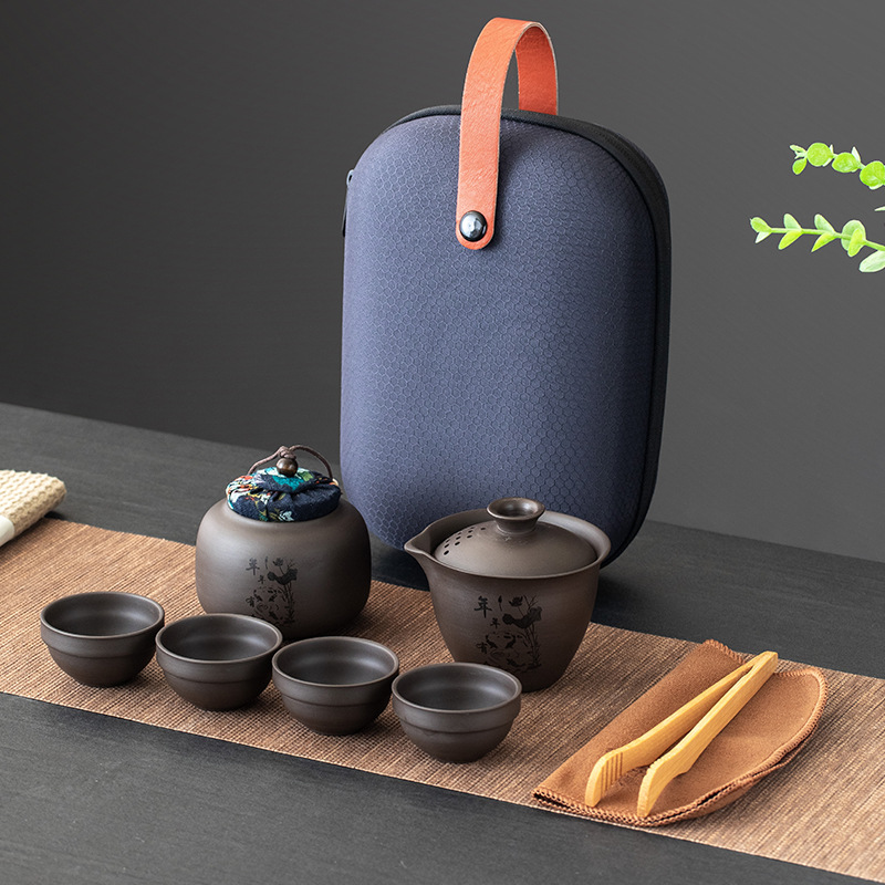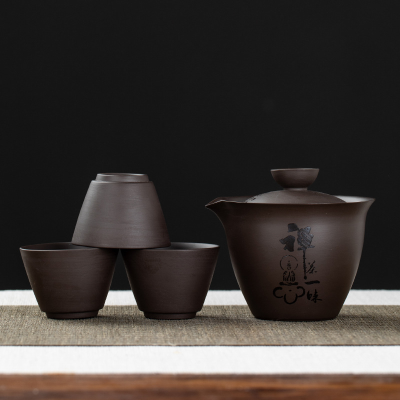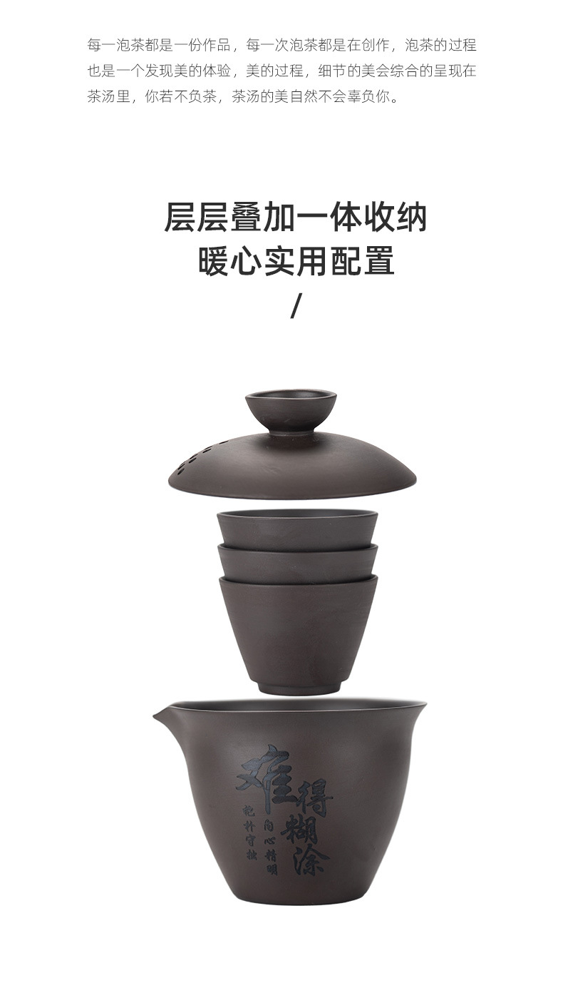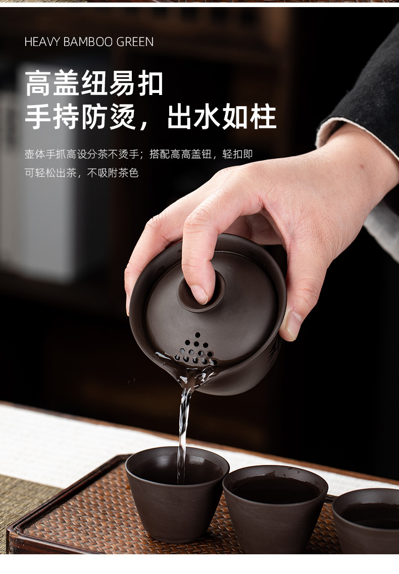 紫泥紫砂茶壶商务旅行茶具快客杯便携式收纳包户外泡车载一壶三杯