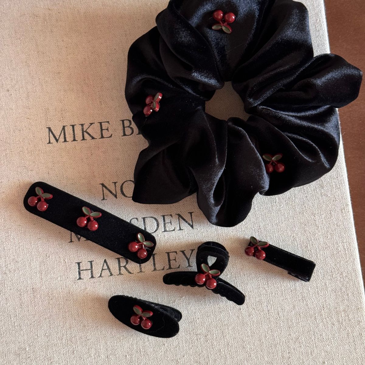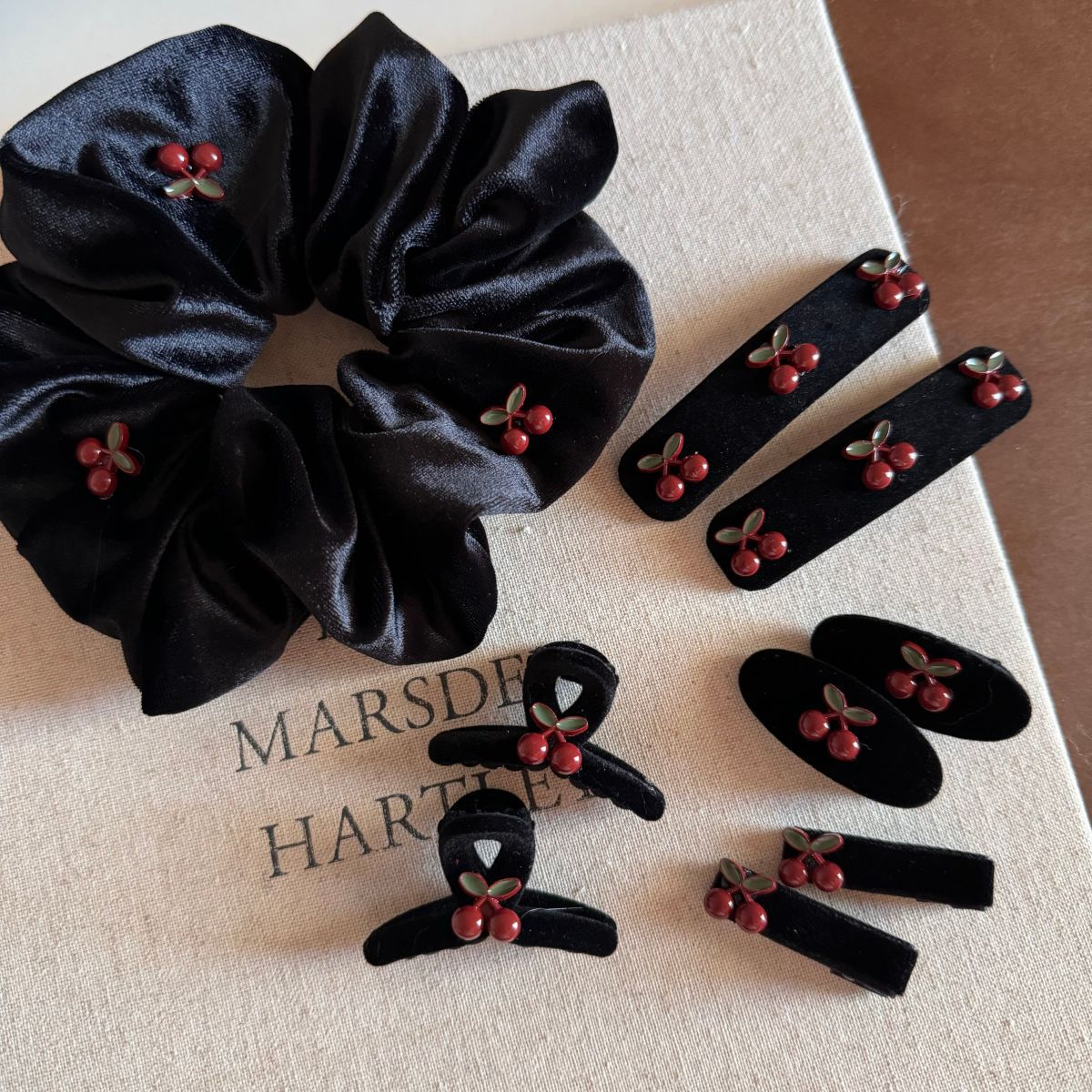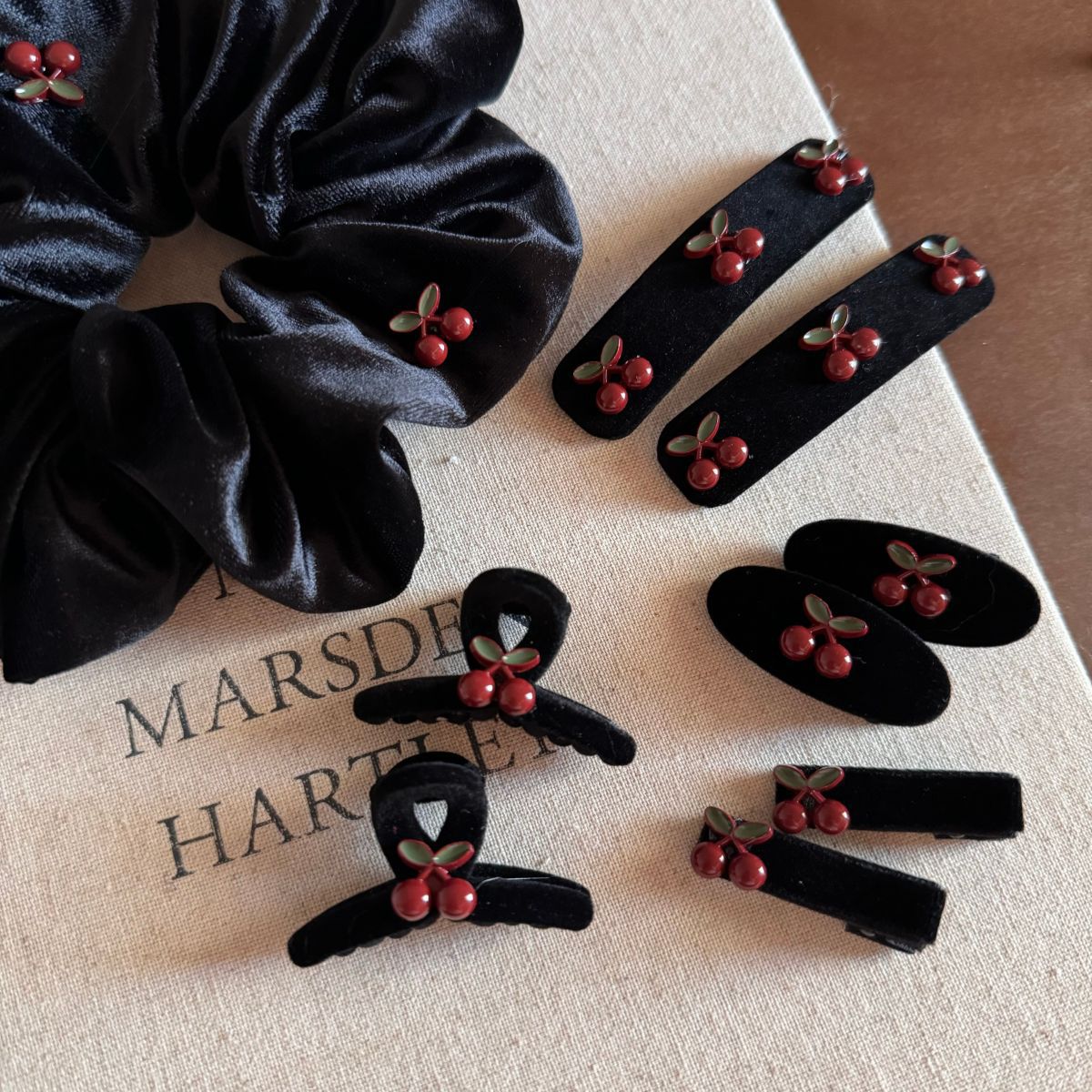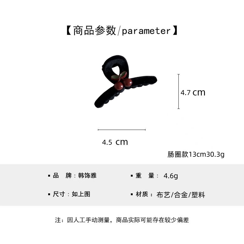 红樱桃复古黑色丝绒小抓夹BB夹甜美可爱刘海夹发饰头饰新款