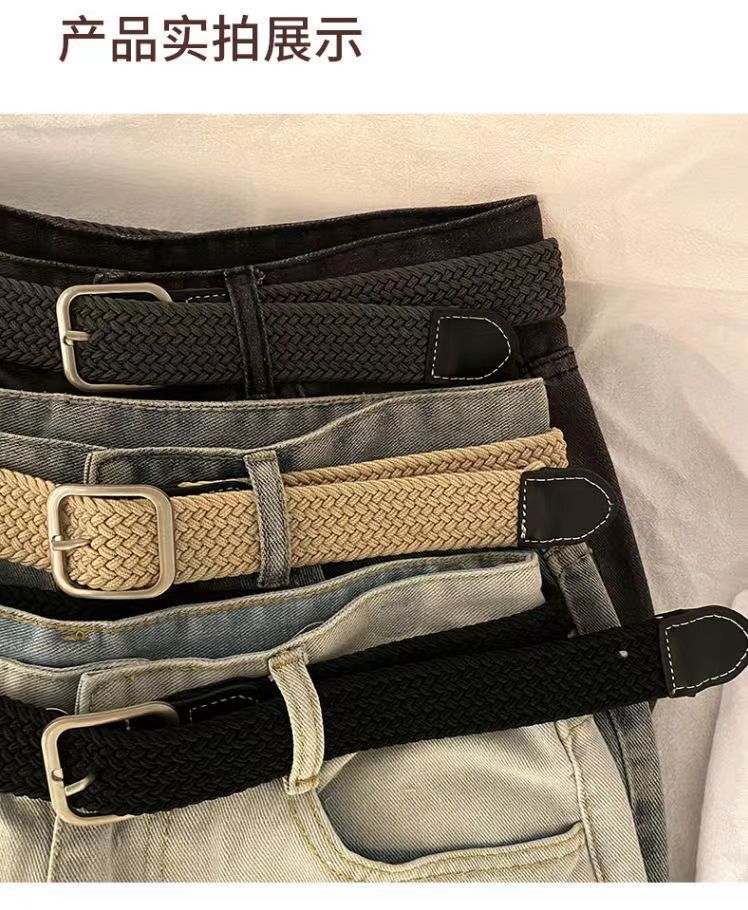 弹力松紧裤带帆布编织腰带女士男女韩版百搭休闲针扣皮带女学生