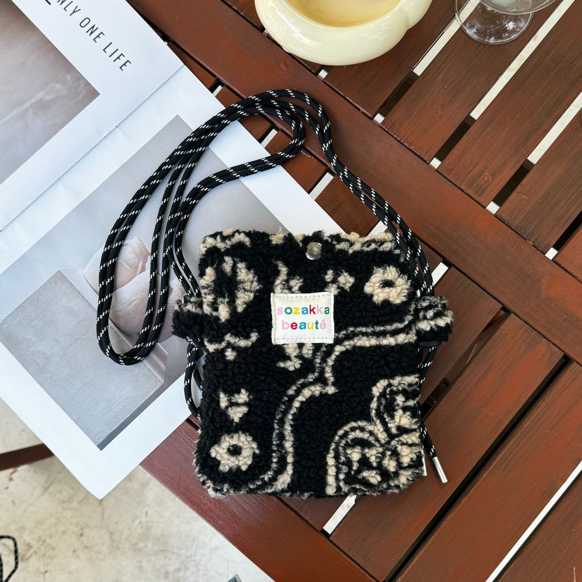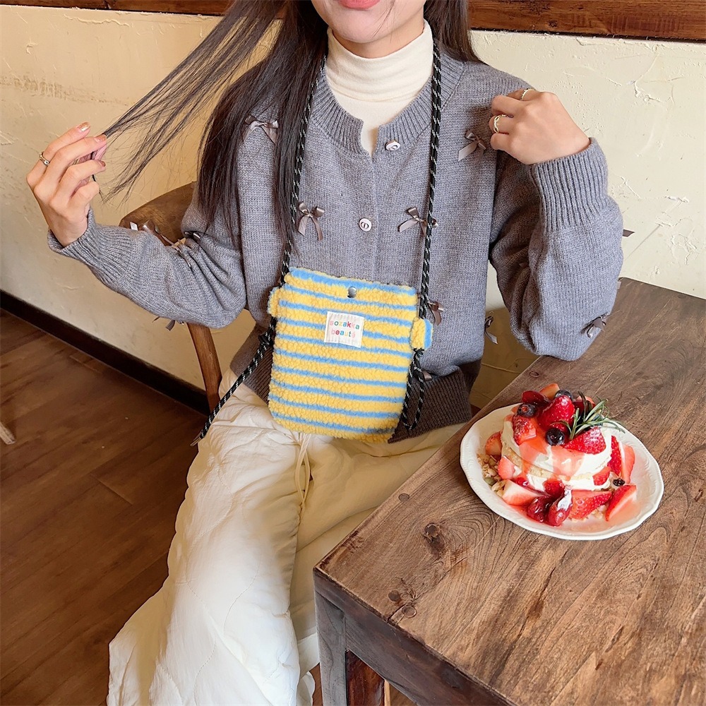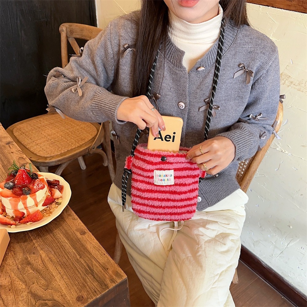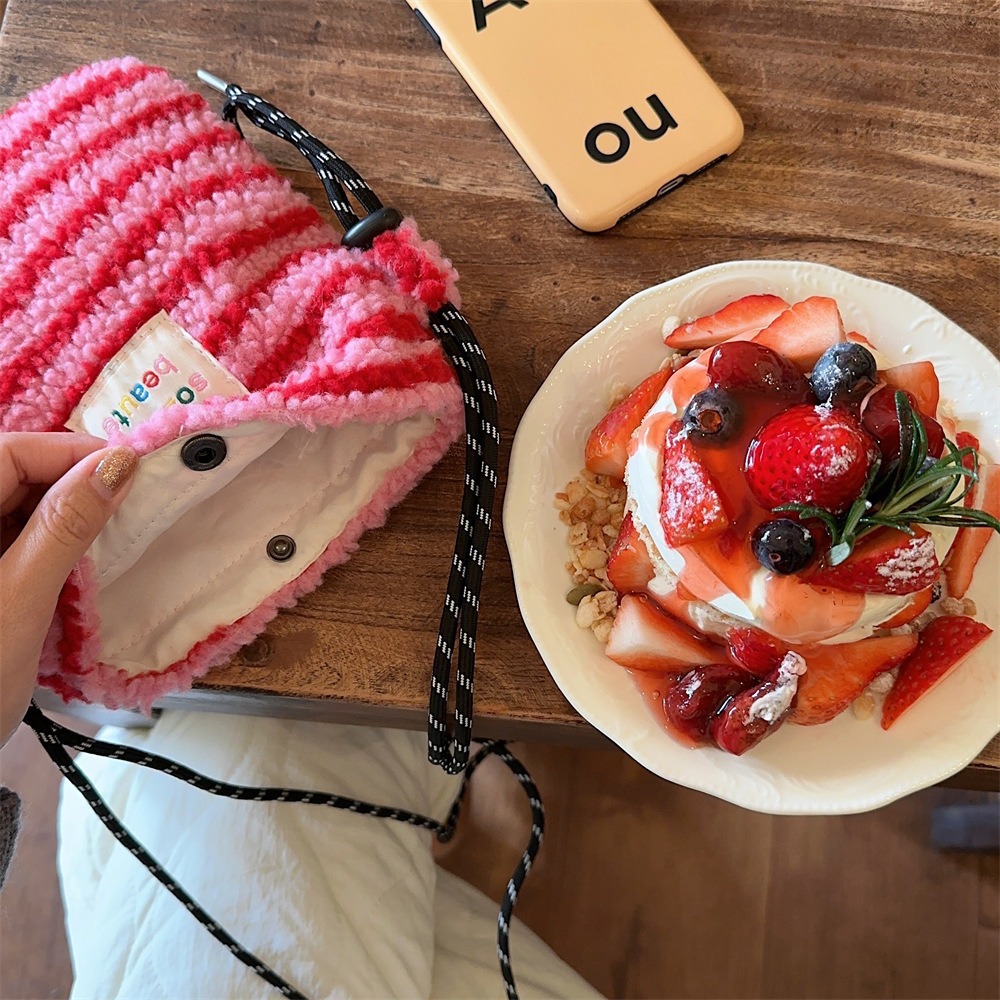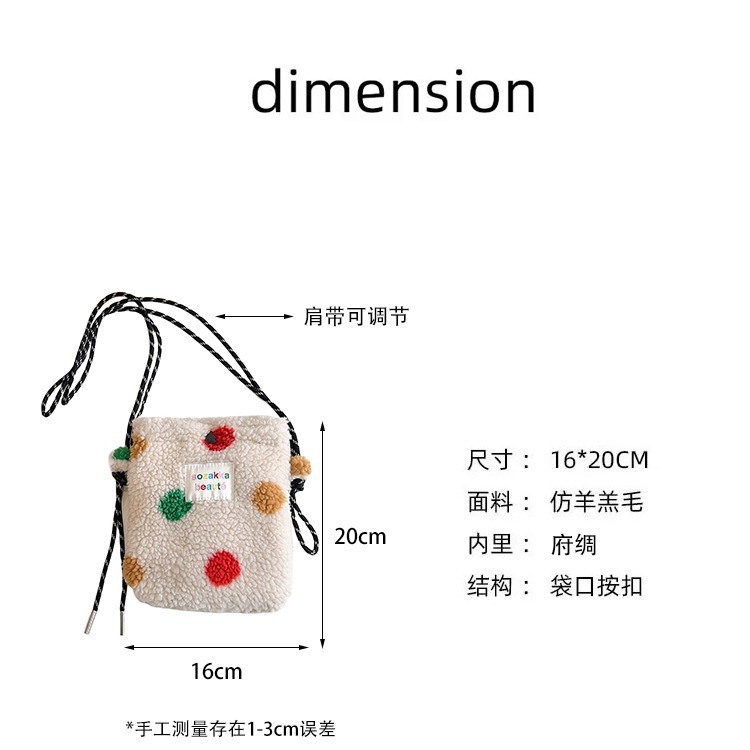 网红同款新款毛绒彩虹波点可爱小包粉色单肩斜挎包逛街随身收纳袋