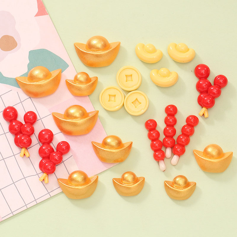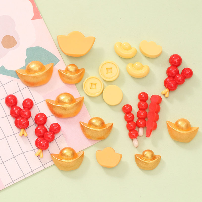 新年元宝铜钱糖葫芦 diy奶油胶手机壳钥匙扣鞋扣发夹树脂饰品配件