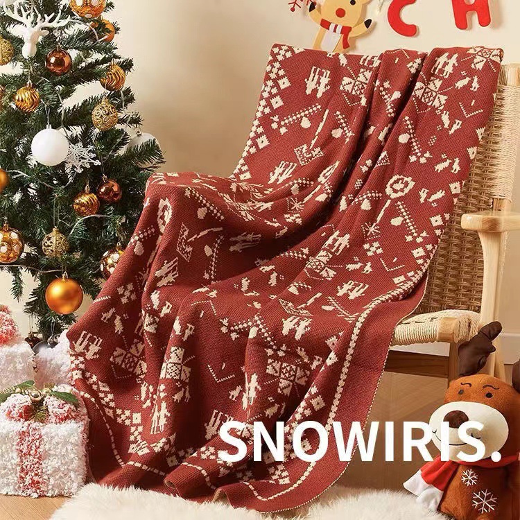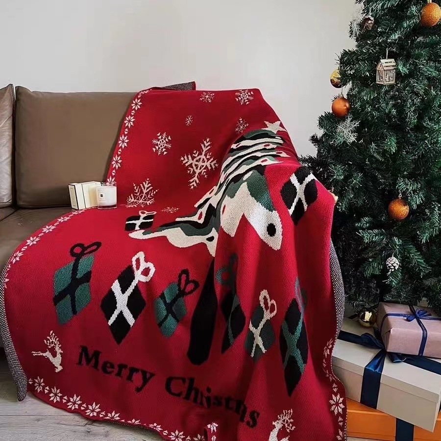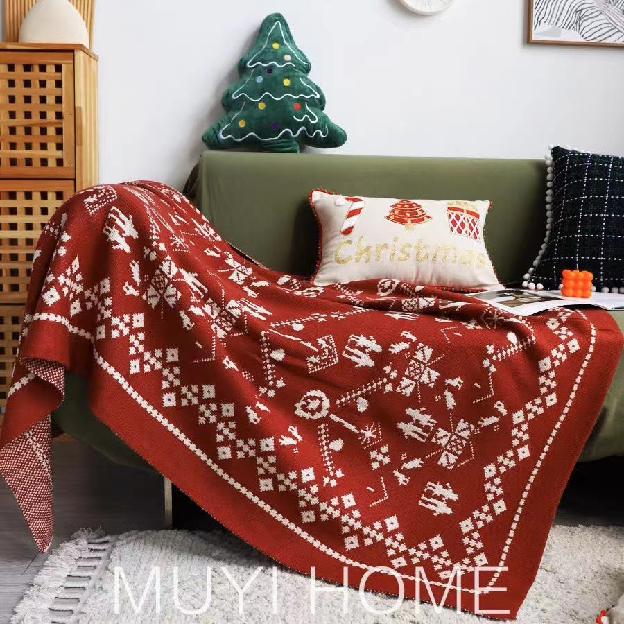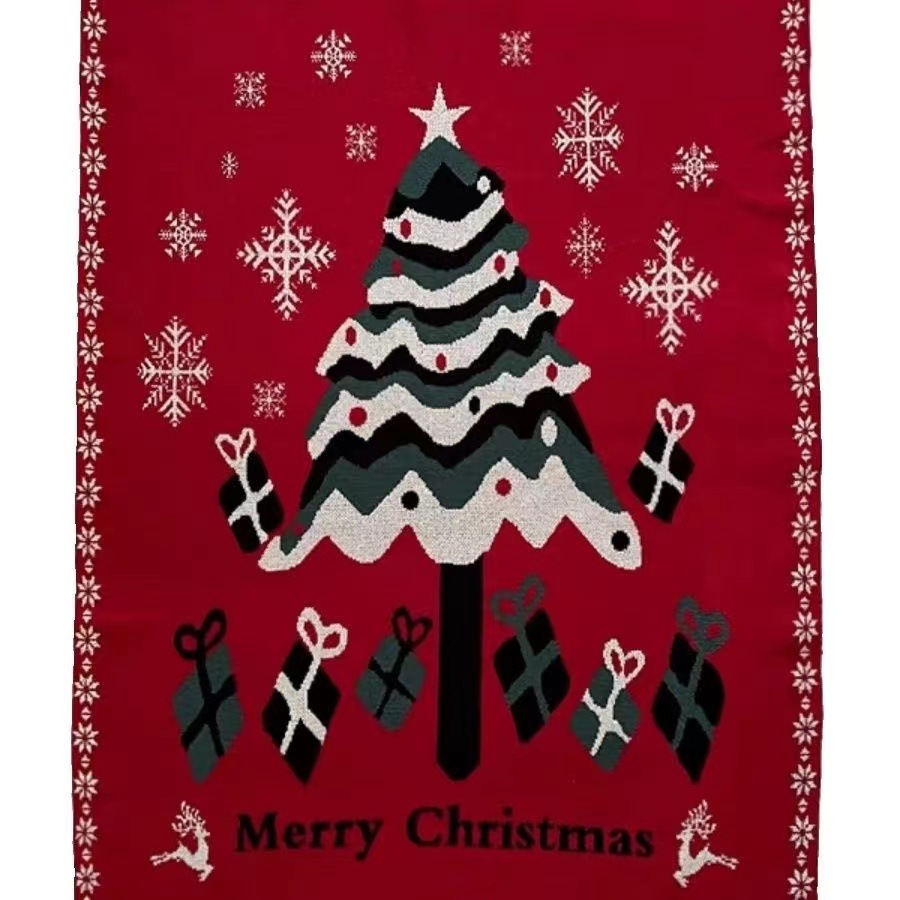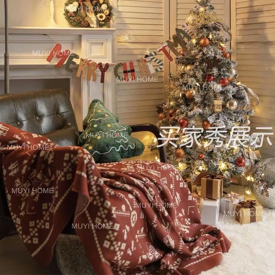 新年红色圣诞装饰毯子冬季加厚客厅沙发毯盖毯搭毯针织毛毯床尾巾