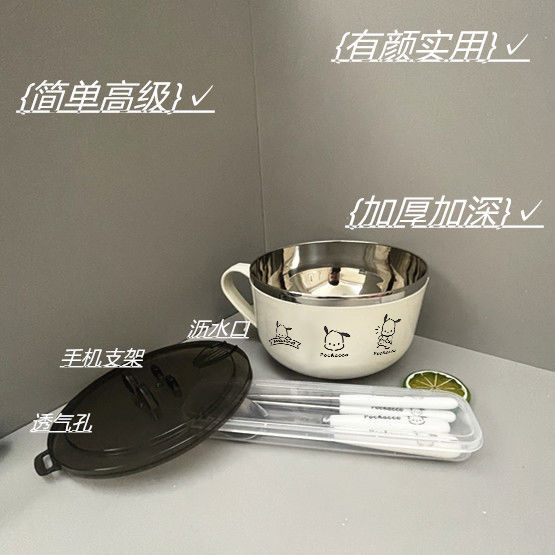 304不锈钢泡面碗学生宿舍沥水带盖方便面碗防烫汤碗大容量饭盒