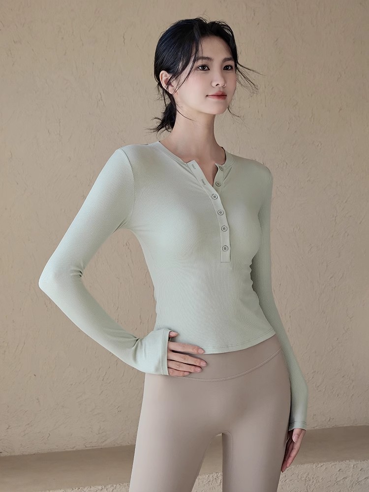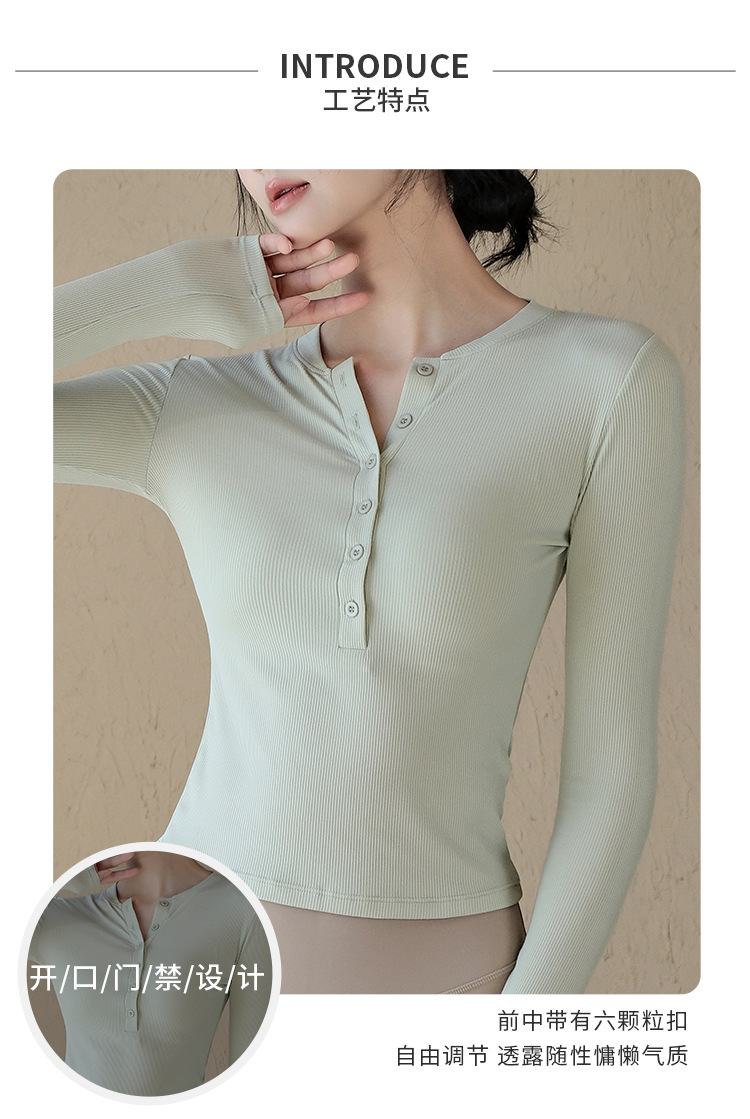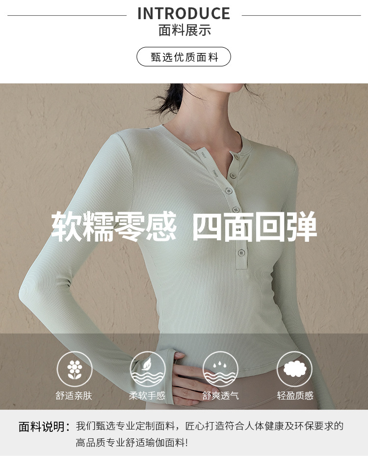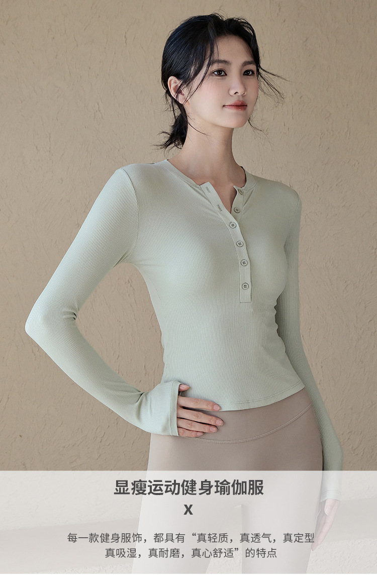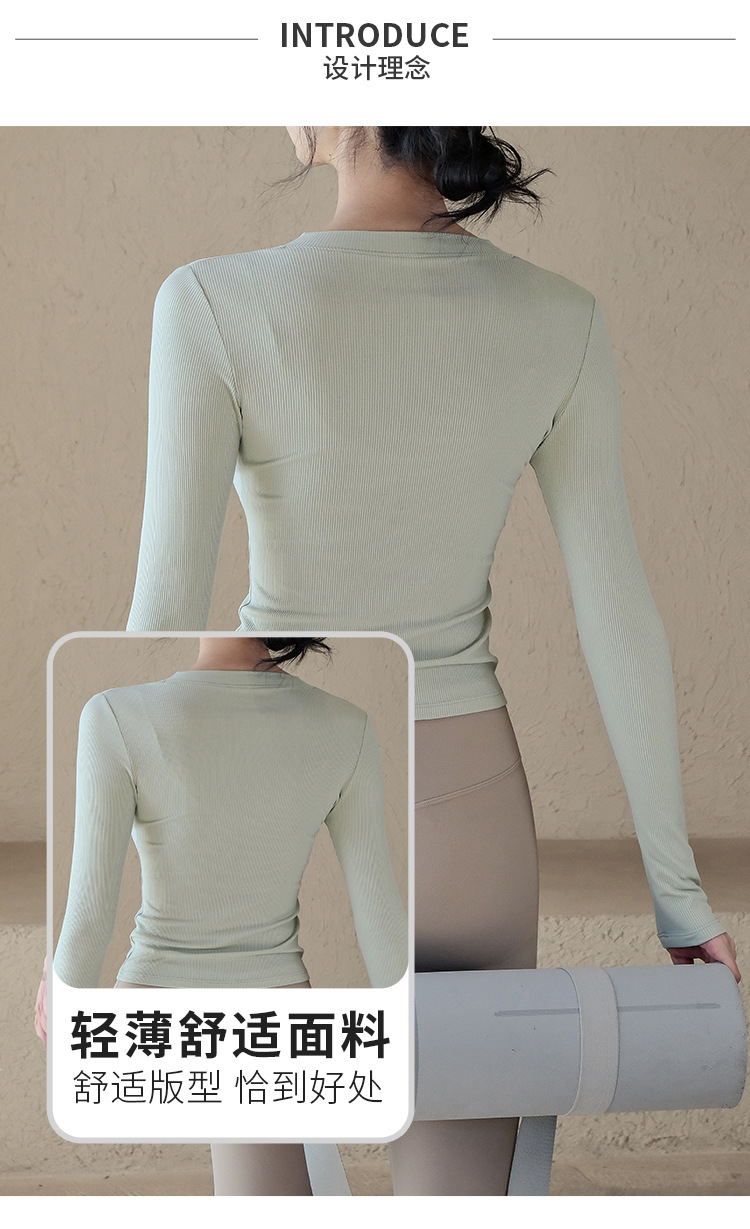 瑜伽服女秋冬亲肤罗纹运动上衣修身显瘦长袖T恤普拉提训练健身服