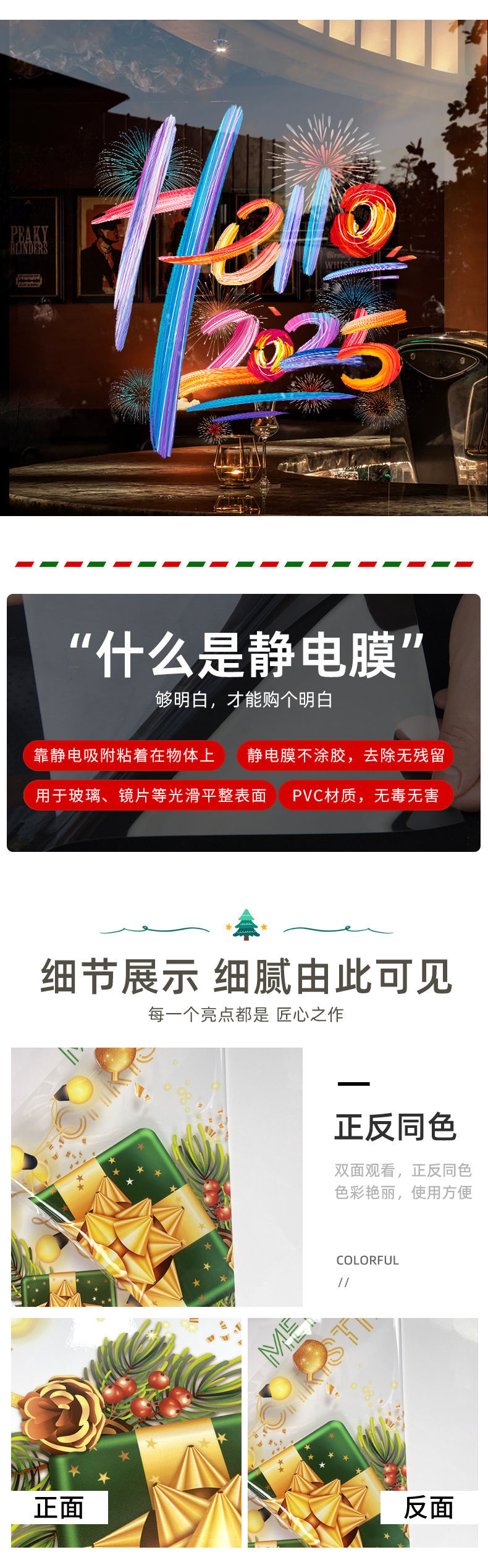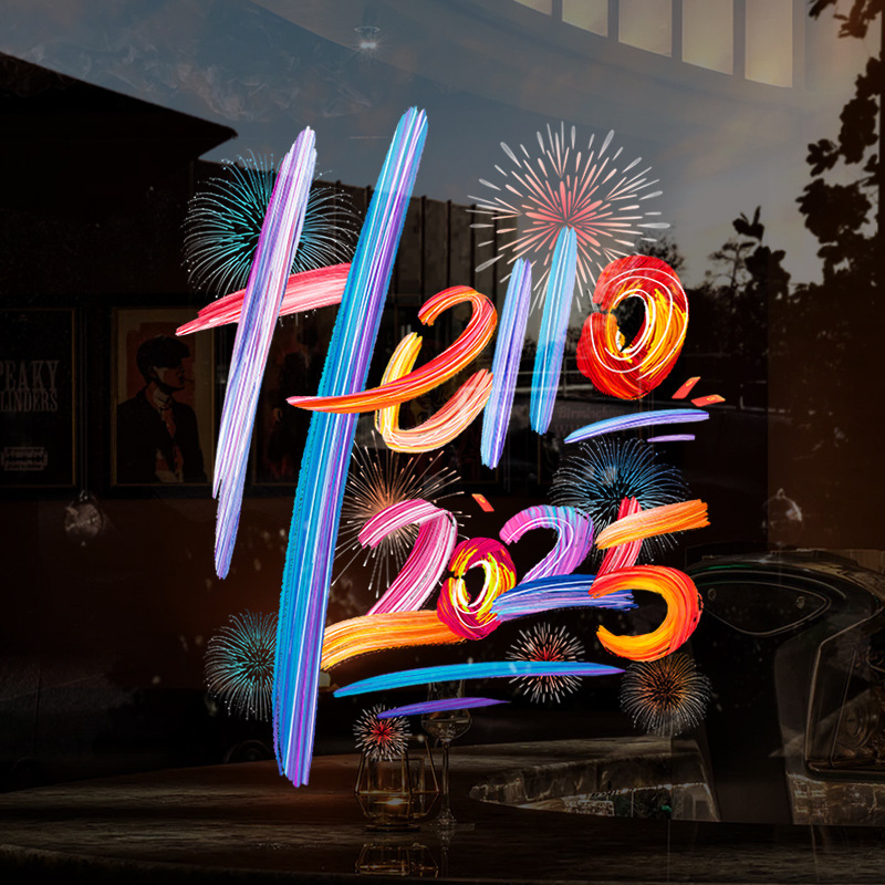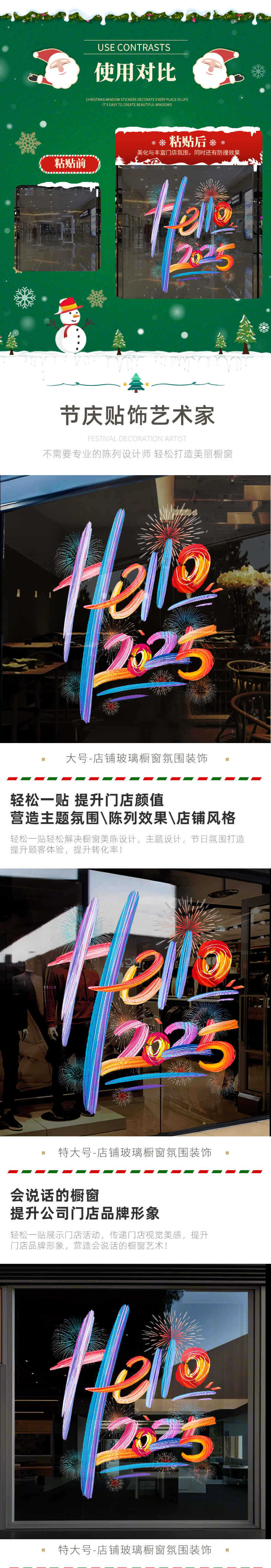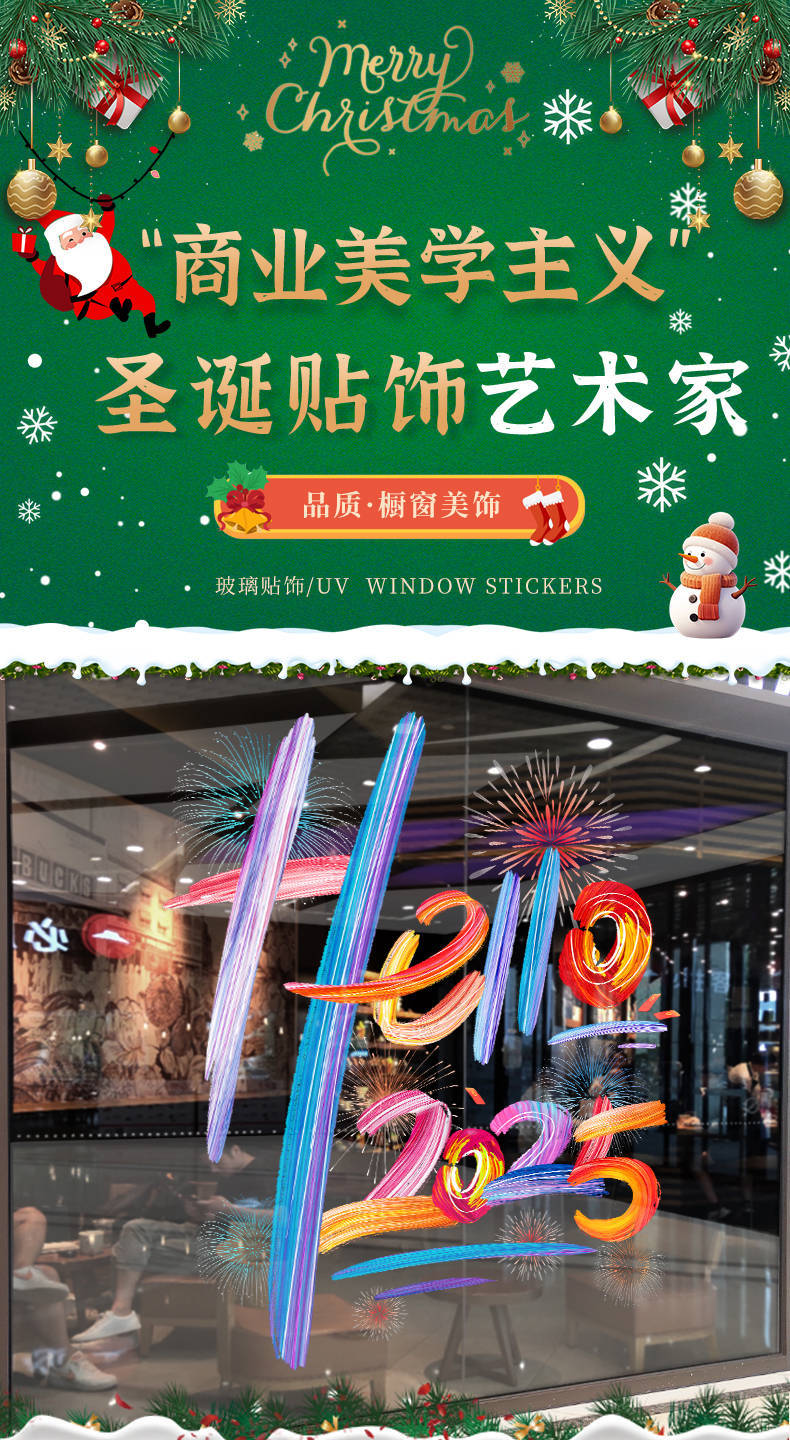 2025新年元旦圣诞节装饰品布置静电贴纸店铺节日玻璃橱窗贴门贴画