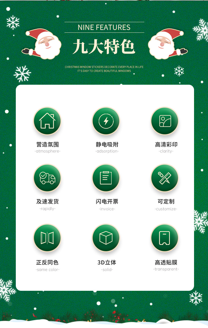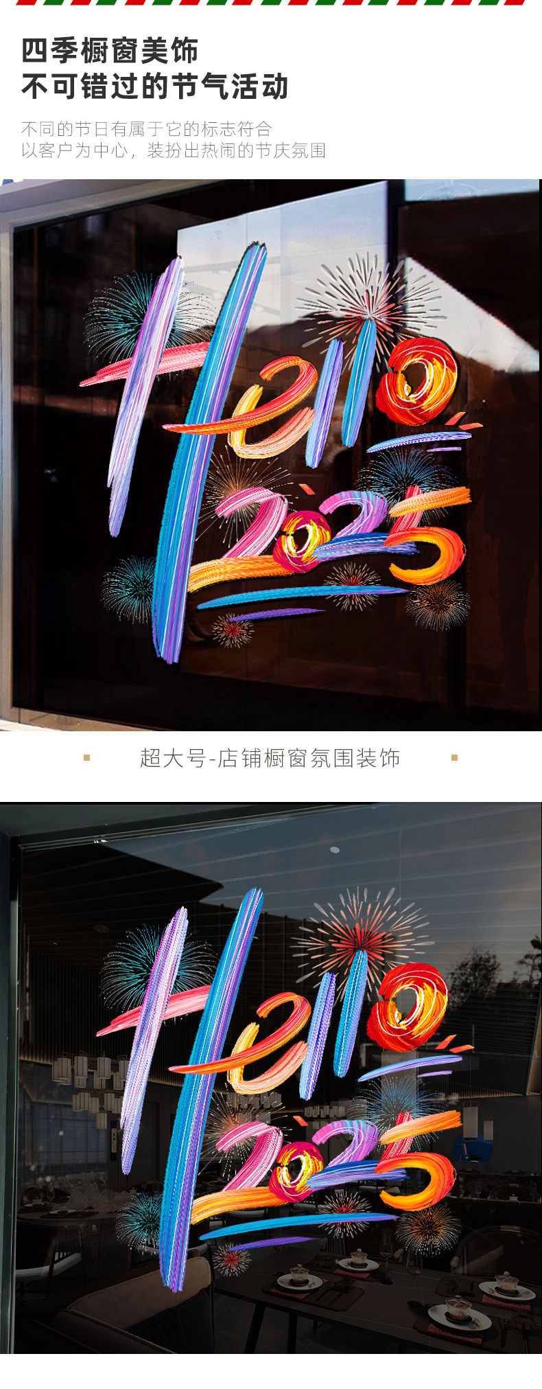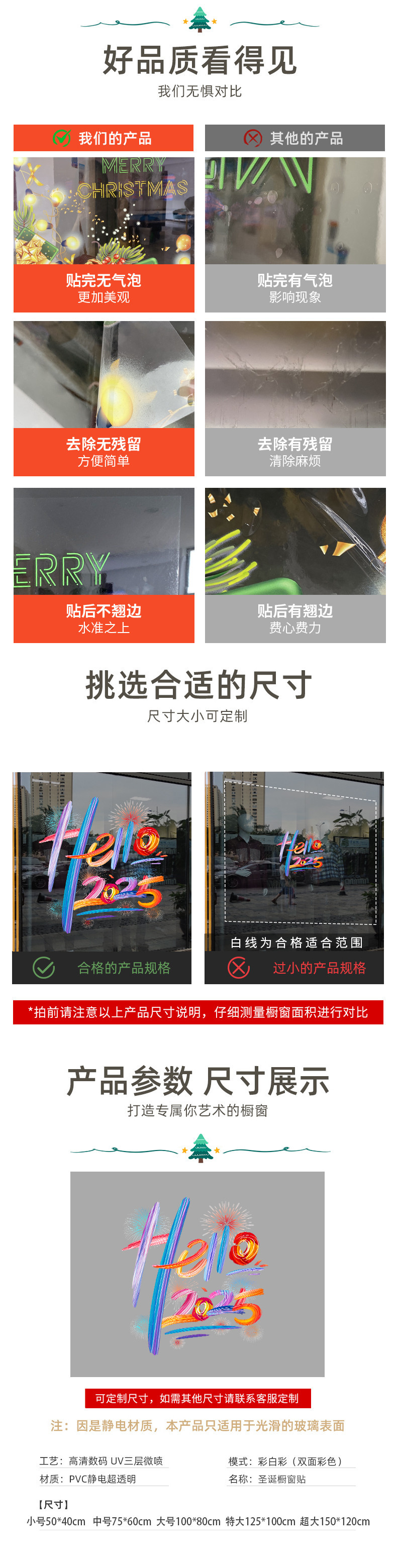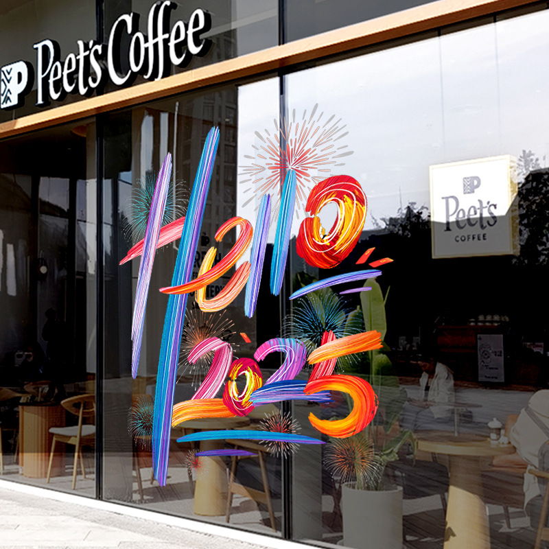 2025新年元旦圣诞节装饰品布置静电贴纸店铺节日玻璃橱窗贴门贴画