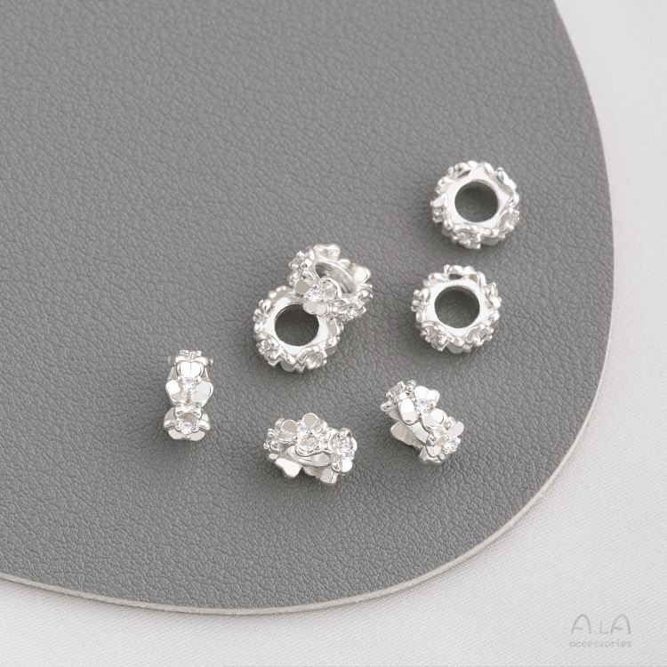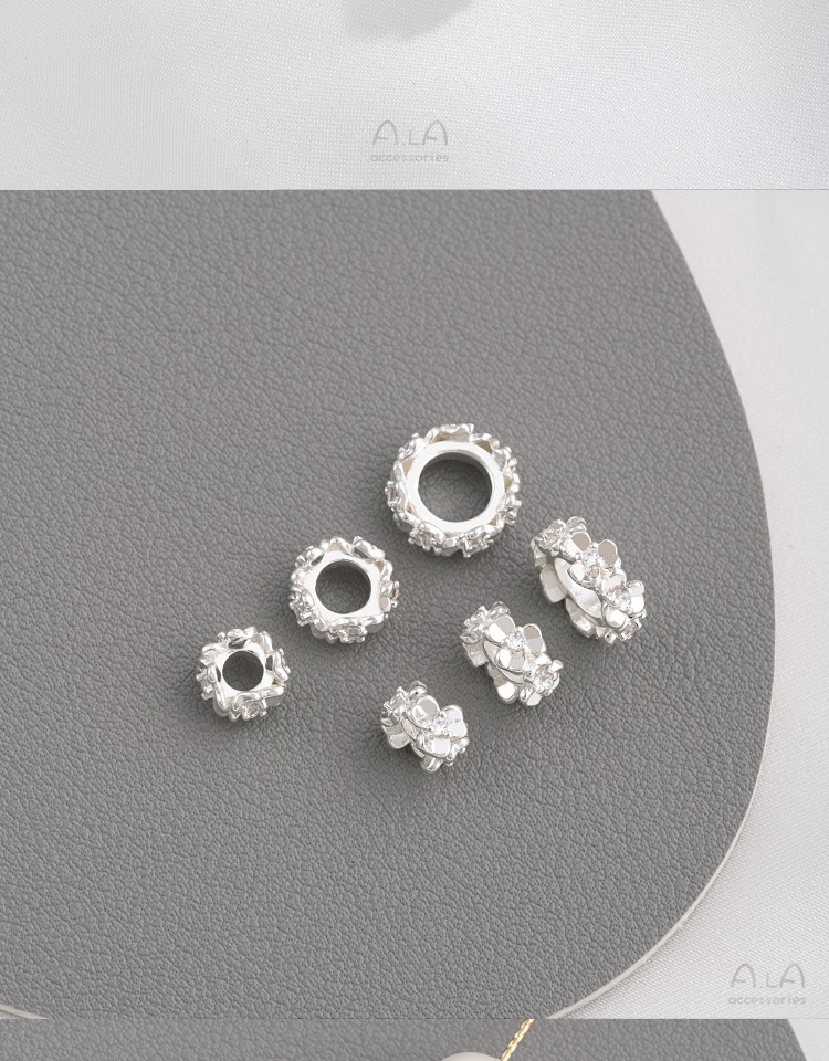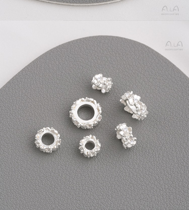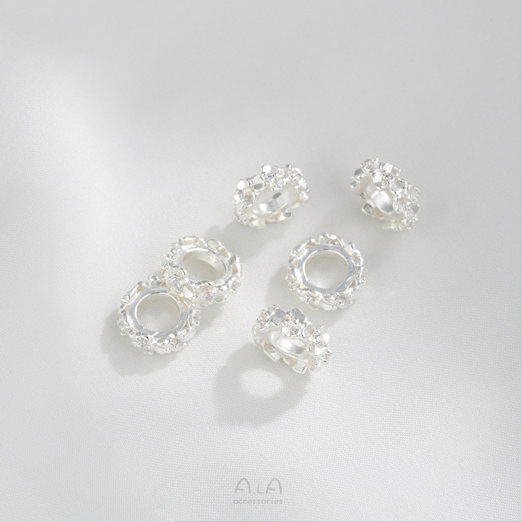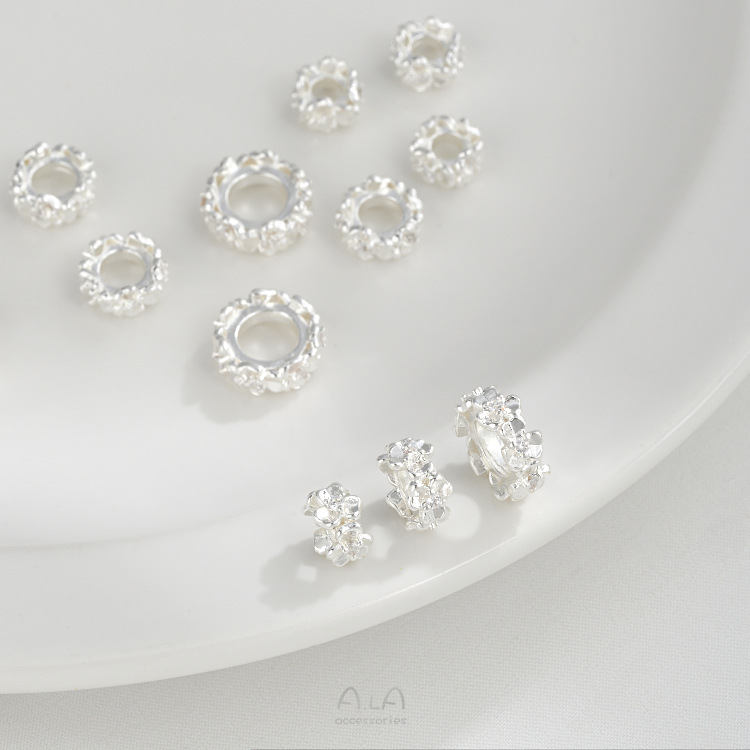 包925厚银保色镶锆石花环隔珠圈手工珠托隔片串珠diy饰品配饰材料