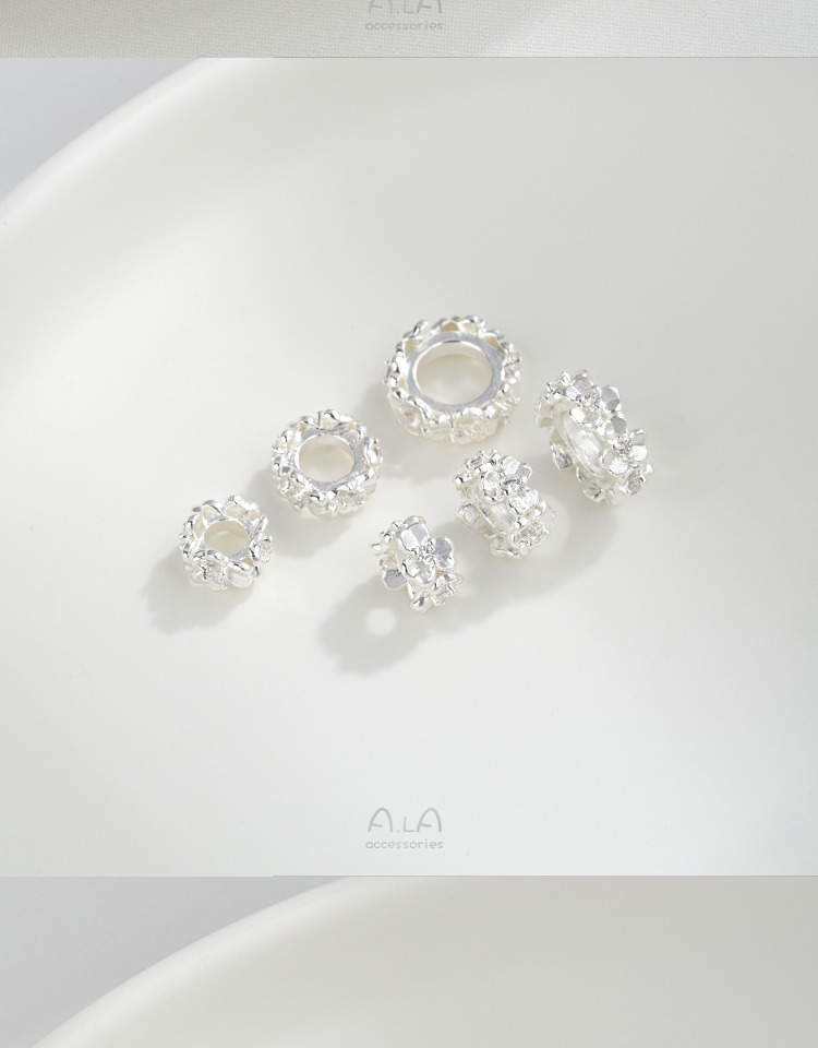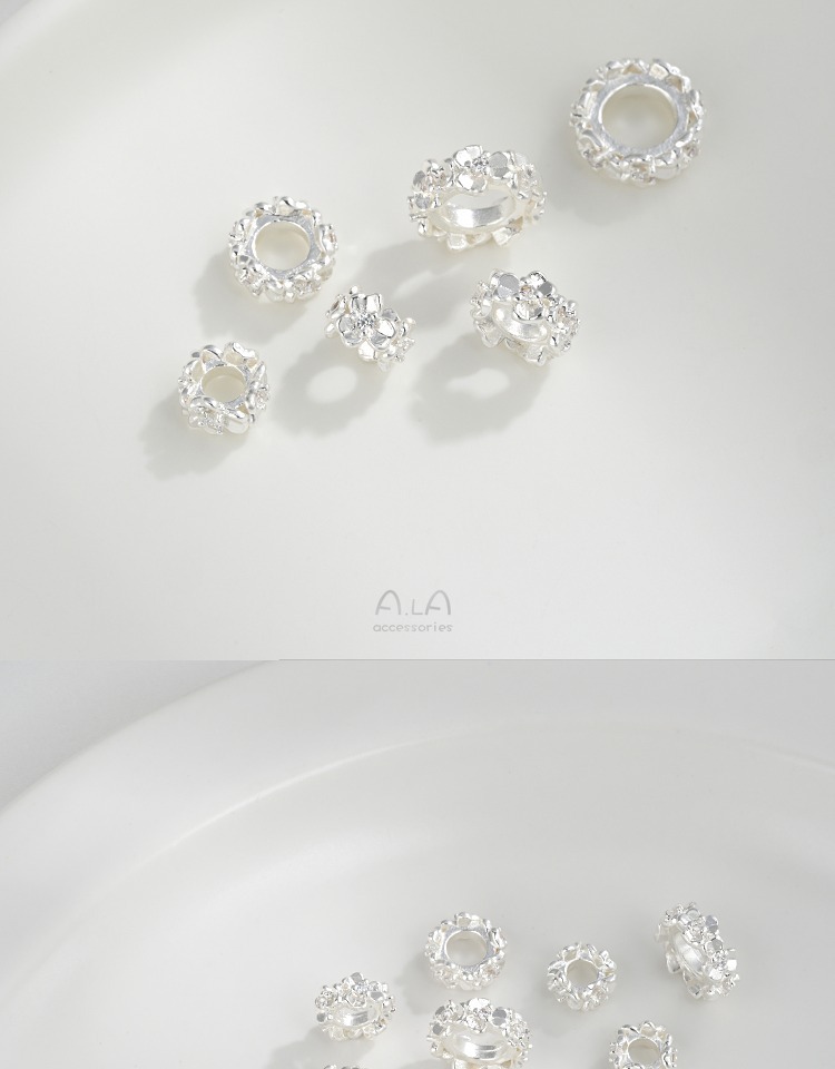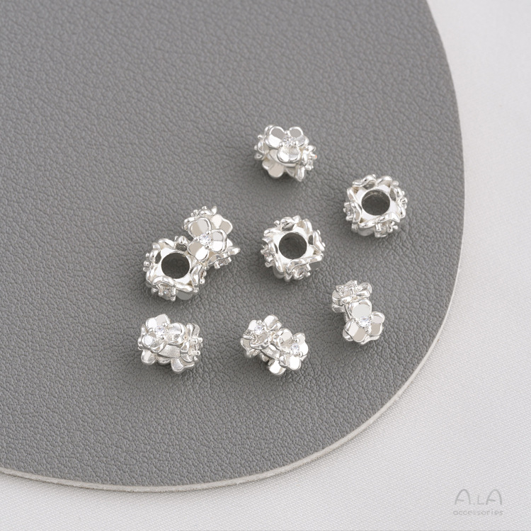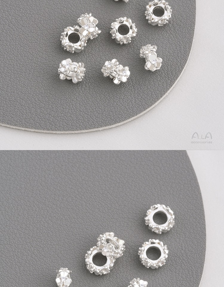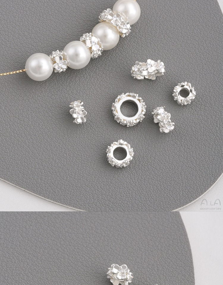 包925厚银保色镶锆石花环隔珠圈手工珠托隔片串珠diy饰品配饰材料