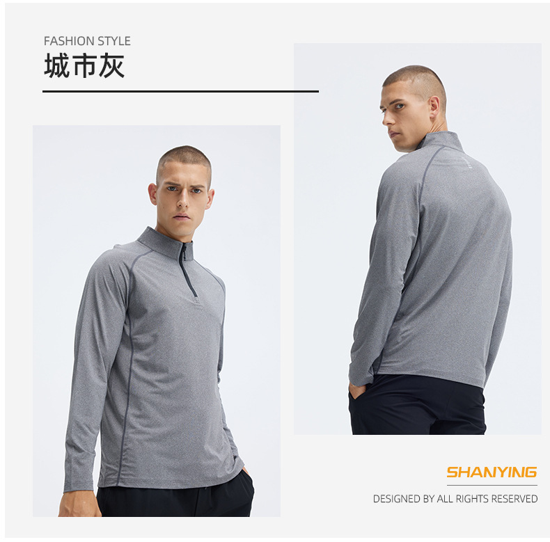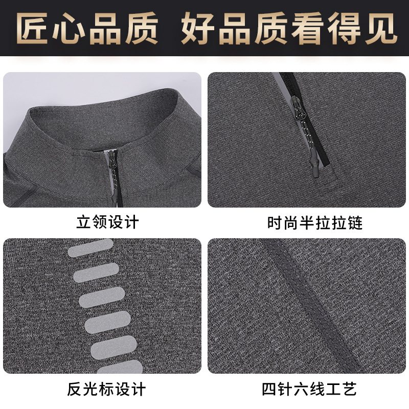 新款速干健身衣服男士半拉链跑步服T恤春秋有氧运动长袖立领上衣