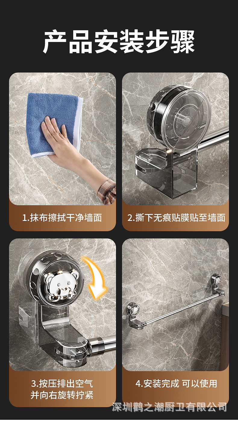新款可伸缩吸盘毛巾杆可旋转转角毛巾架鞋架免打孔浴室收纳架轻奢