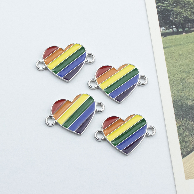 饰品diy配件韩版双吊爱心滴油合金项链手链配饰批发