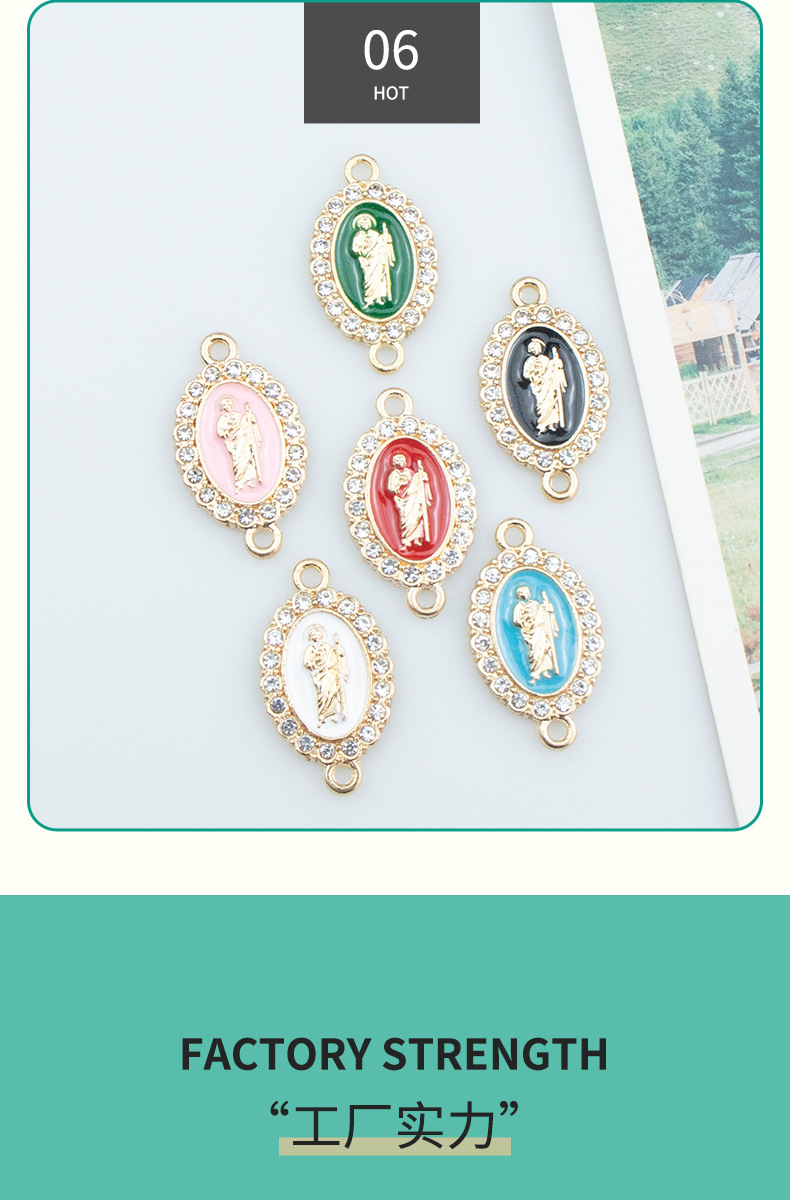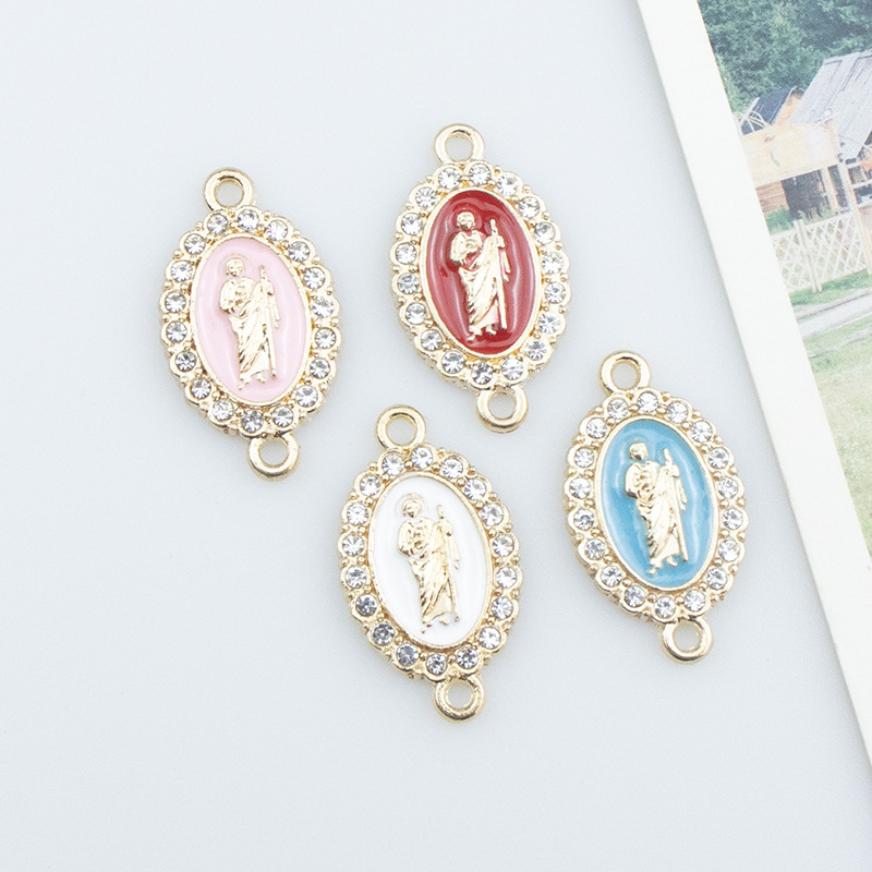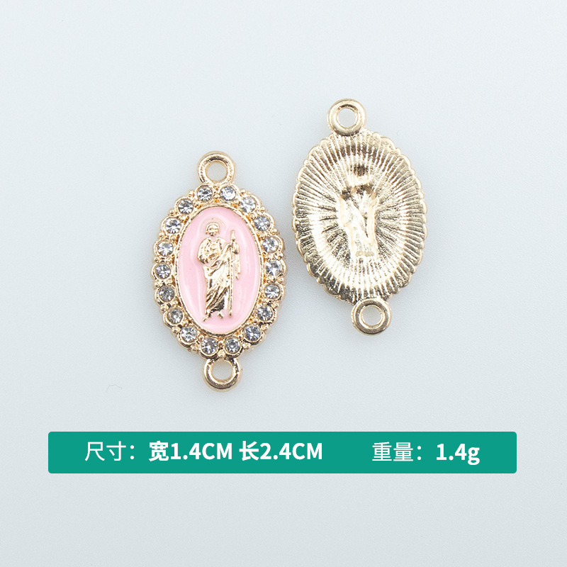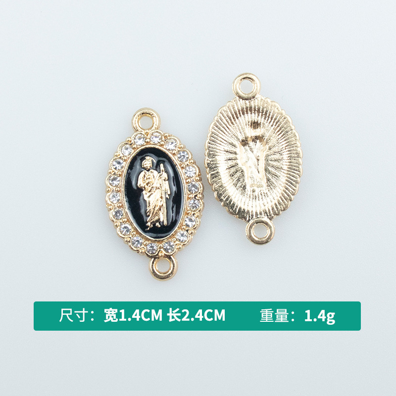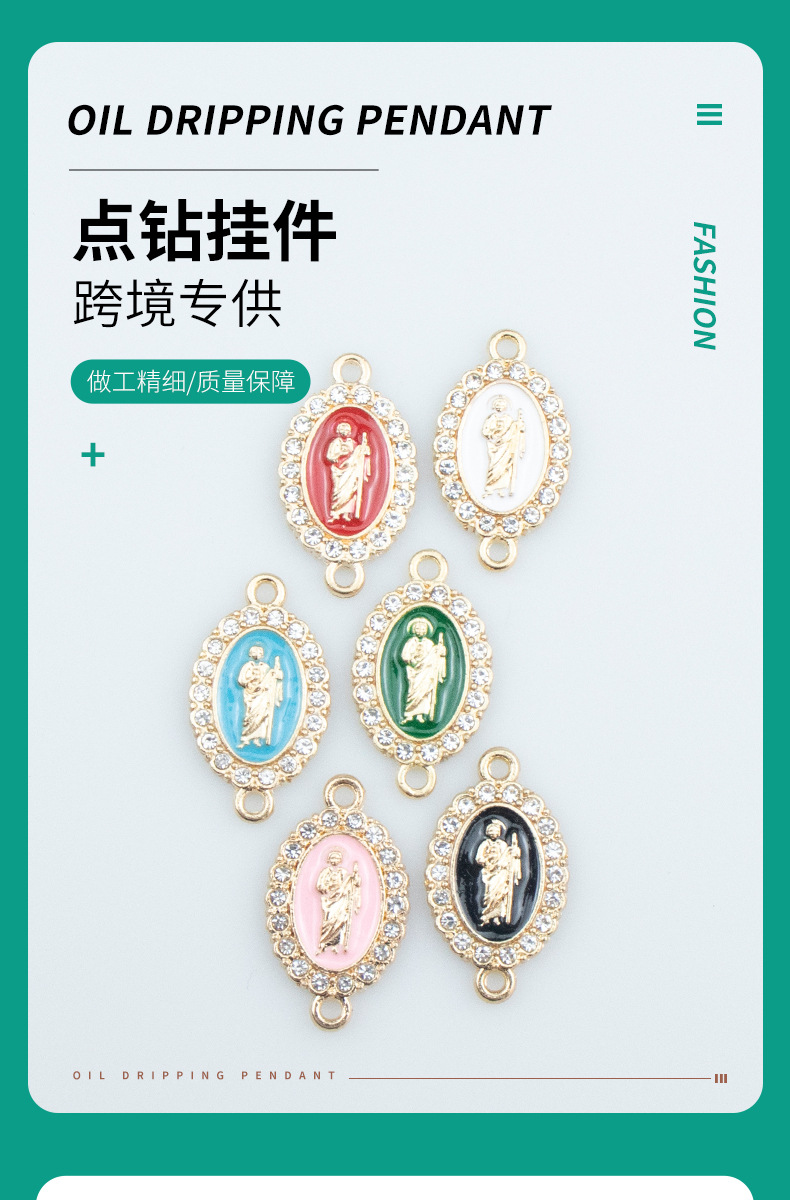 饰品diy配件宗教圣父双吊坠滴油点钻合金手链配饰批发