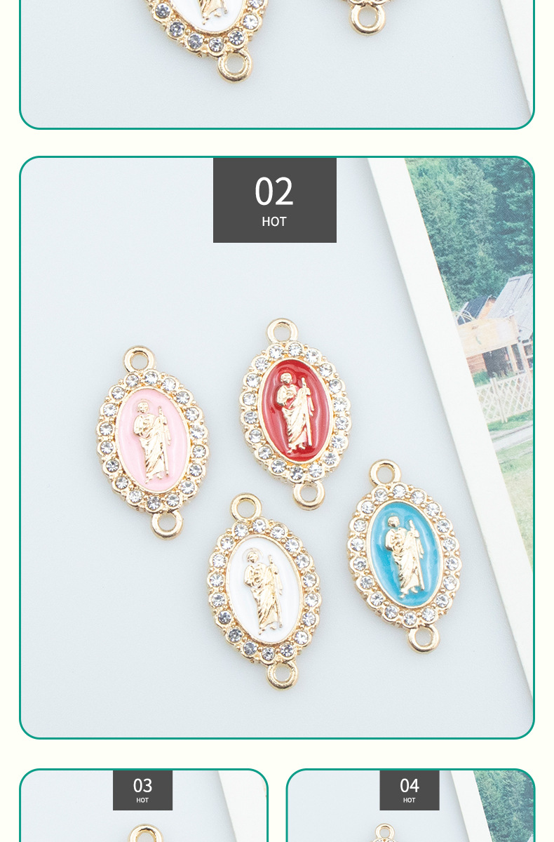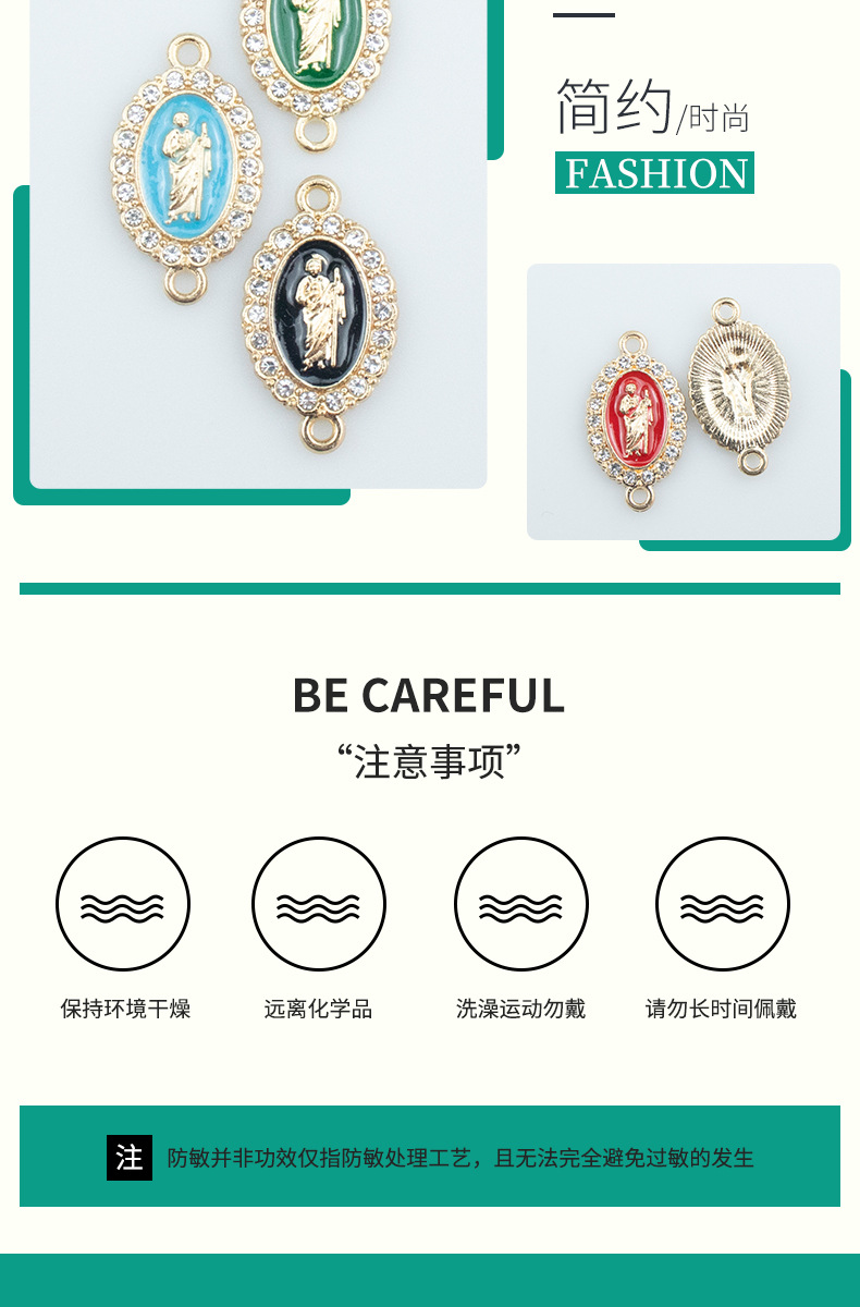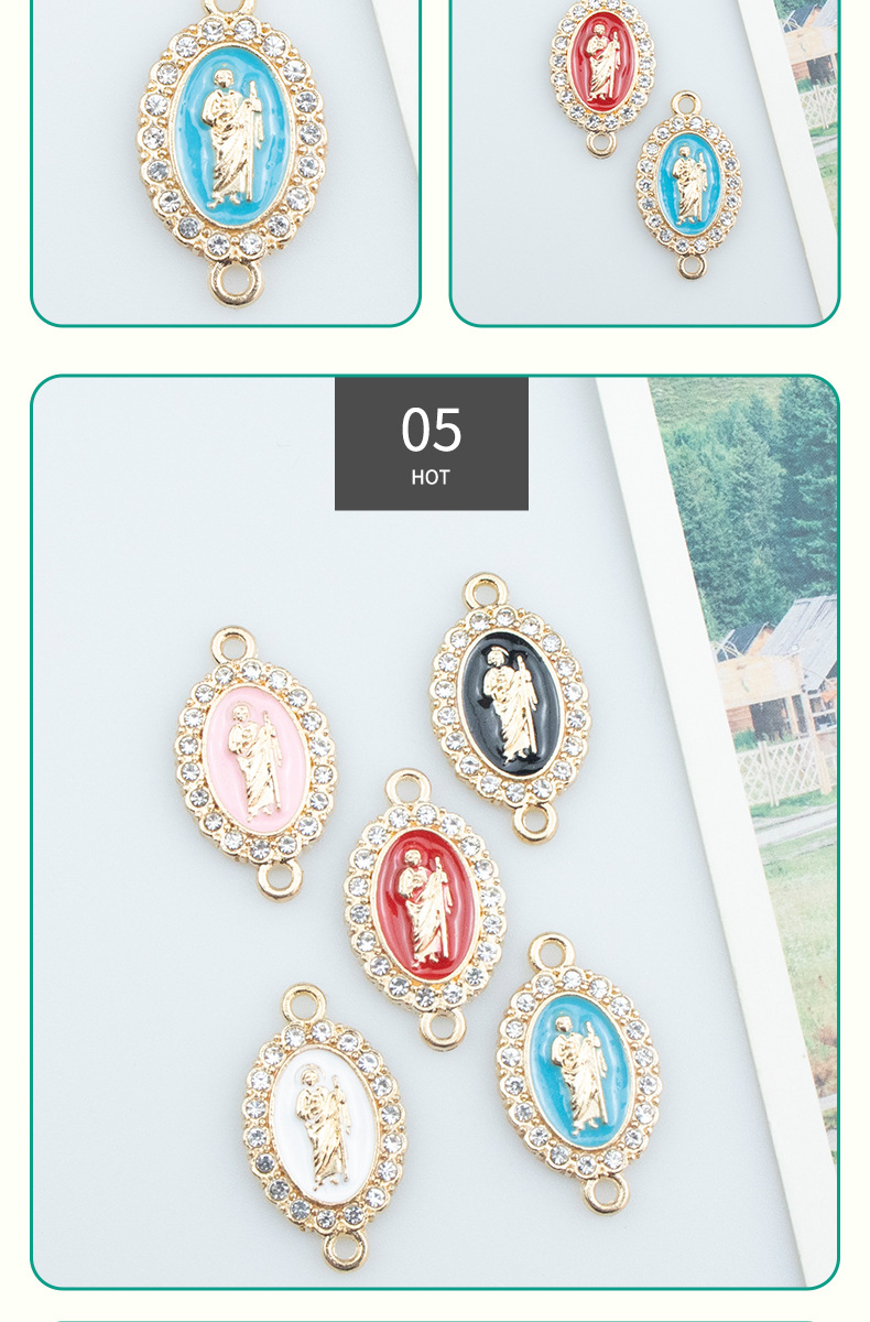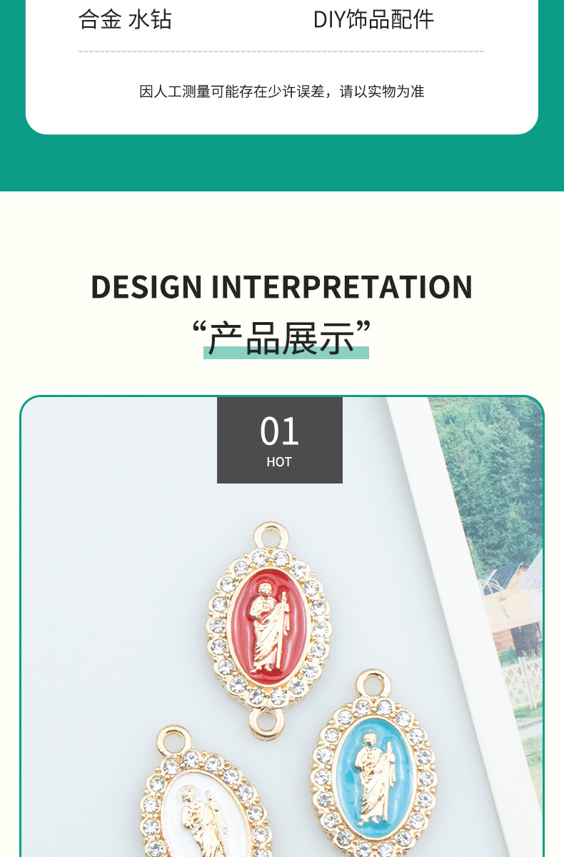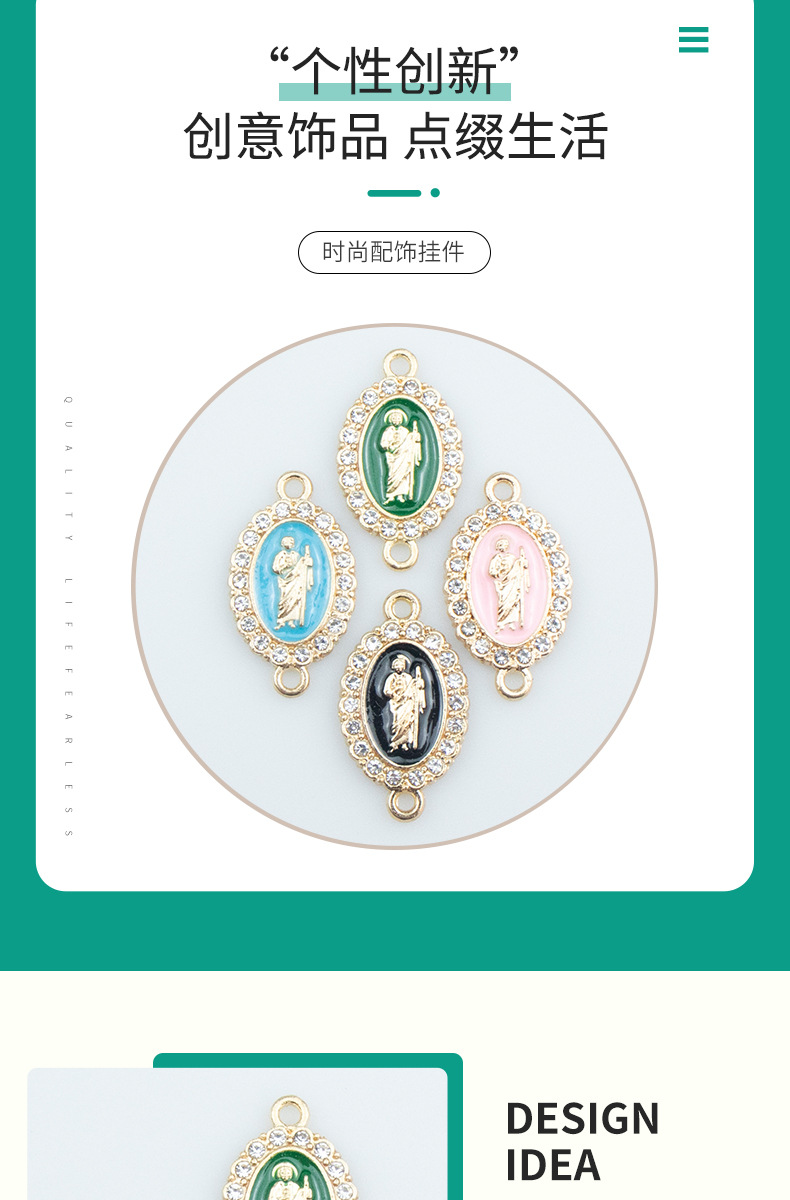 饰品diy配件宗教圣父双吊坠滴油点钻合金手链配饰批发