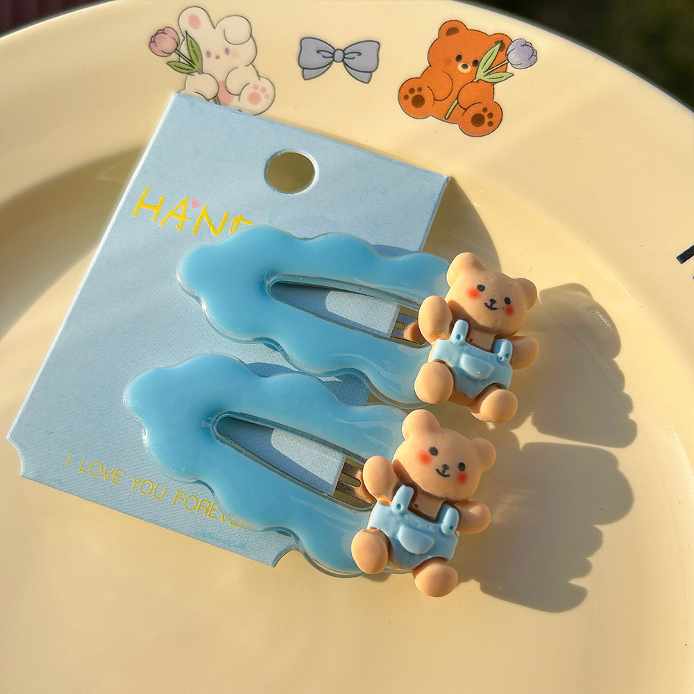 2只装!蓝色小熊爱心发夹~甜美少女云朵蝴蝶结BB夹侧边夹发饰头饰