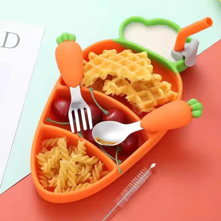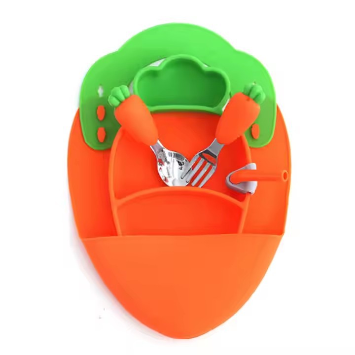 胡萝卜盘婴儿宝宝辅食分格儿童硅胶盘具胡萝卜硅胶盘具套装