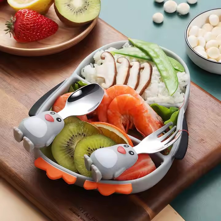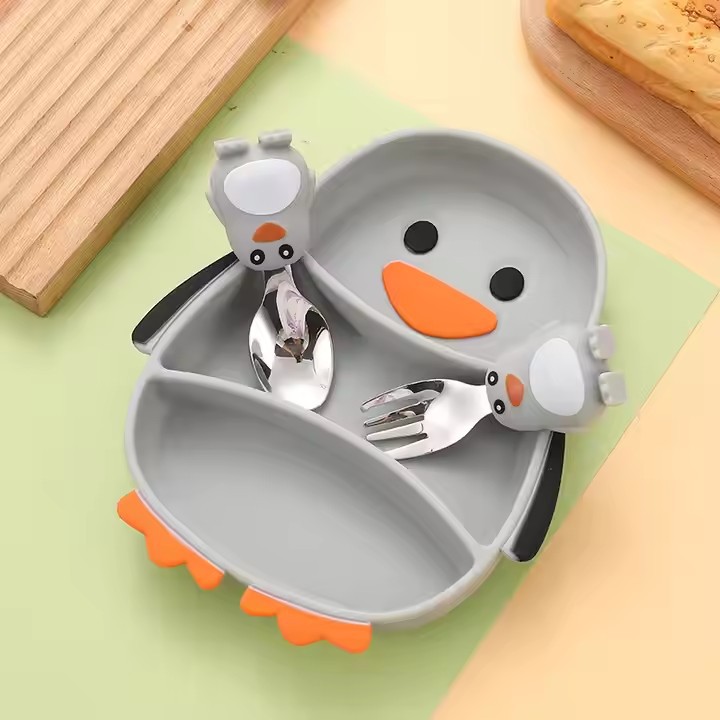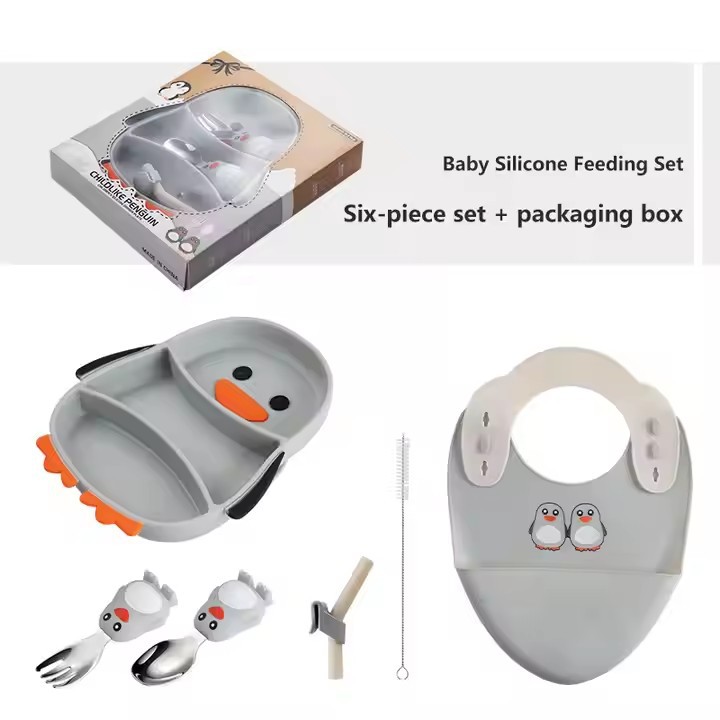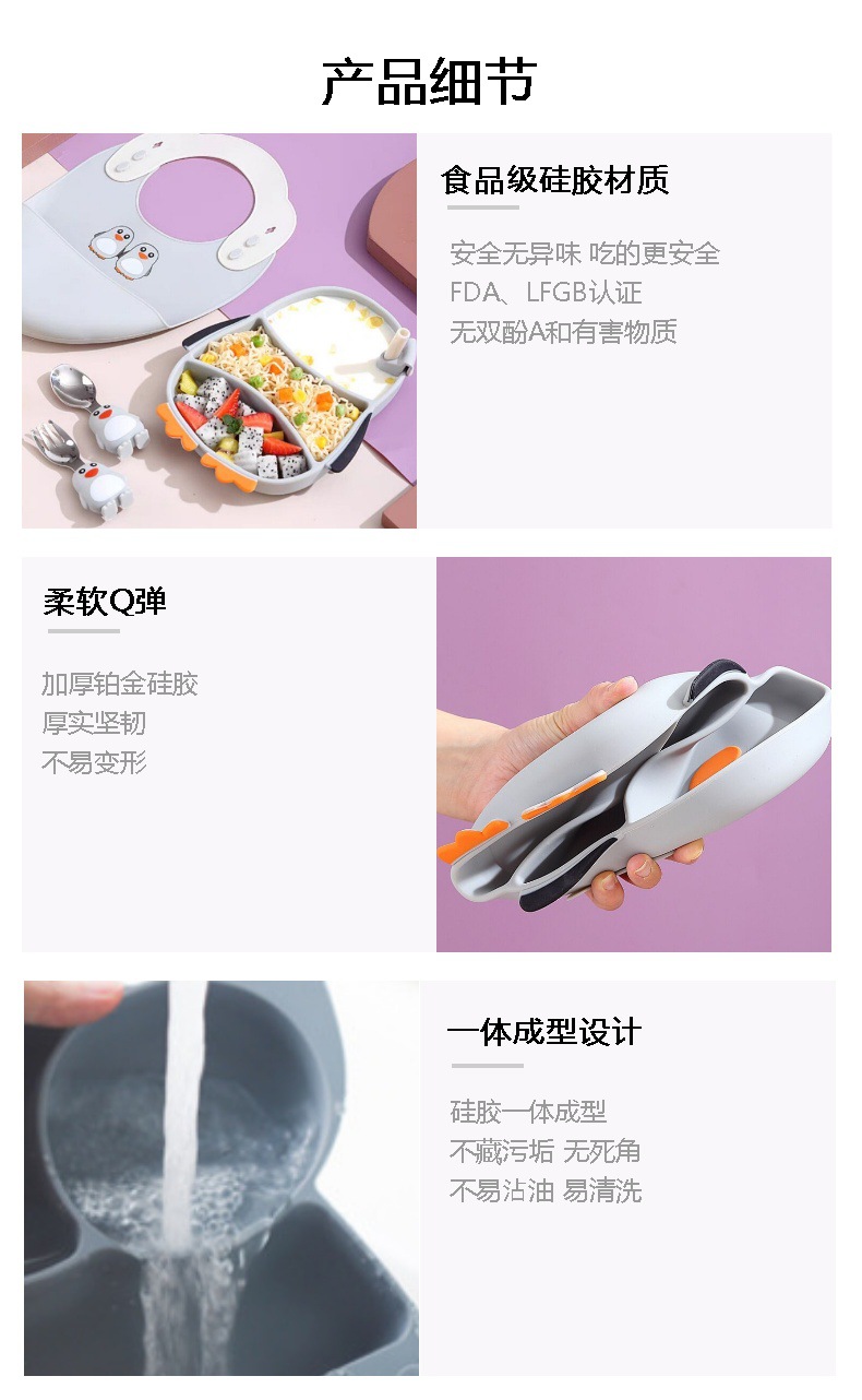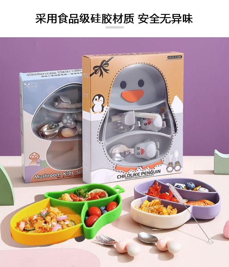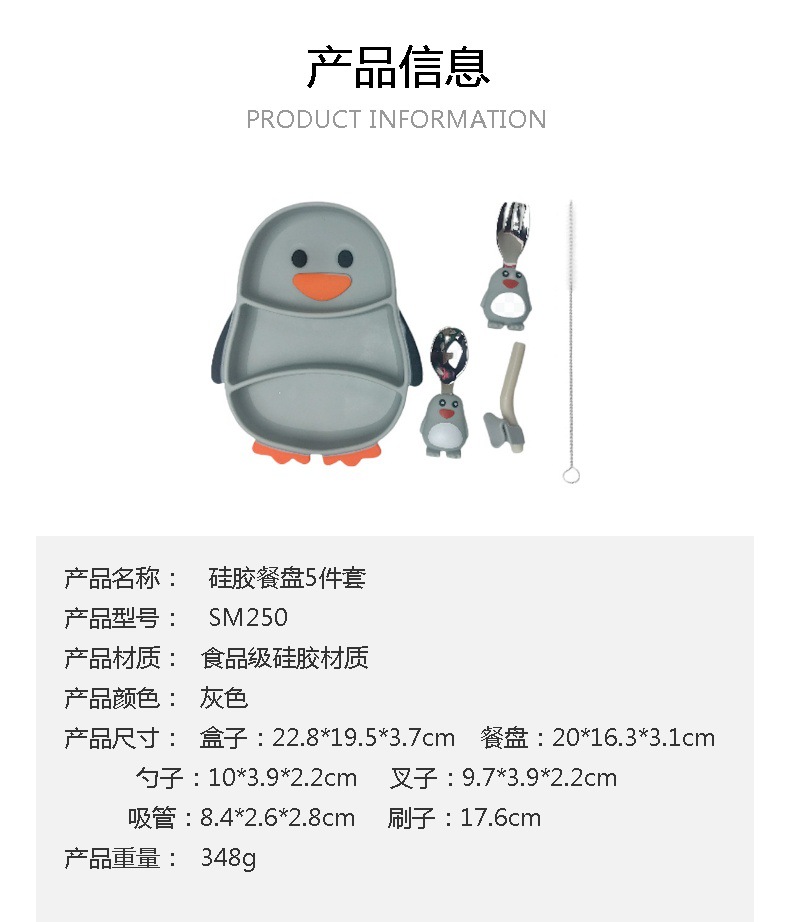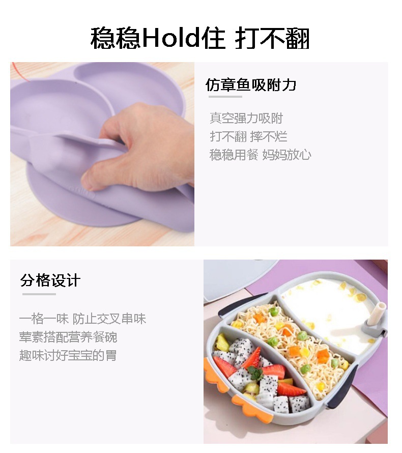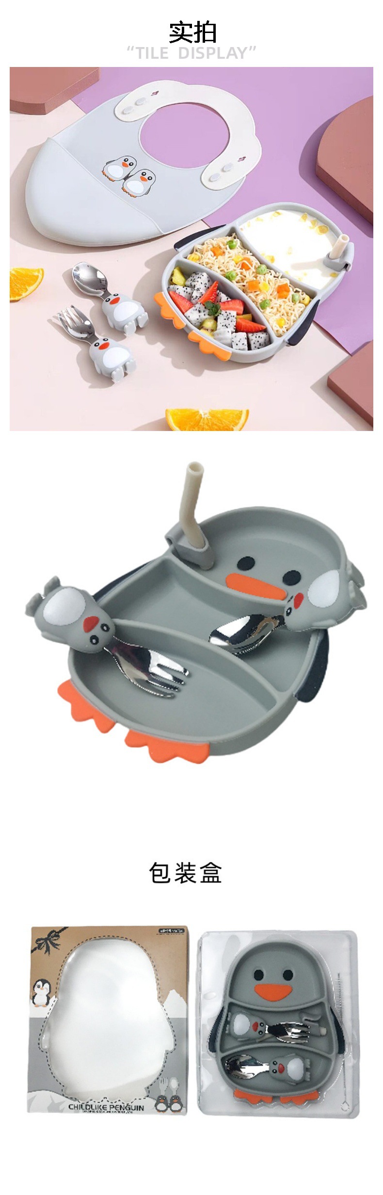 硅胶餐盘硅胶叉勺吸管5件套 儿童餐具宝宝辅食碗吸盘碗婴幼儿餐盘