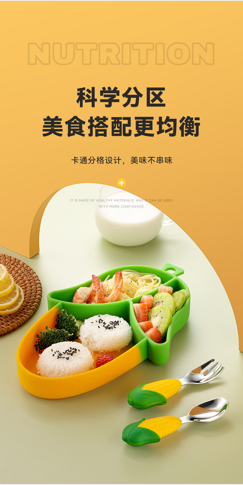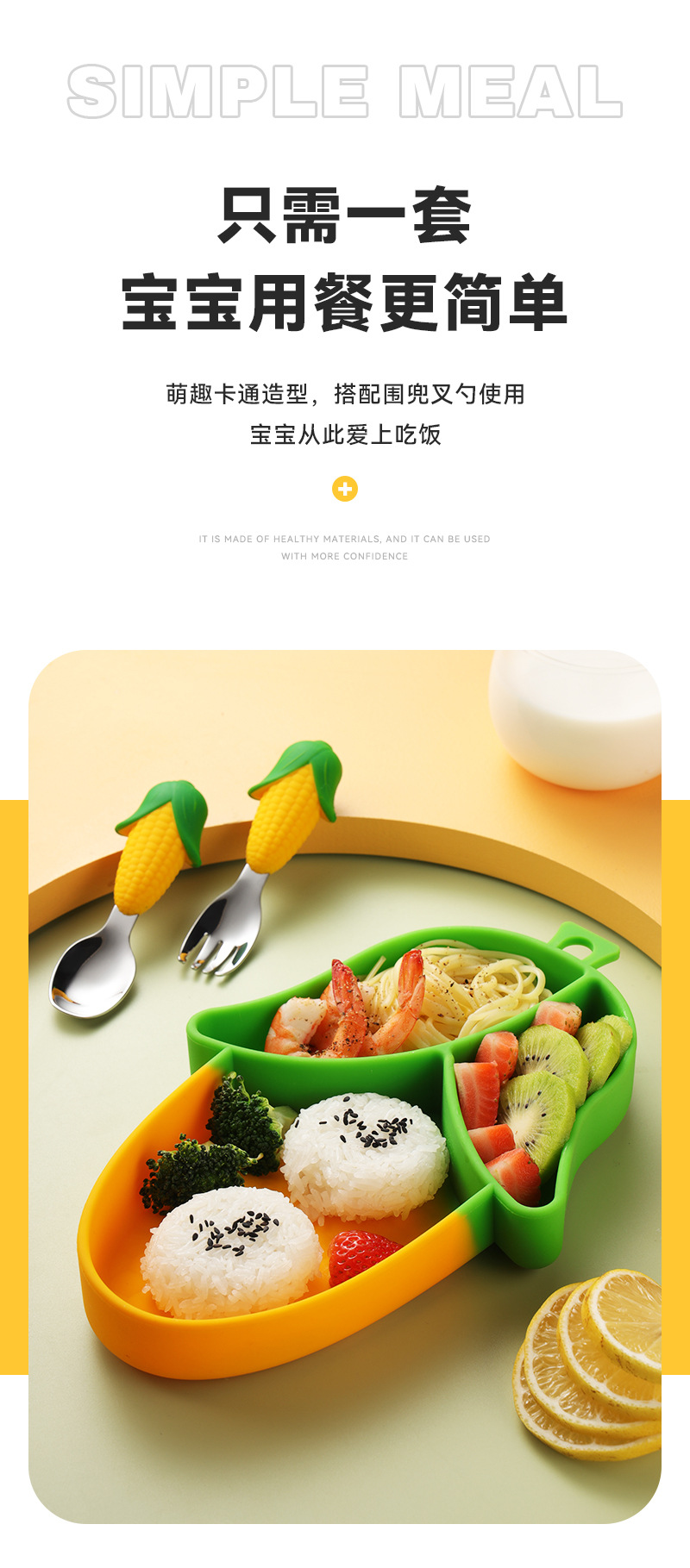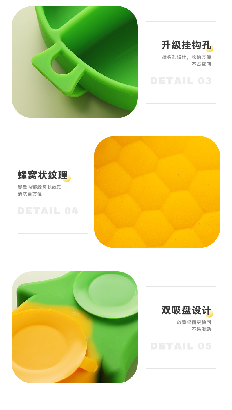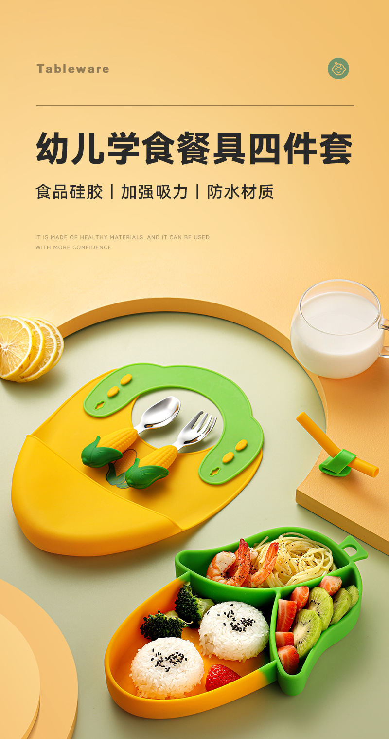 食品级宝宝一体式餐盘儿童硅胶吸盘碗幼儿简约训练分格盘餐具套装