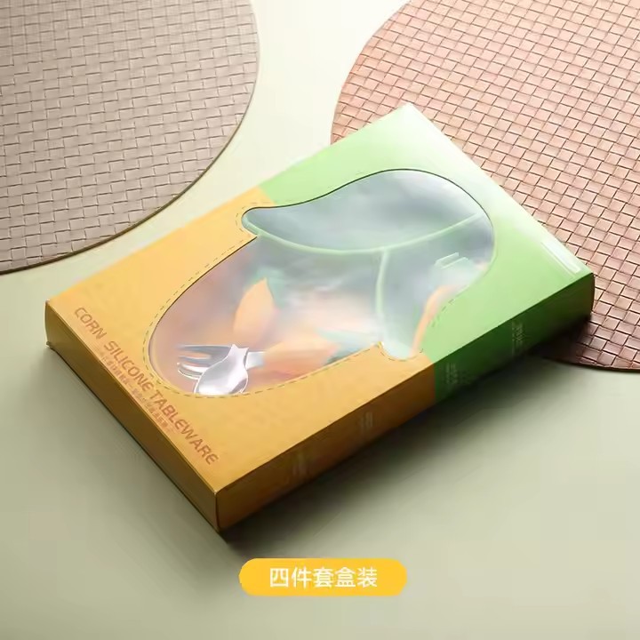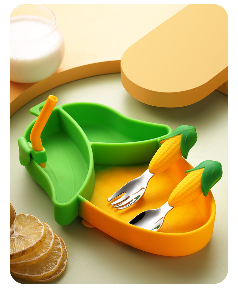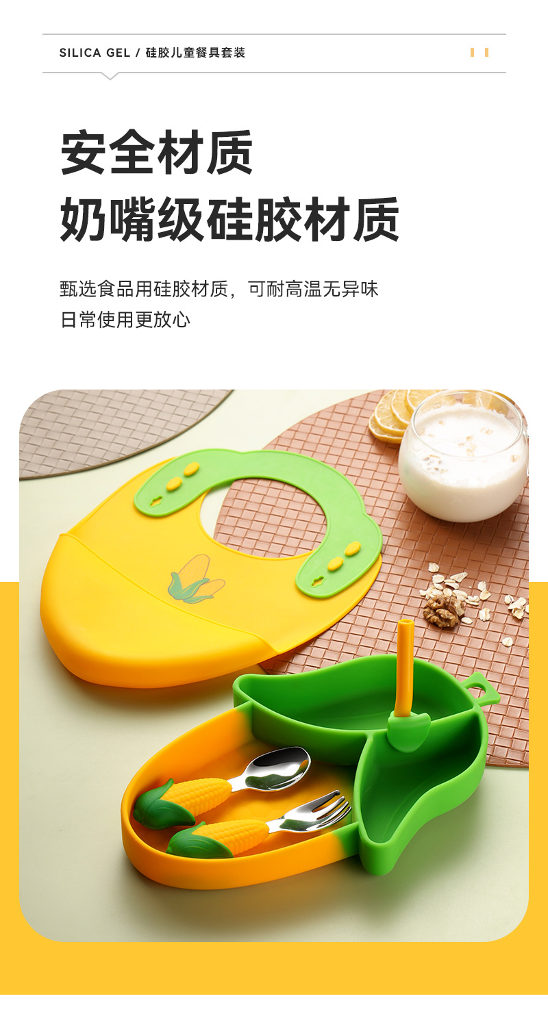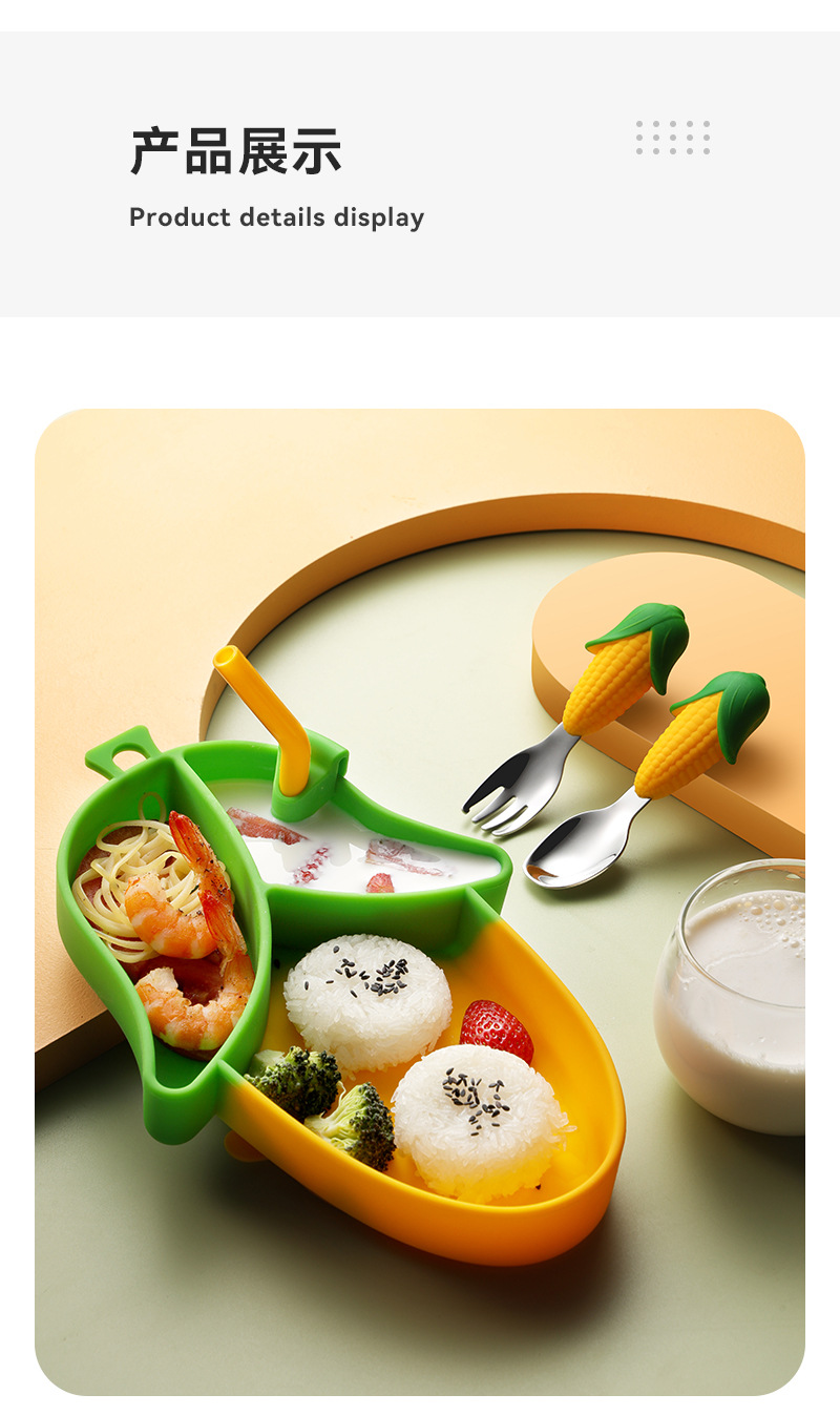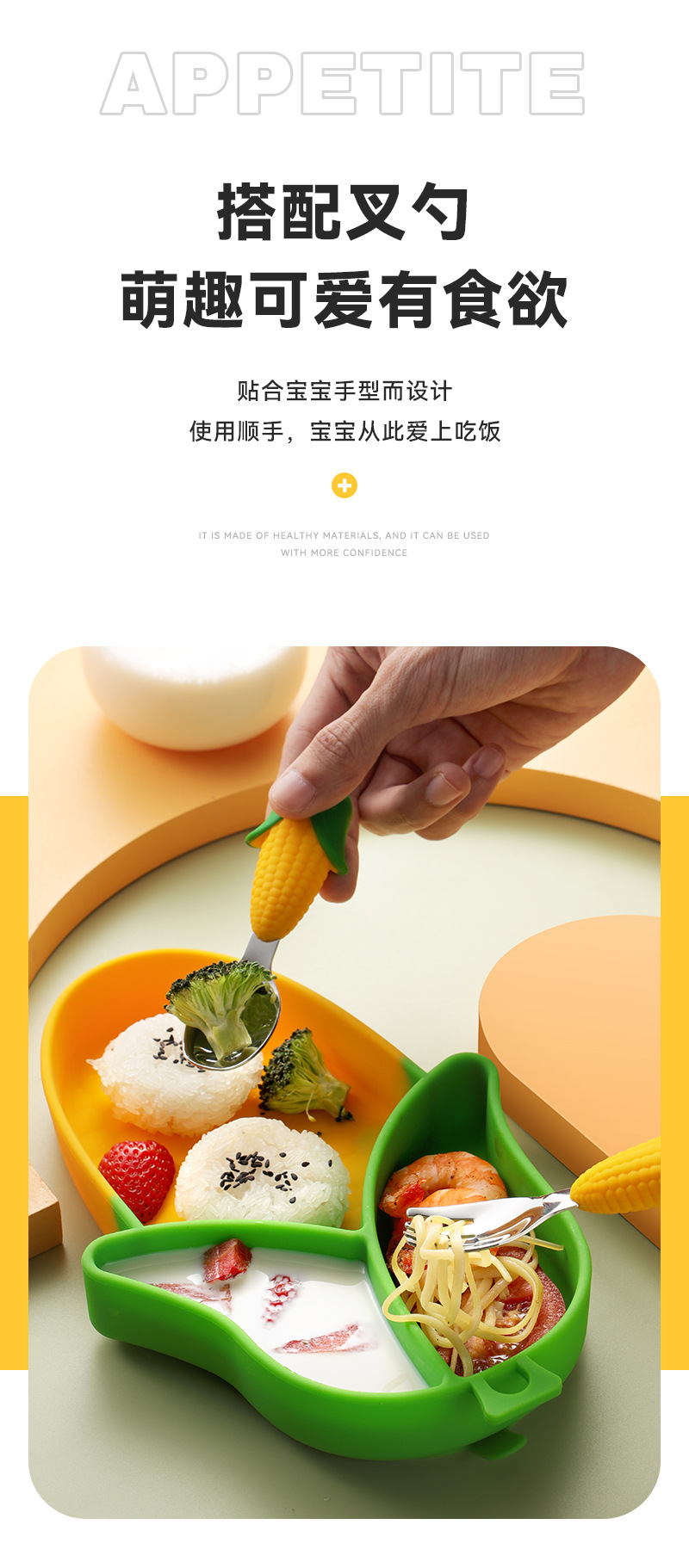 食品级宝宝一体式餐盘儿童硅胶吸盘碗幼儿简约训练分格盘餐具套装
