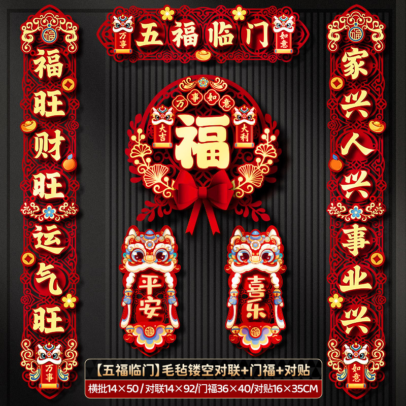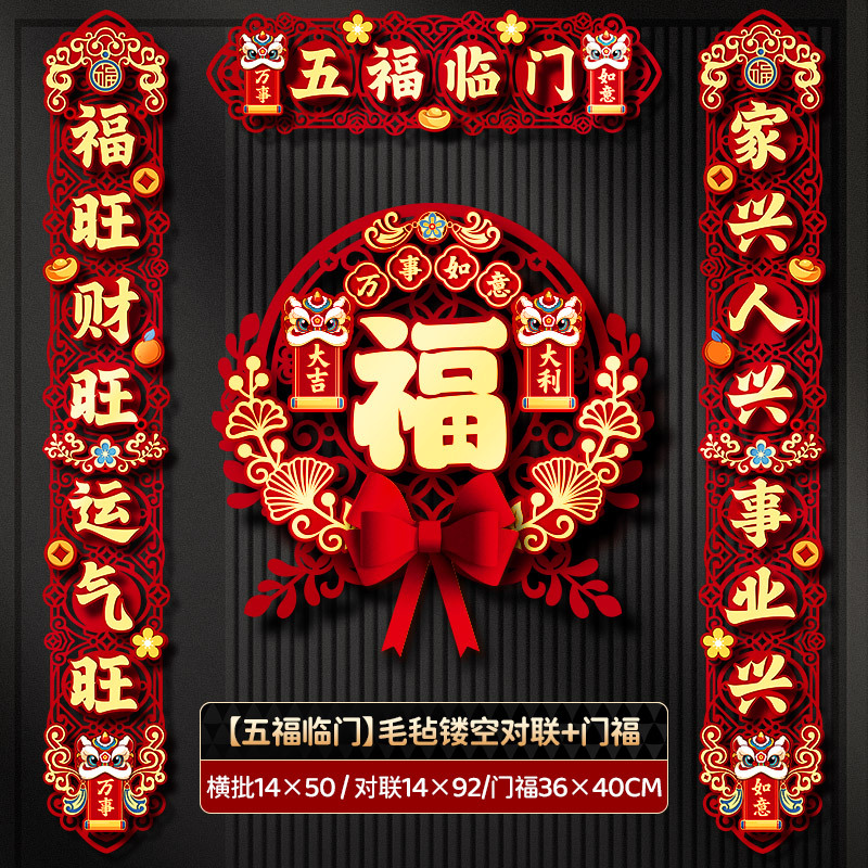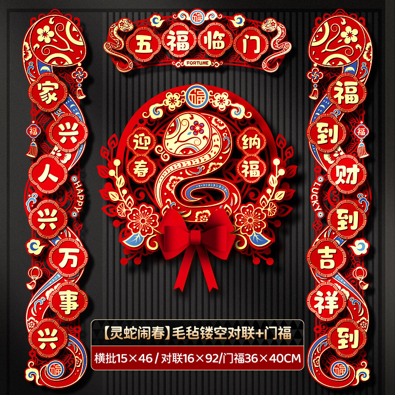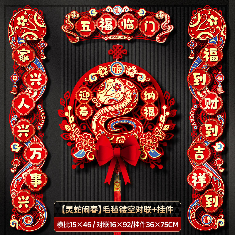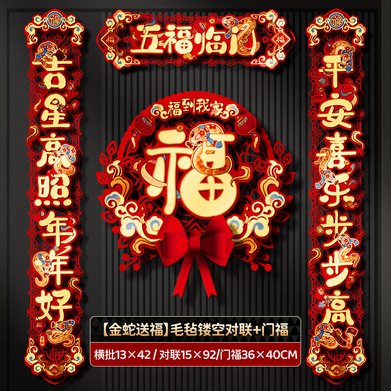 植绒对联春联批发蛇年福字门贴新年装饰过年春节年货布置用品