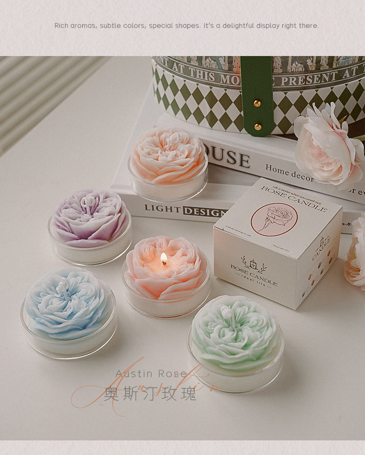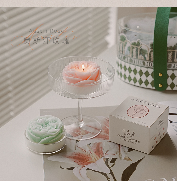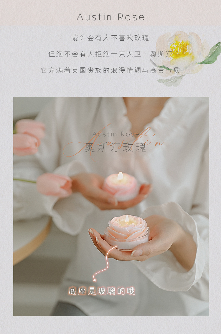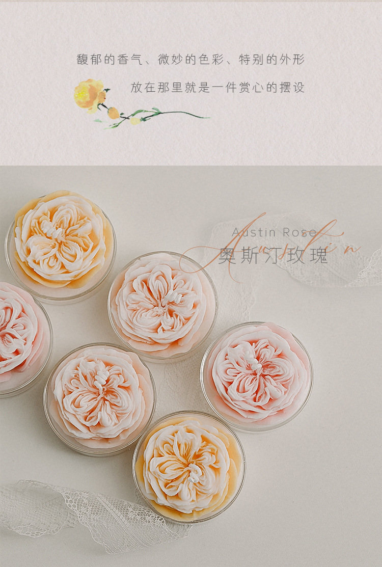 奥斯汀玫瑰香薰蜡烛批发七夕礼物情人节生日香氛花朵伴手礼香熏厂