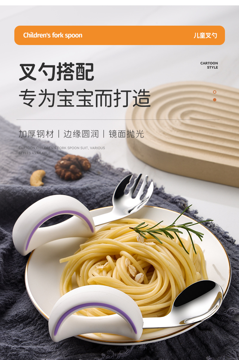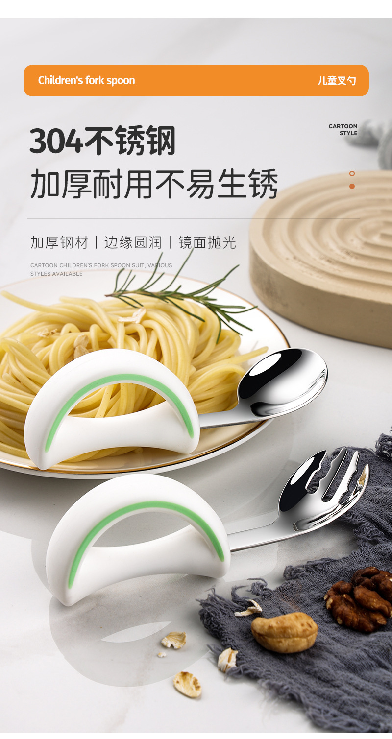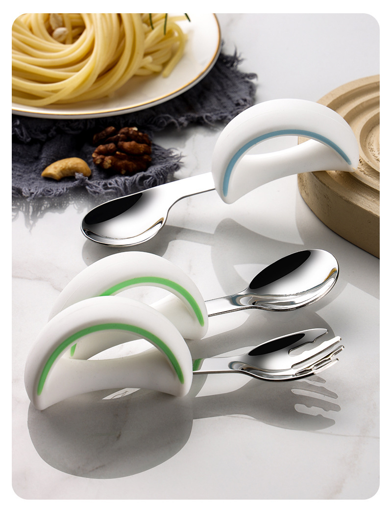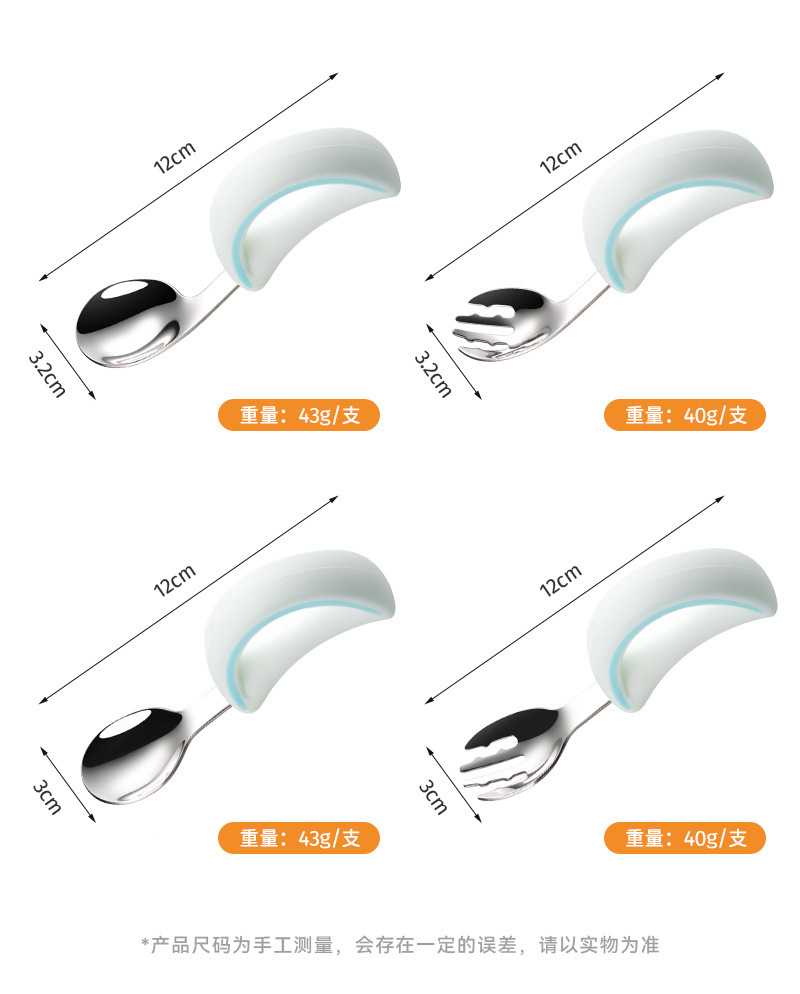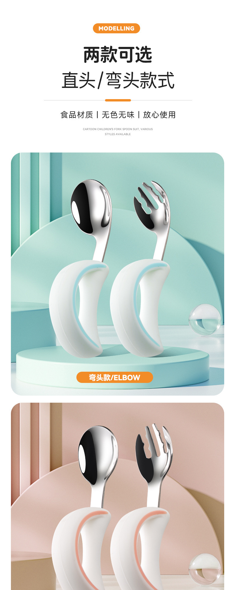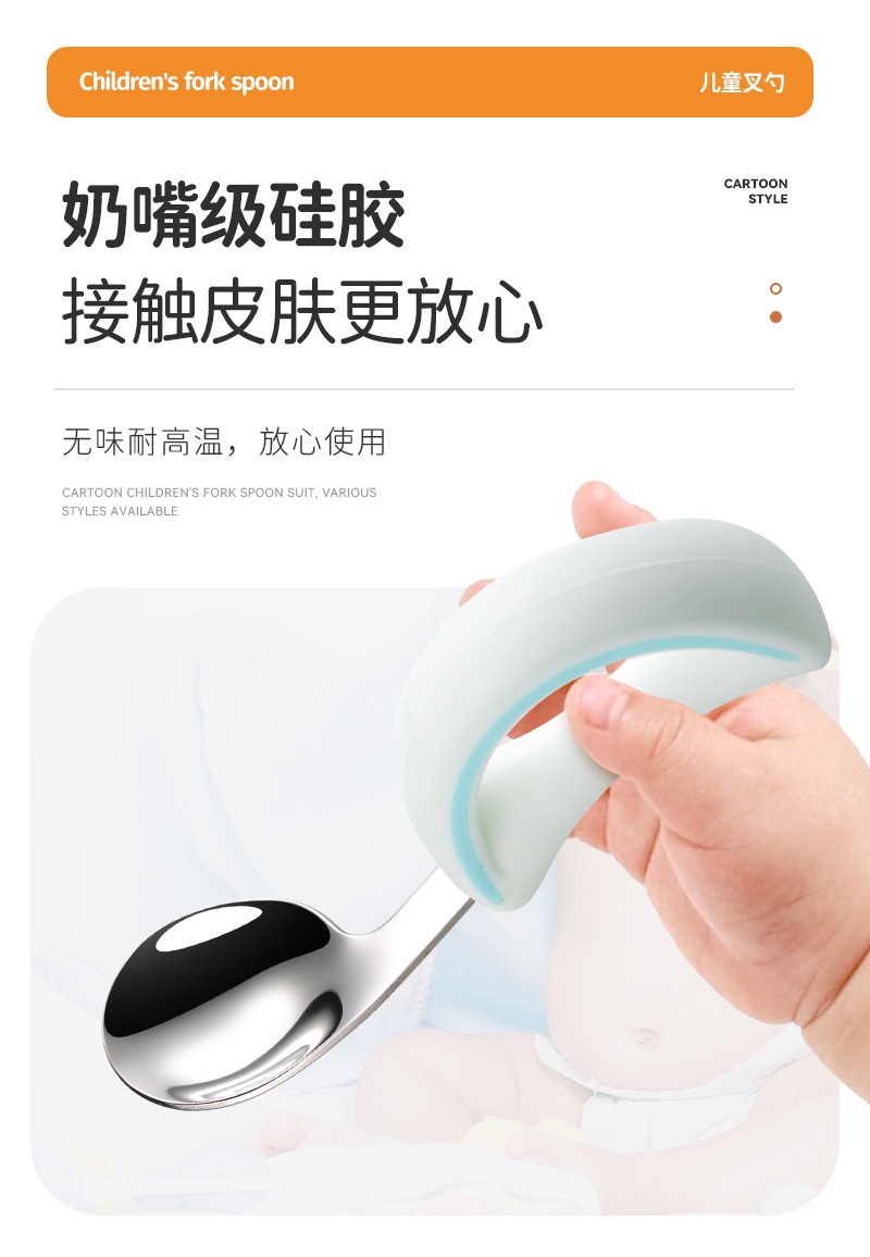 宝宝自主进食辅食勺子婴儿学吃饭训练儿童不锈钢餐具元宝叉勺弯勺