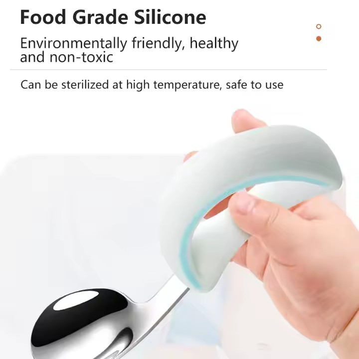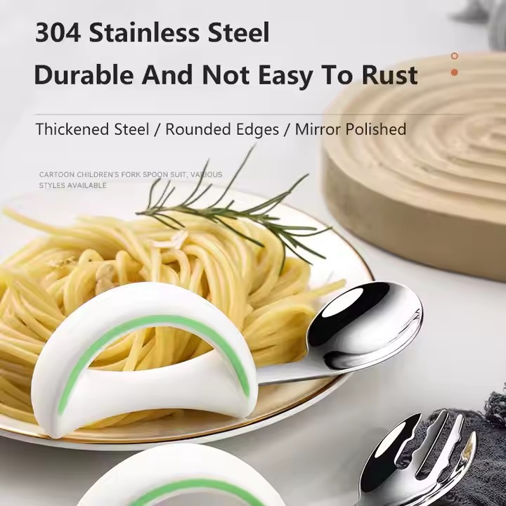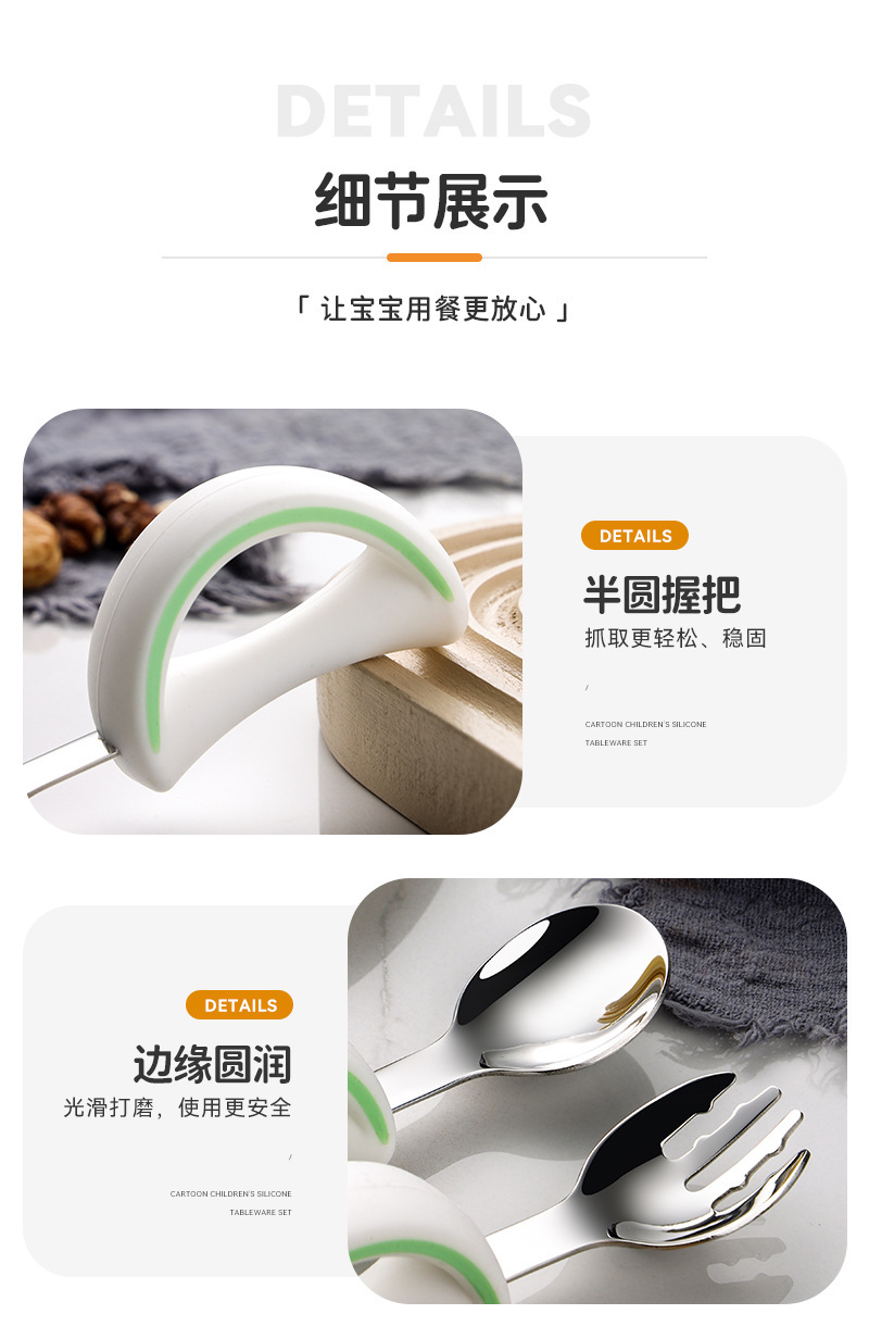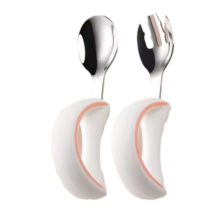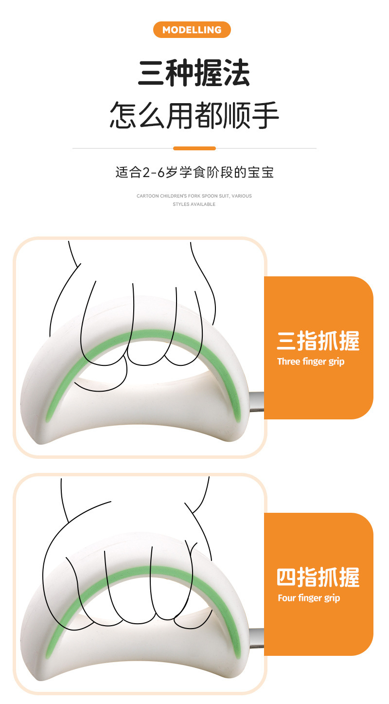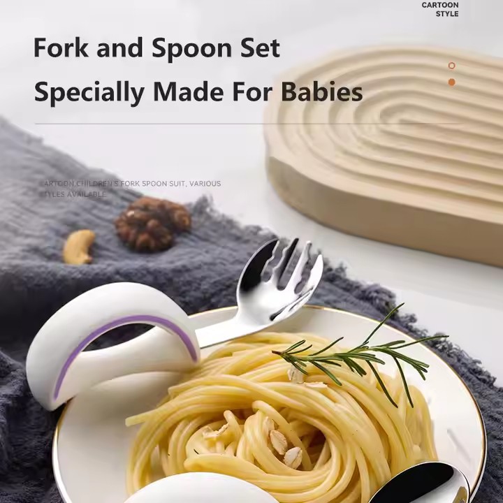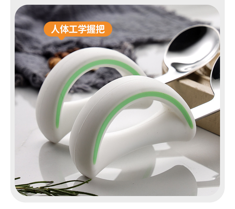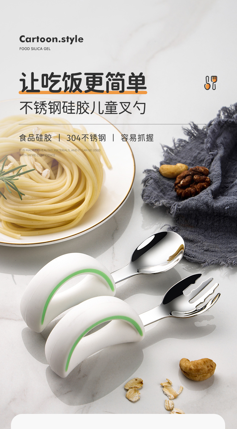 宝宝自主进食辅食勺子婴儿学吃饭训练儿童不锈钢餐具元宝叉勺弯勺