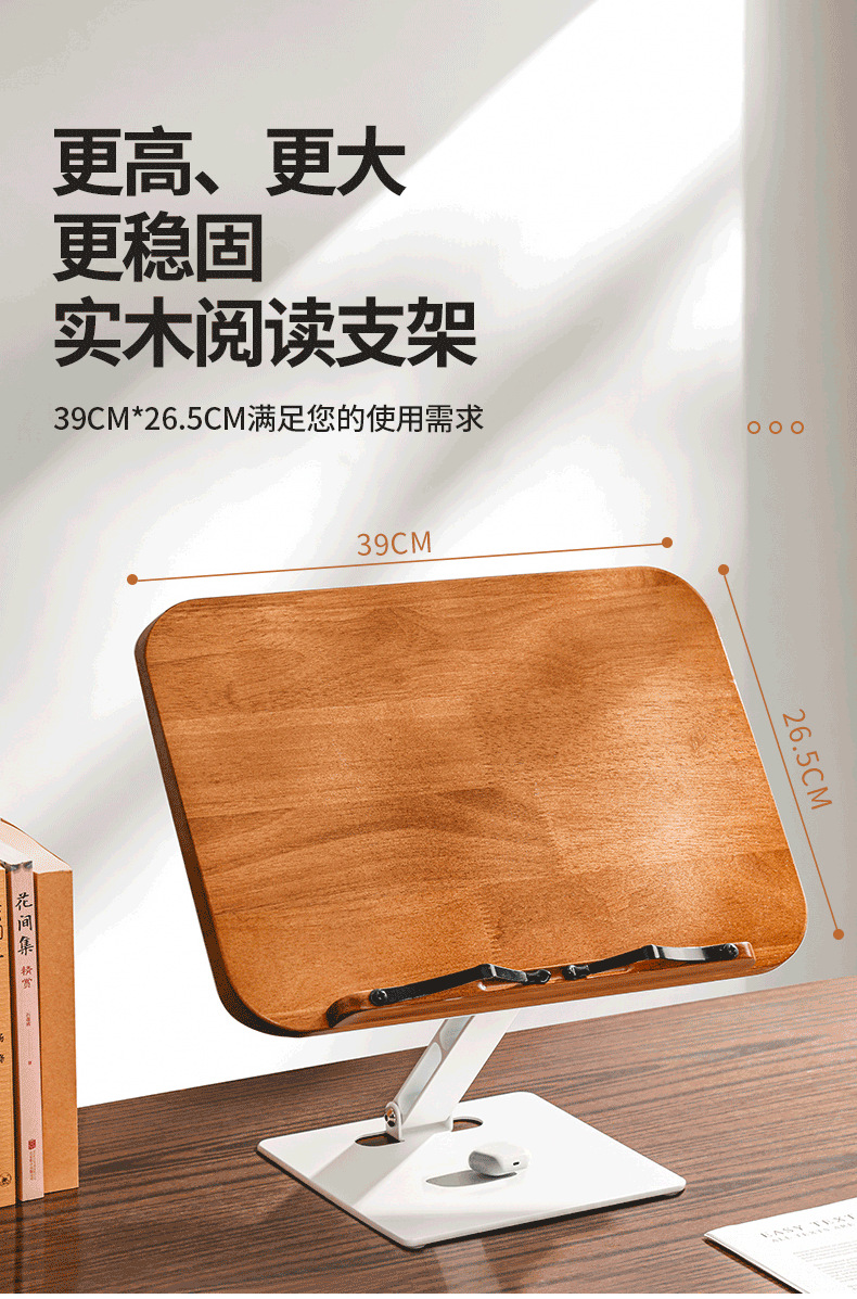 阅读书架木质看书架桌面支架实木橡木学生儿童读书架可调节升降