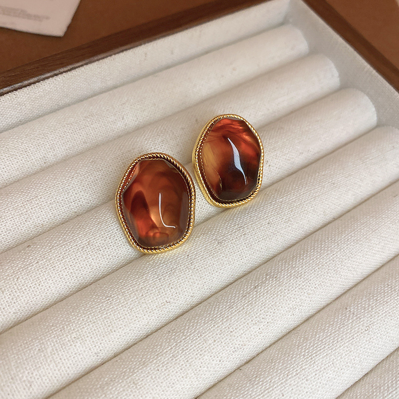 美拉德咖色复古爱心耳环港风高级感百搭耳钉小众ins时尚耳饰批发