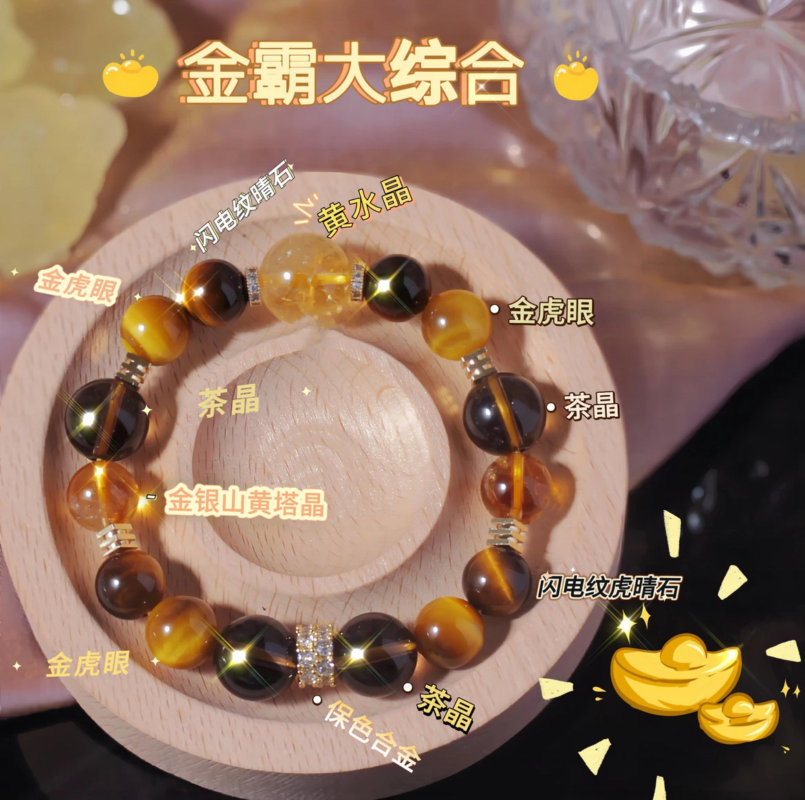 【金霸大综合】天然黄塔晶金虎眼石黄水晶设计手链女款手串首饰