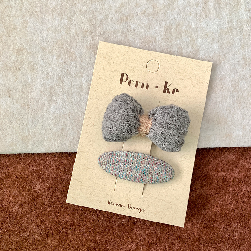 新款韩版布艺蝴蝶结发夹蓝色奶咖系格纹笑脸头饰边夹前额刘海夹