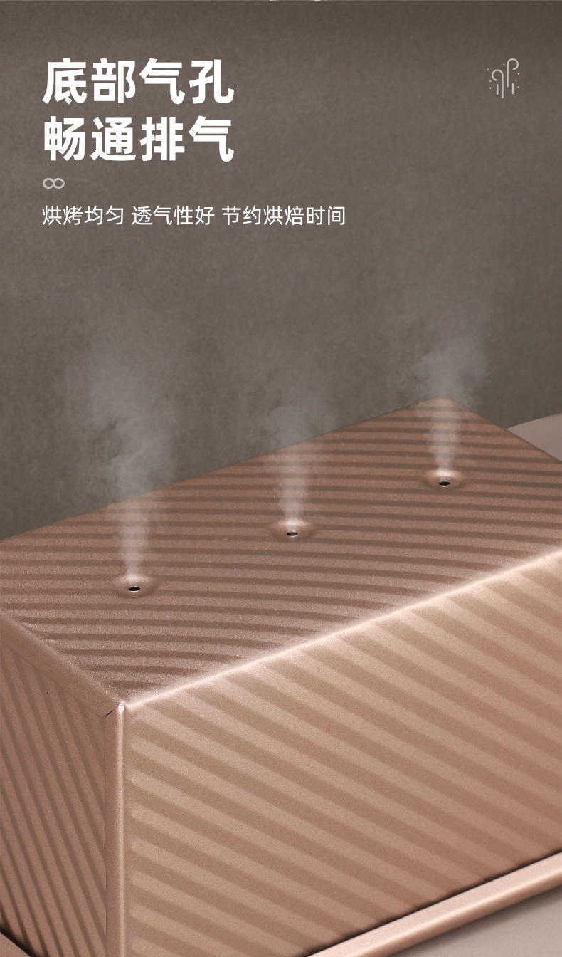 金色碳钢波纹带盖吐司盒烘焙工具面包模具吐司盒土司烘焙蛋糕模具