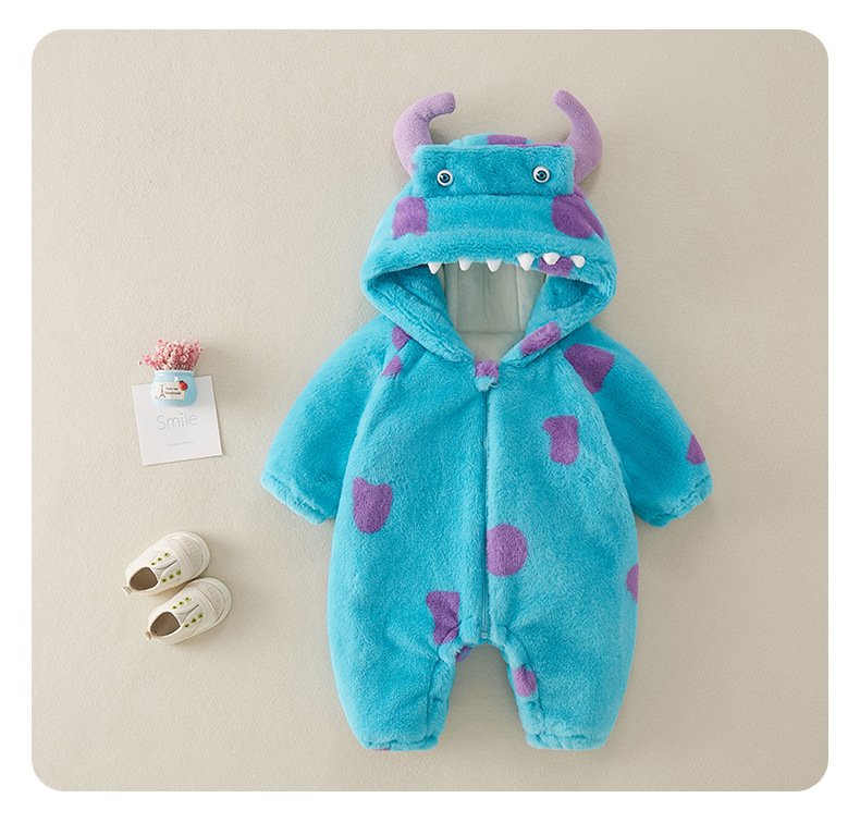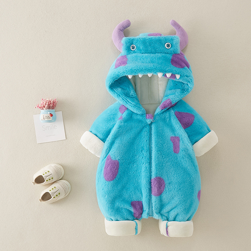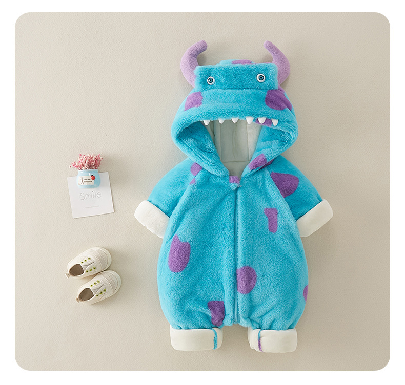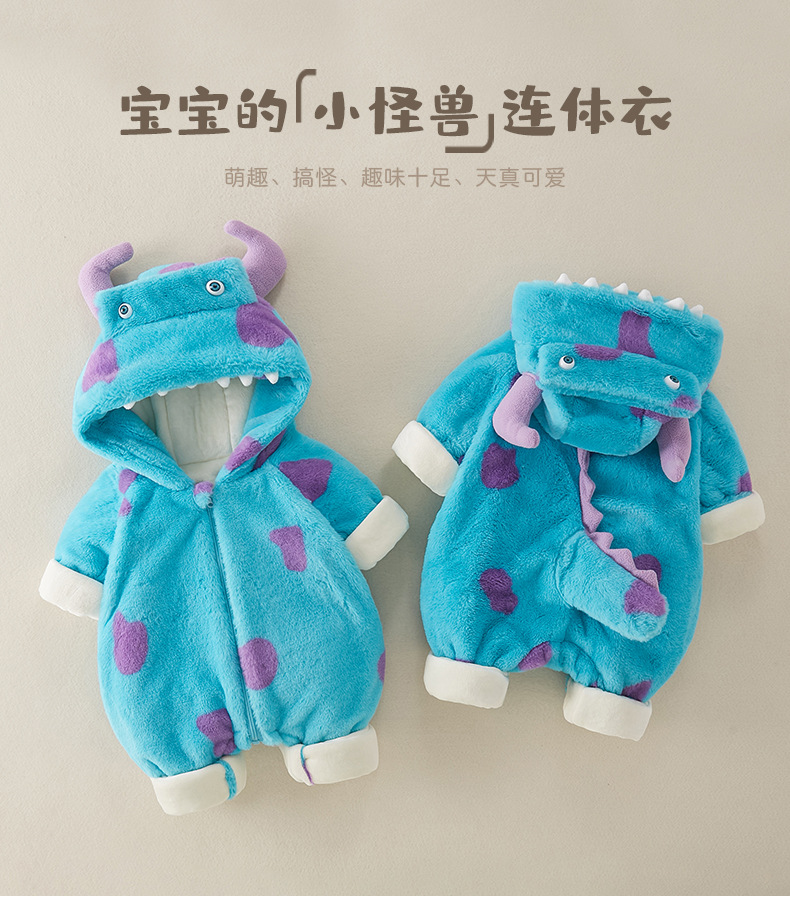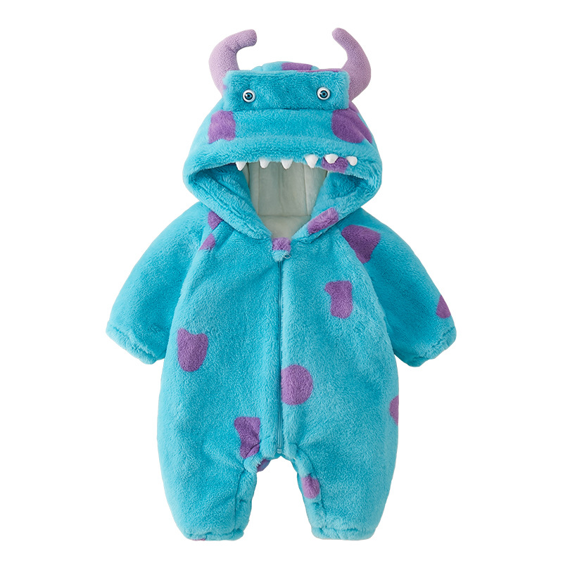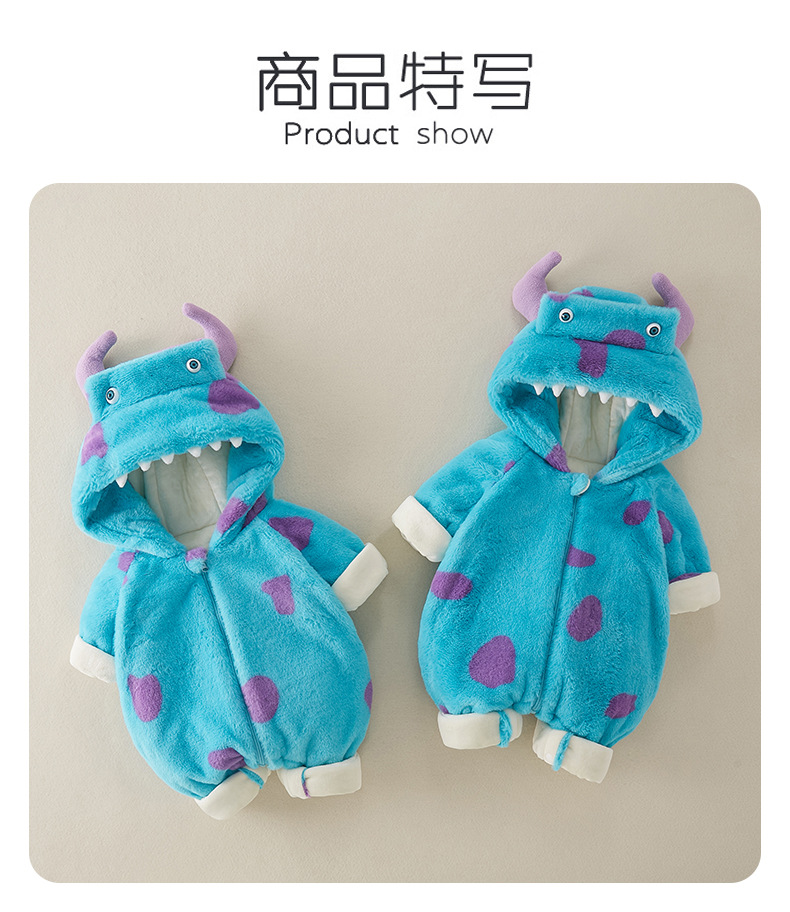 婴儿连体衣冬季夹棉加厚棉服宝宝衣服小怪兽冬装可爱超萌外出抱衣