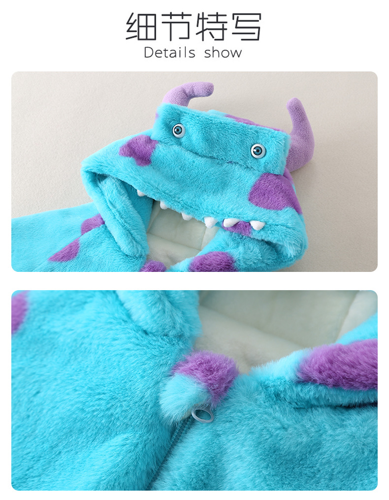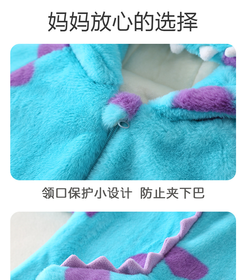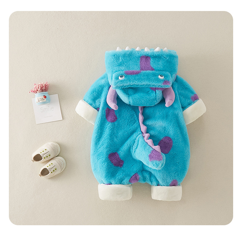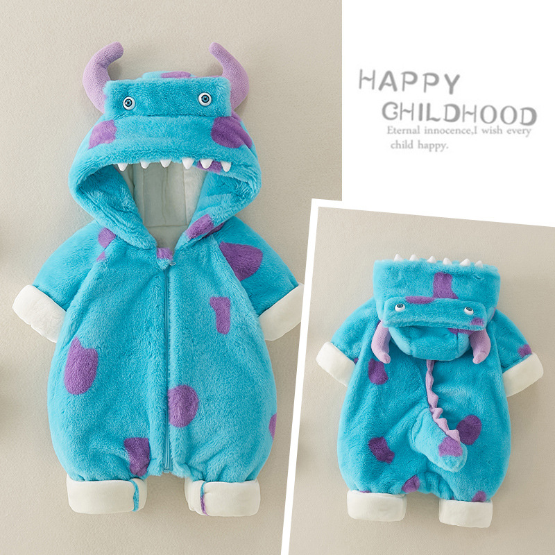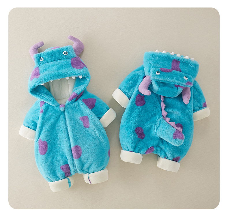 婴儿连体衣冬季夹棉加厚棉服宝宝衣服小怪兽冬装可爱超萌外出抱衣