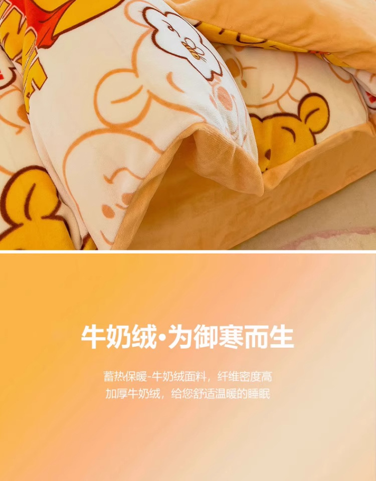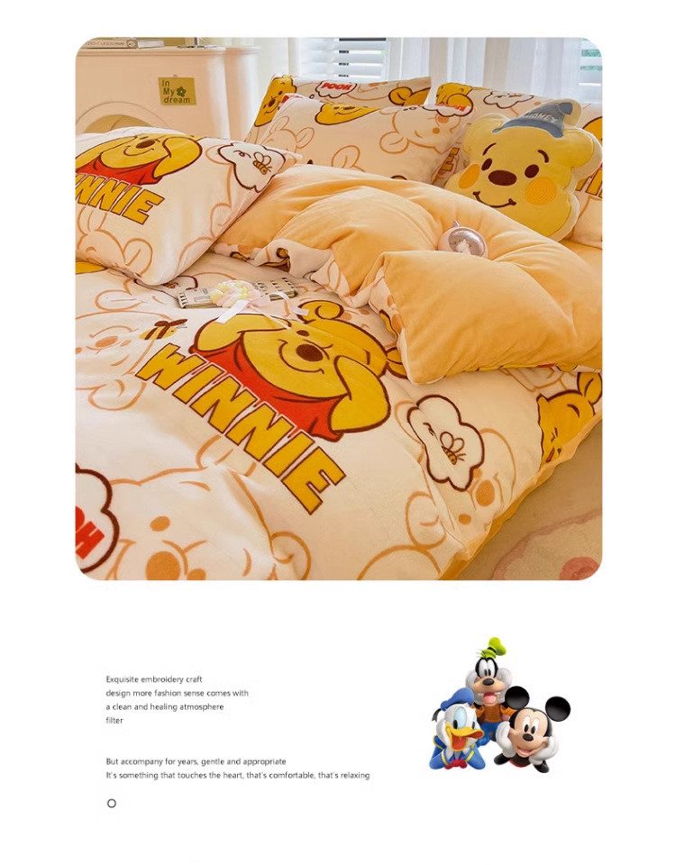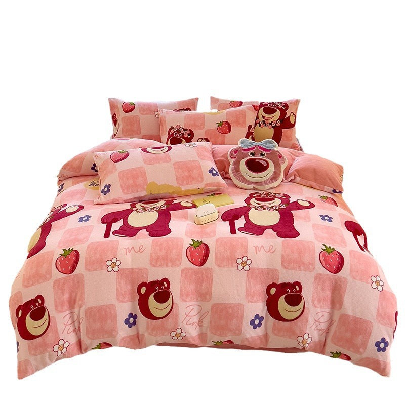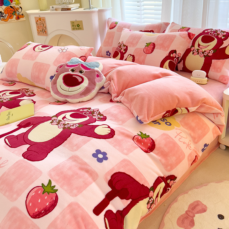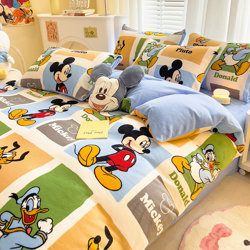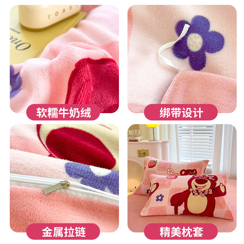 加厚牛奶绒床上四件套冬季双面卡通儿童被套床单加绒珊瑚绒三件套