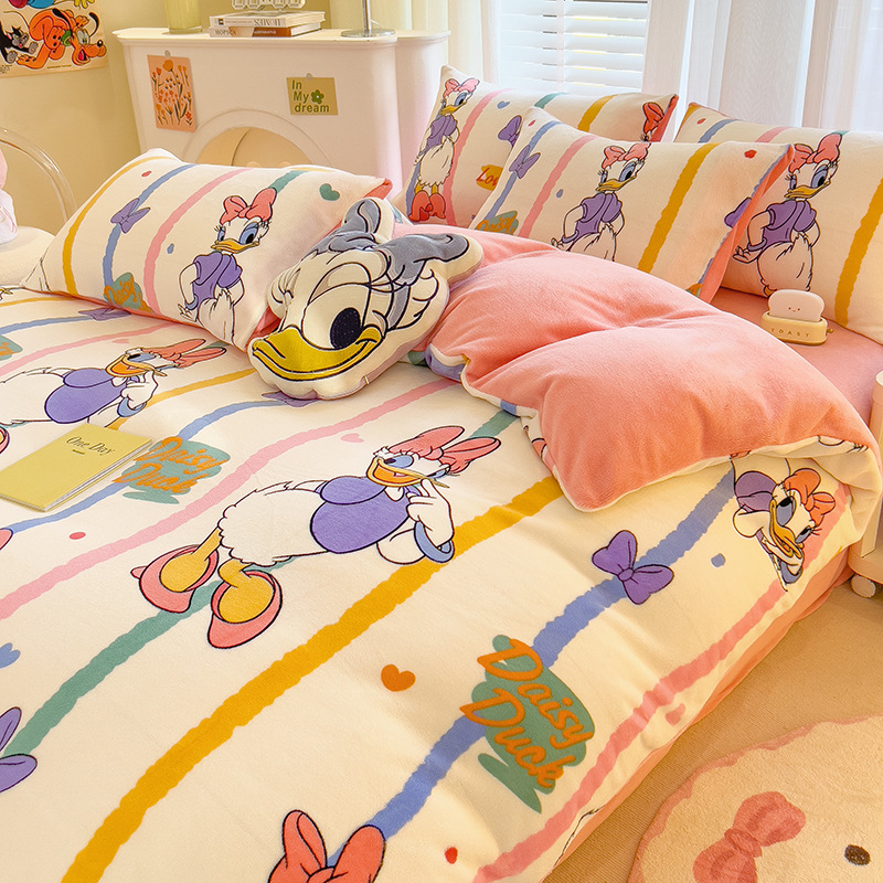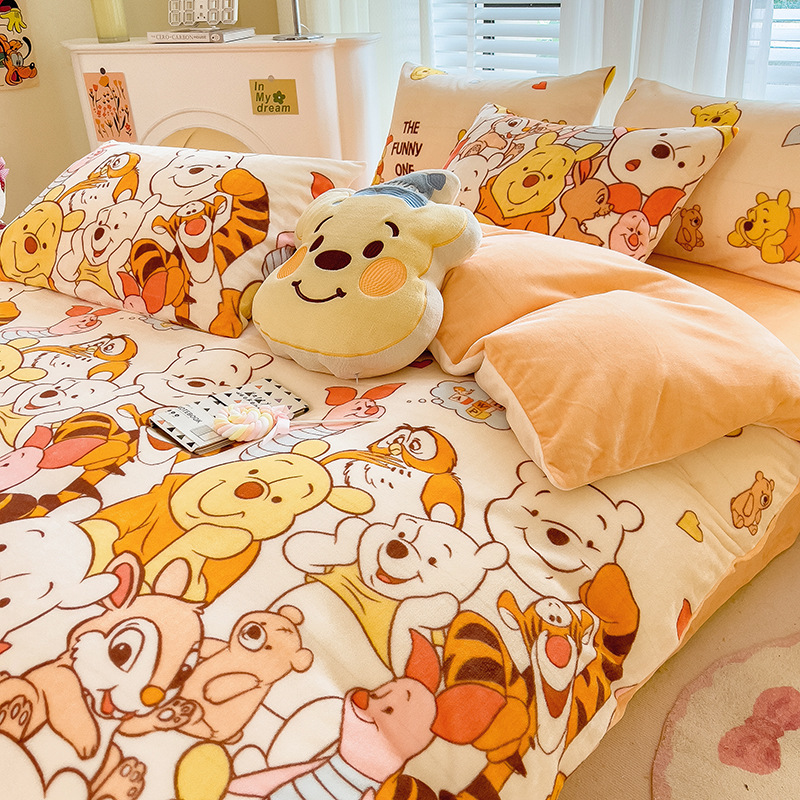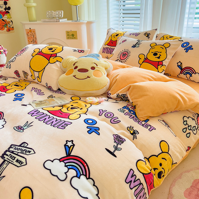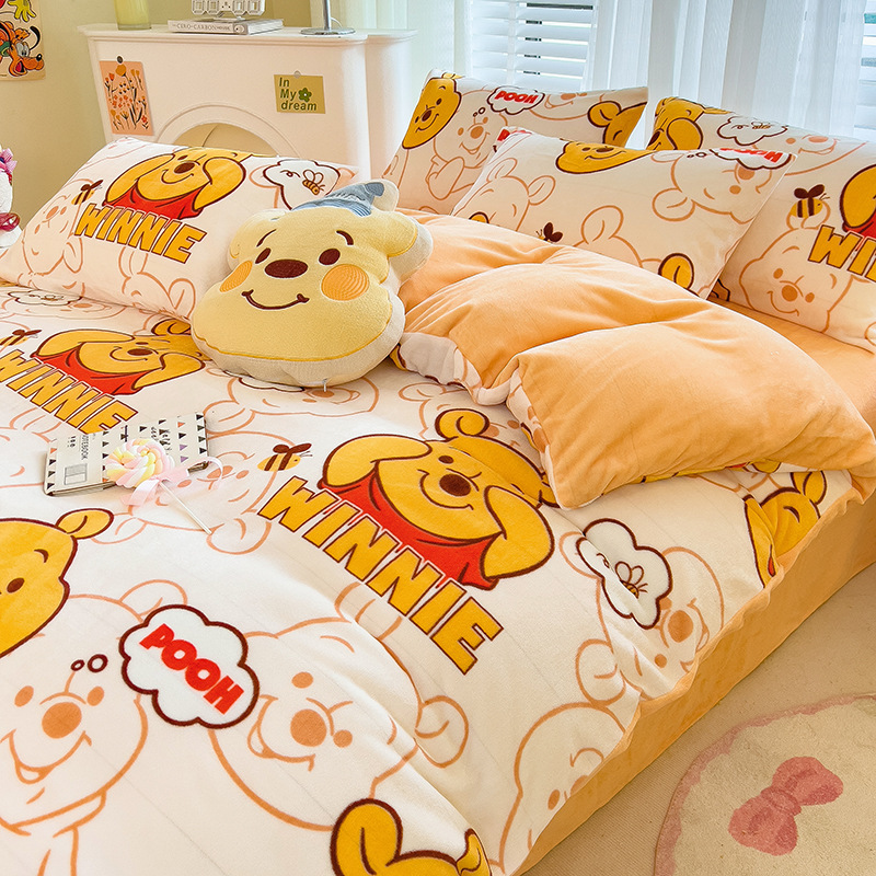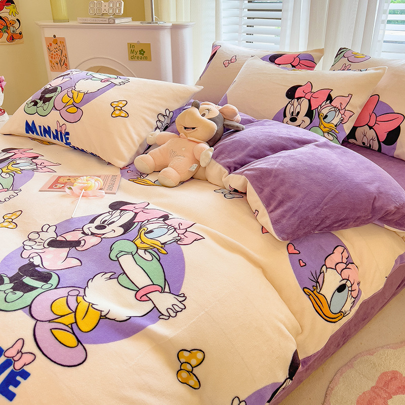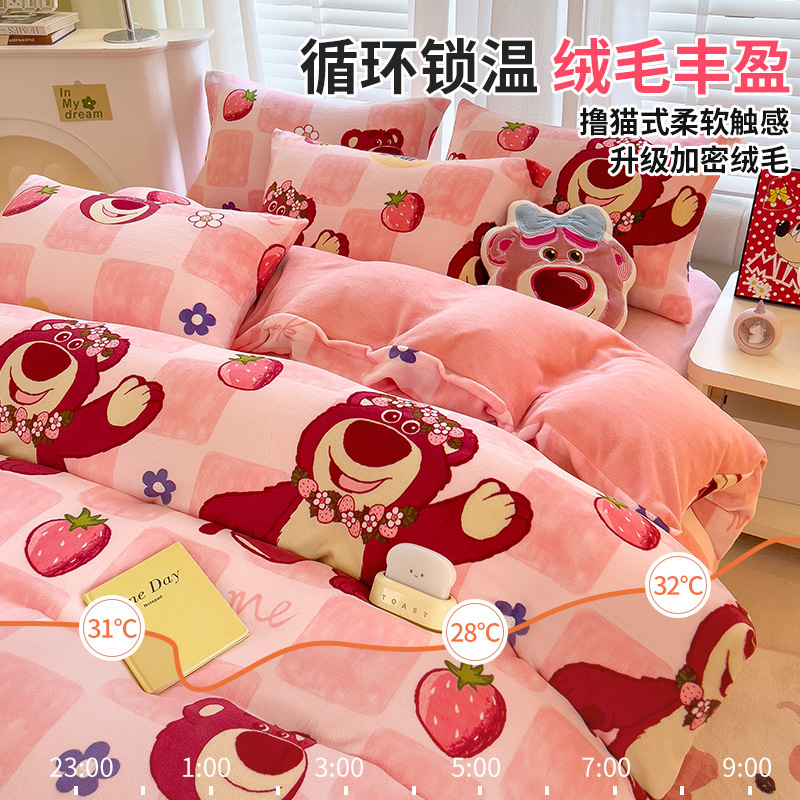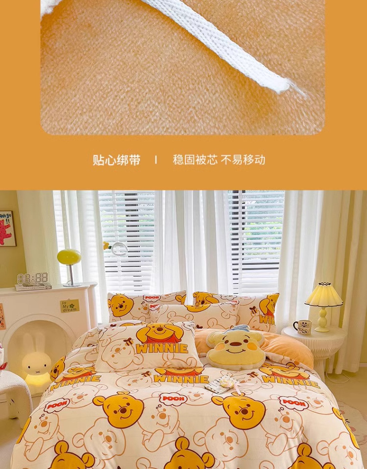 加厚牛奶绒床上四件套冬季双面卡通儿童被套床单加绒珊瑚绒三件套