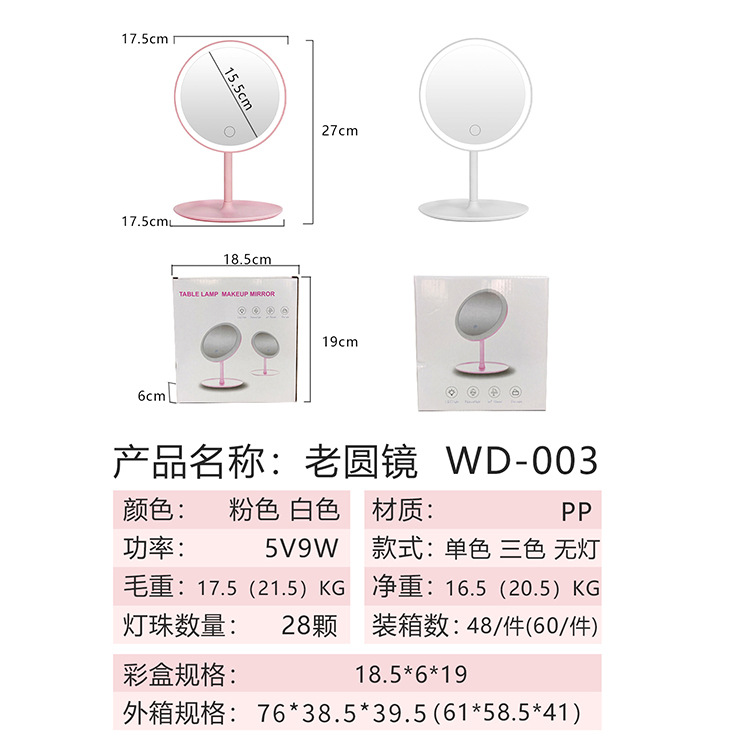led化妆镜带灯台式网红女补光小镜子ins风宿舍桌面便携小型梳妆镜