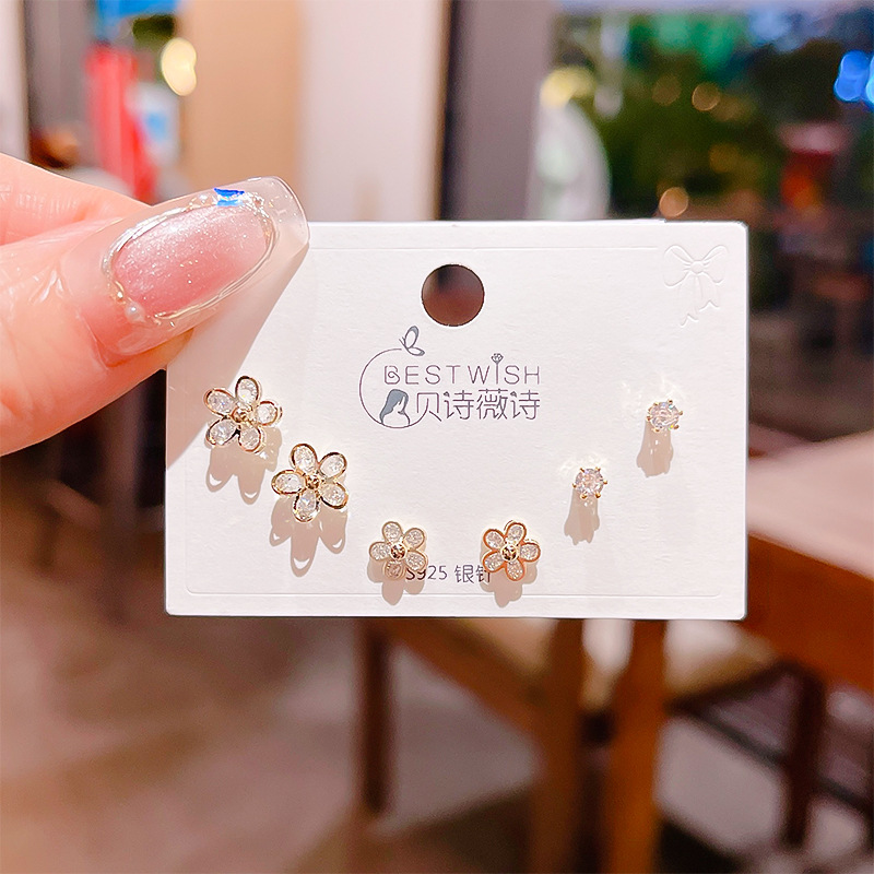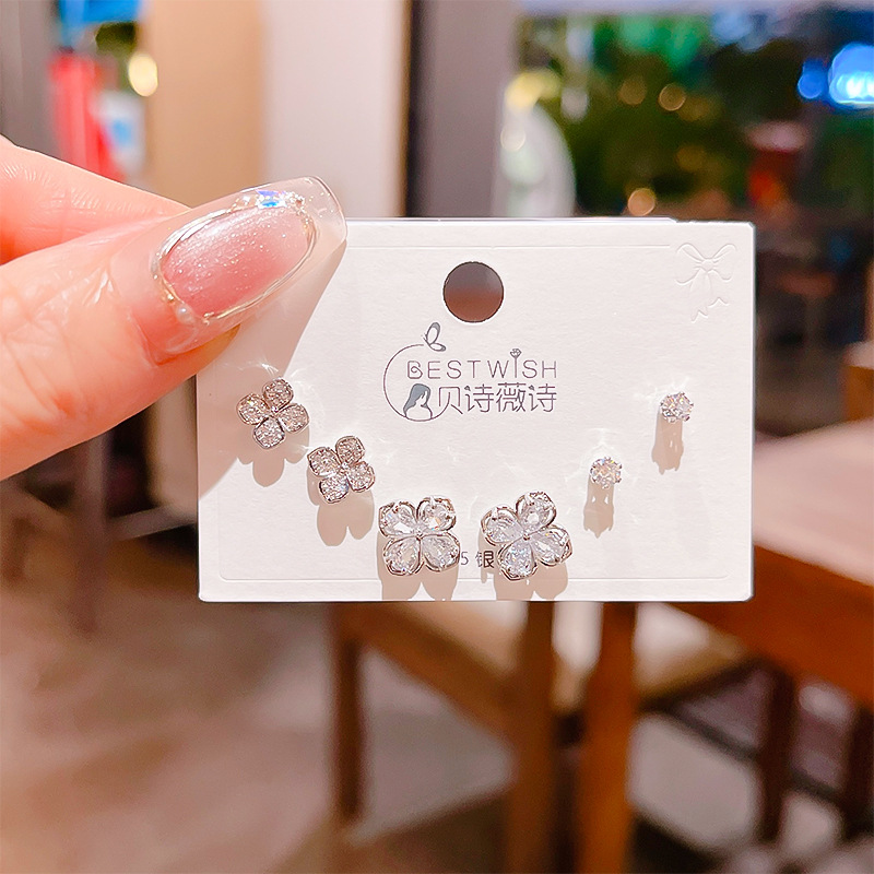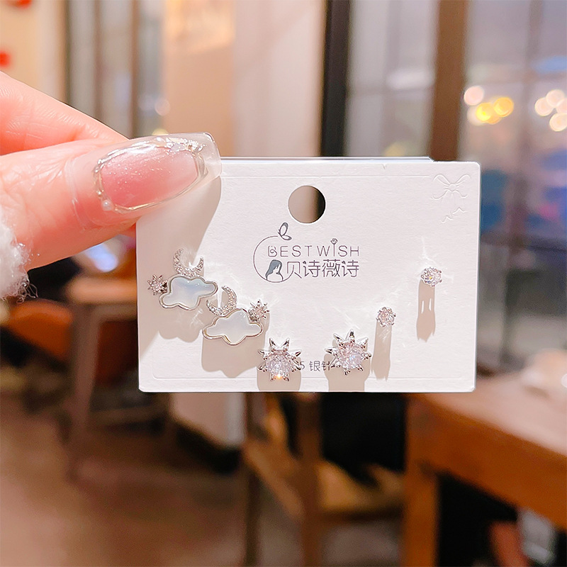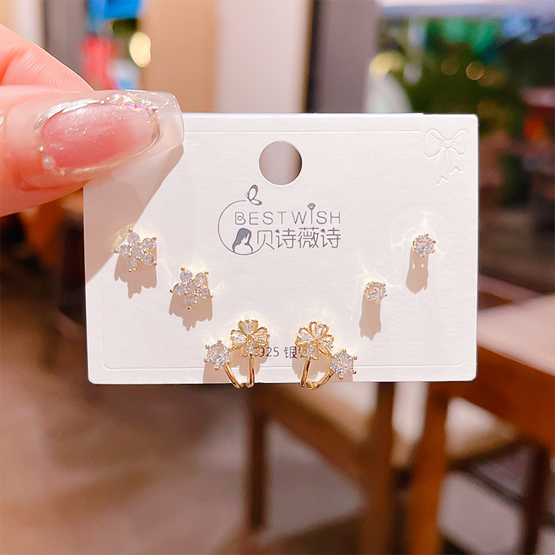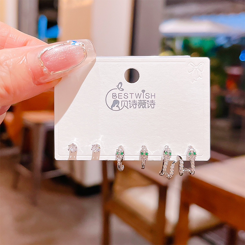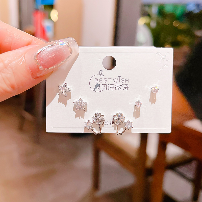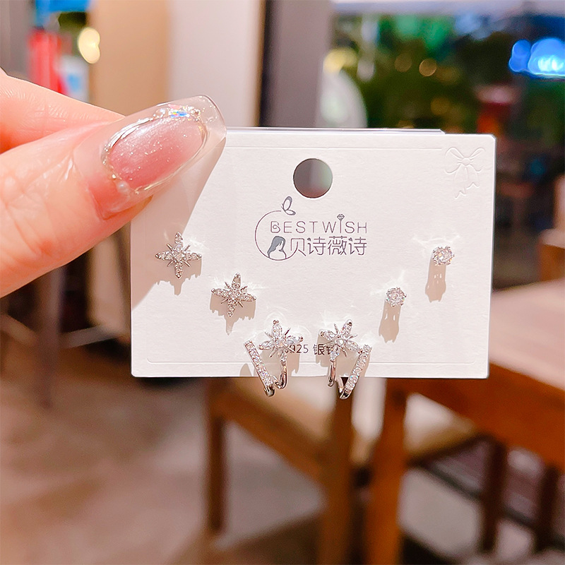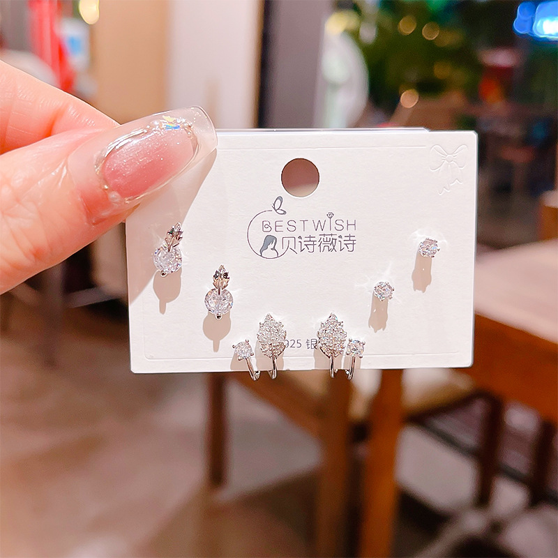高品质感s925银针锆石6件套装小耳钉 女韩版简约气质三对耳钉批发