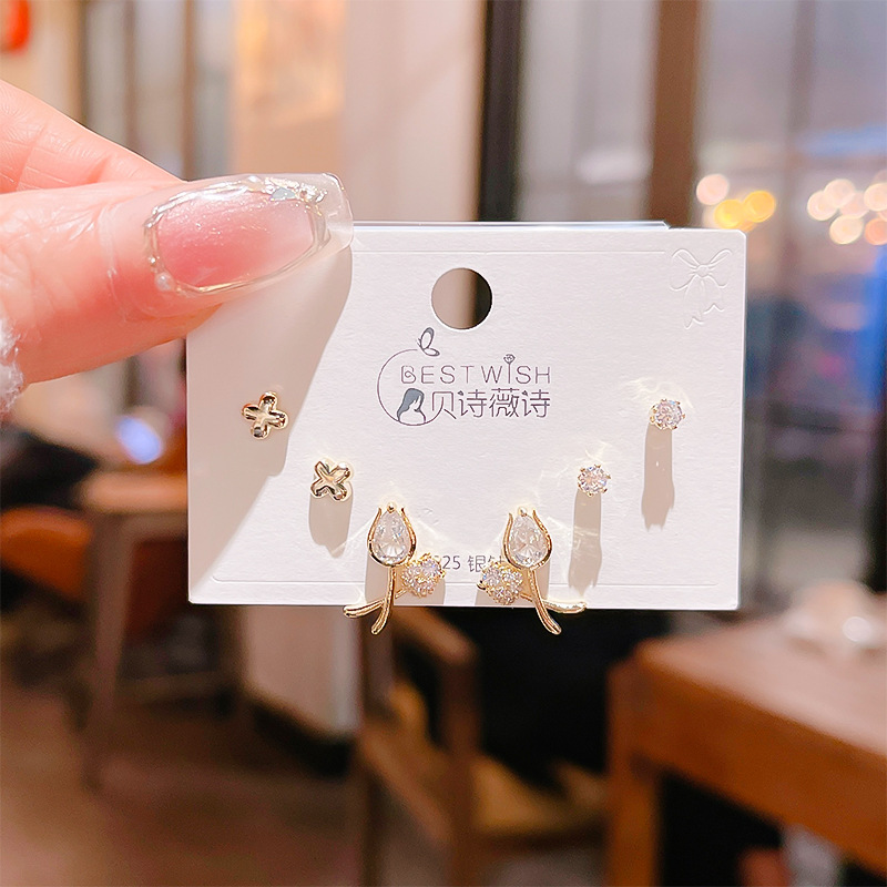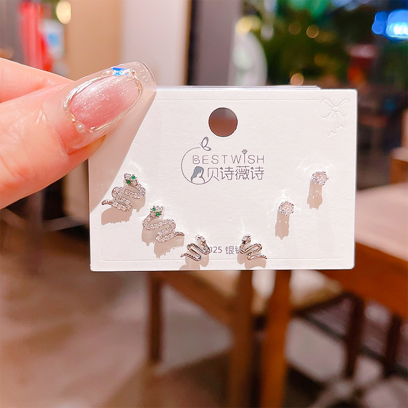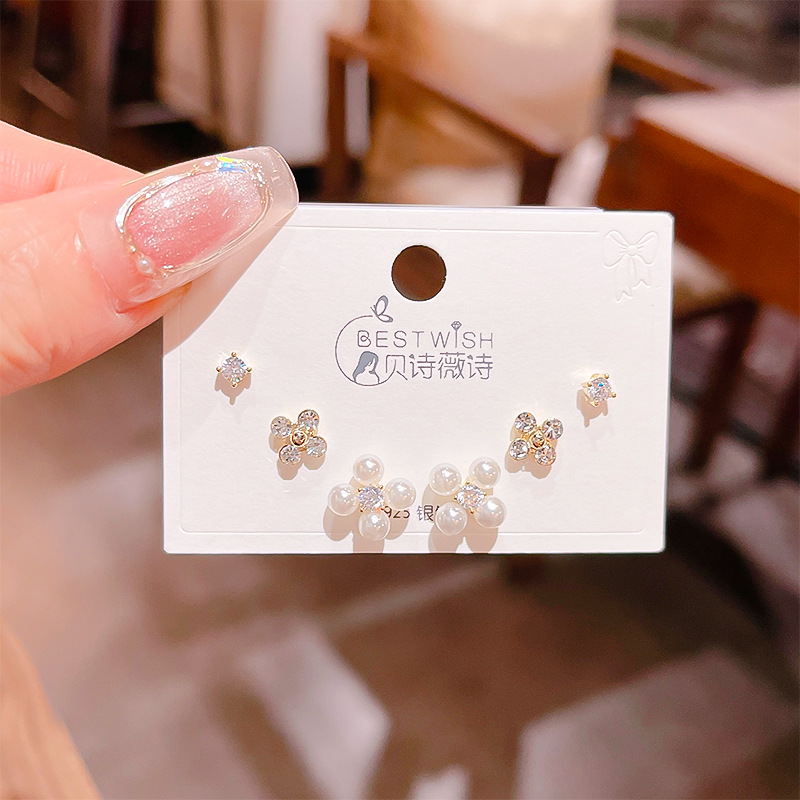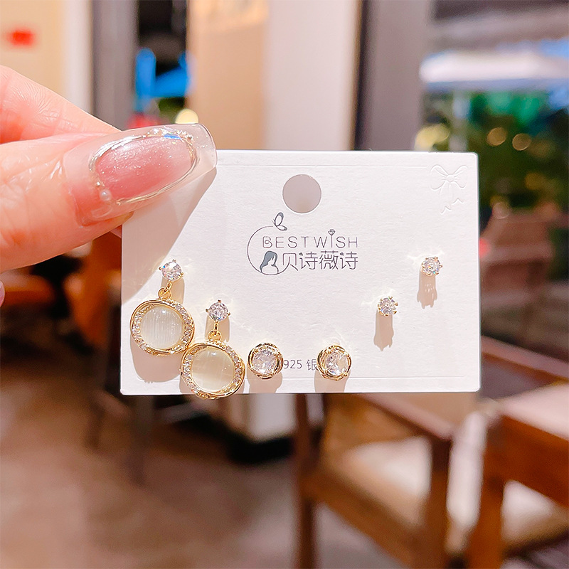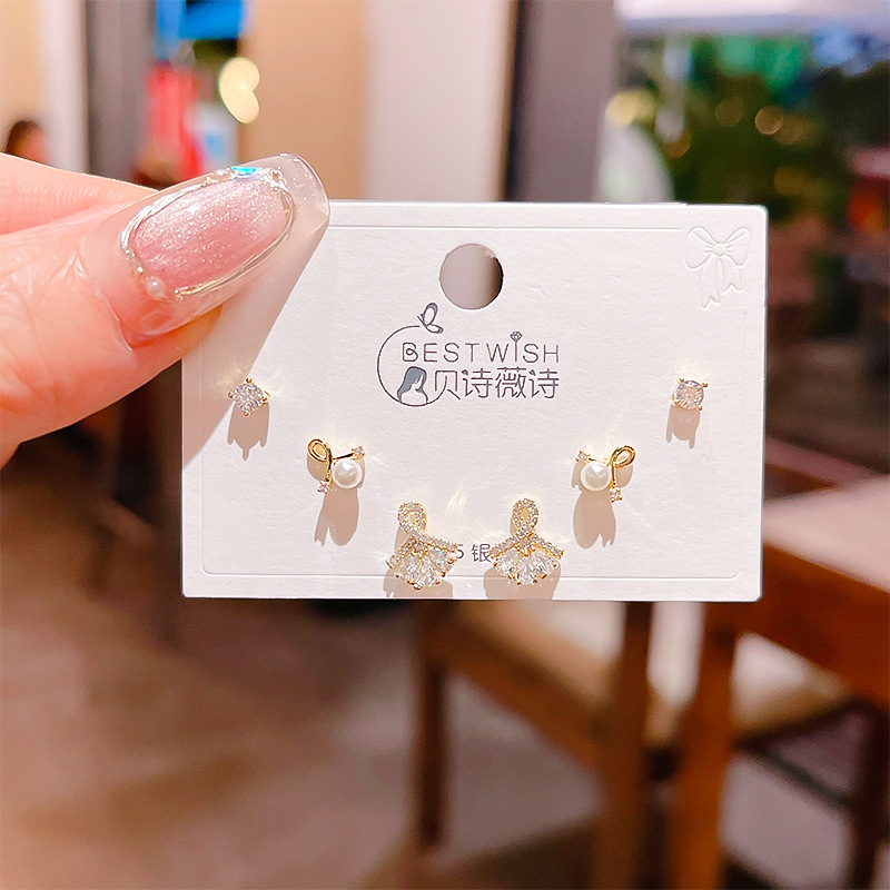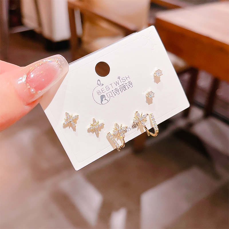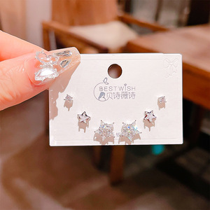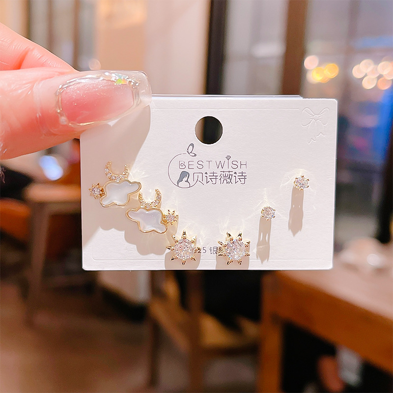 高品质感s925银针锆石6件套装小耳钉 女韩版简约气质三对耳钉批发