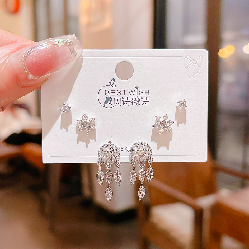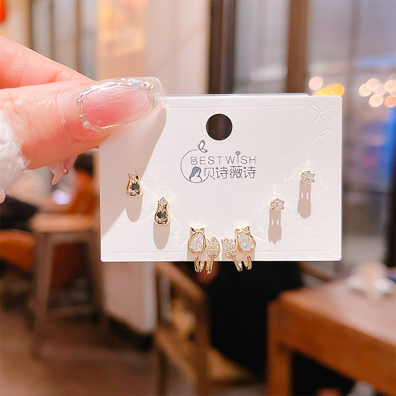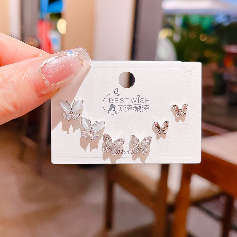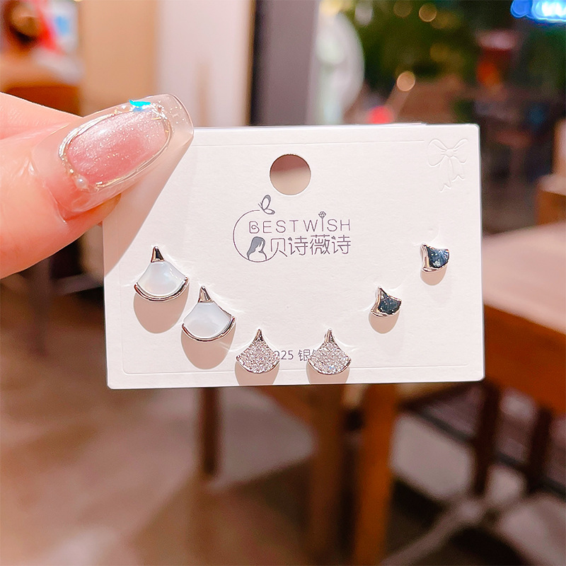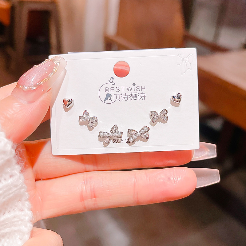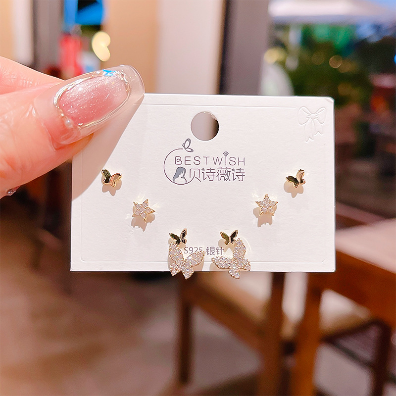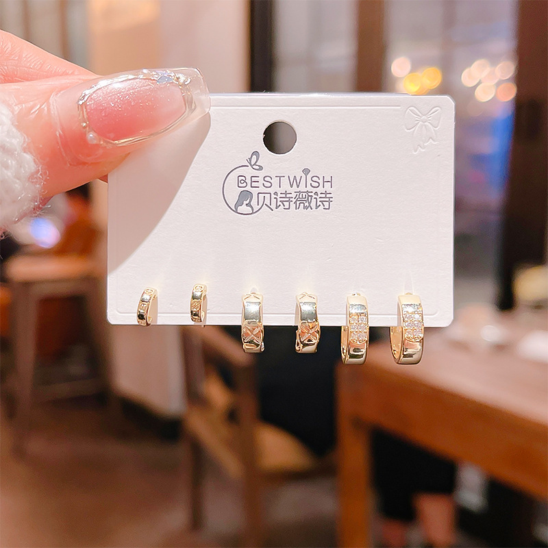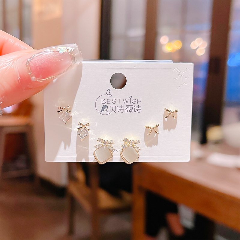 高品质感s925银针锆石6件套装小耳钉 女韩版简约气质三对耳钉批发
