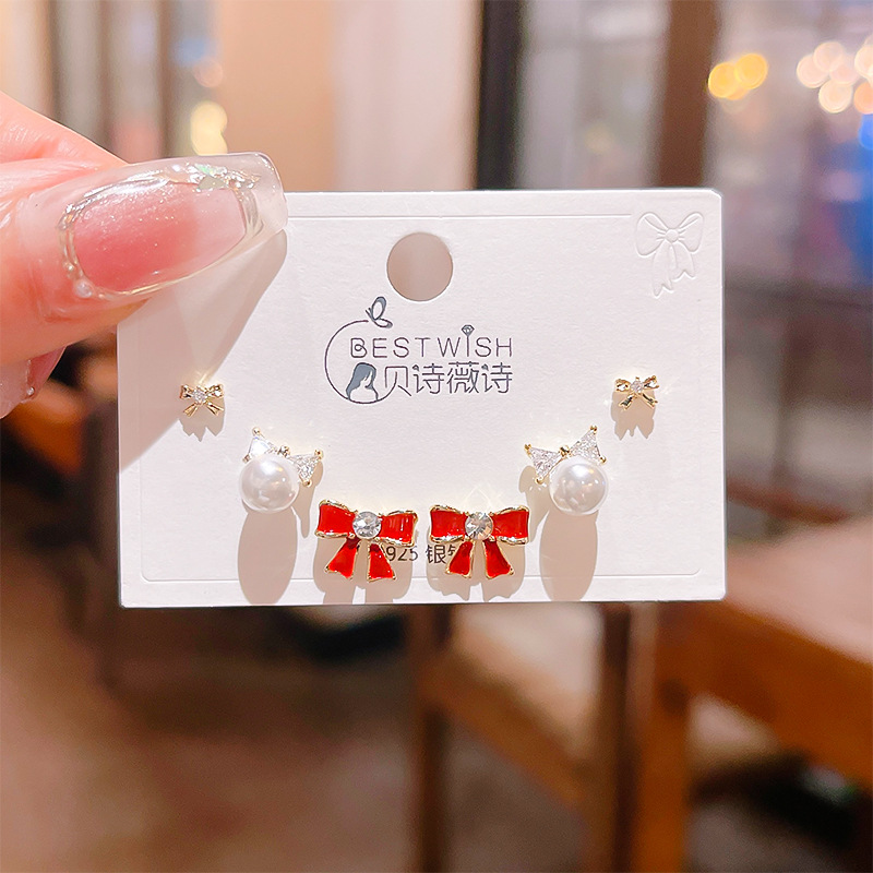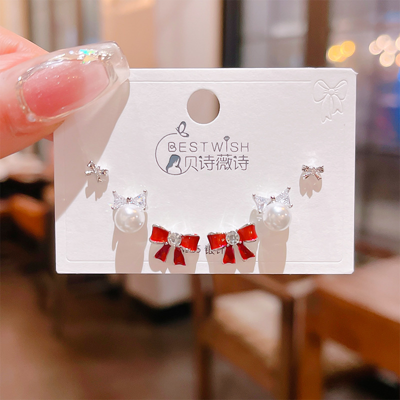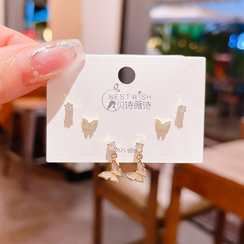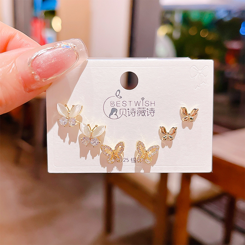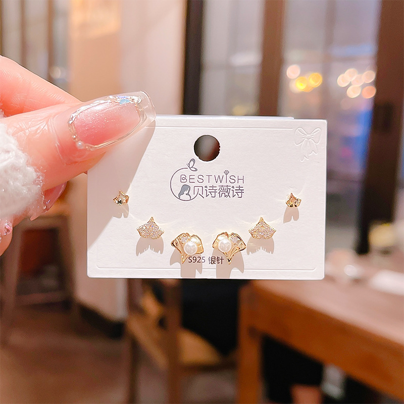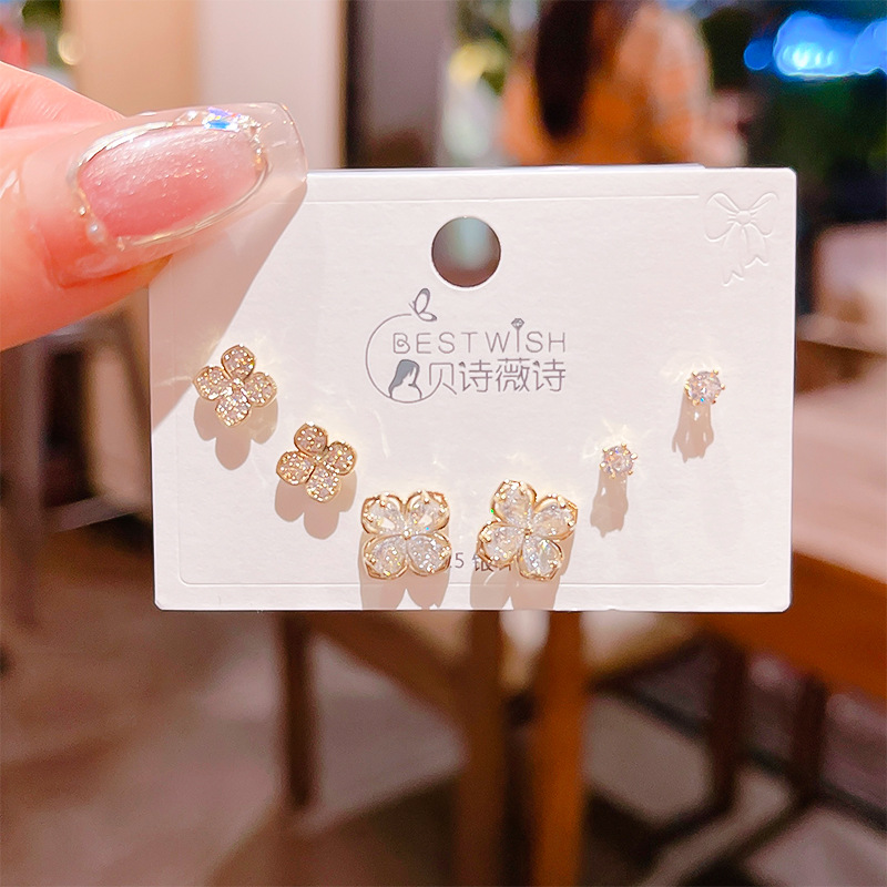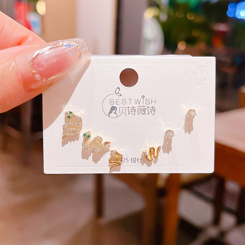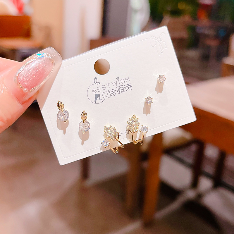 高品质感s925银针锆石6件套装小耳钉 女韩版简约气质三对耳钉批发