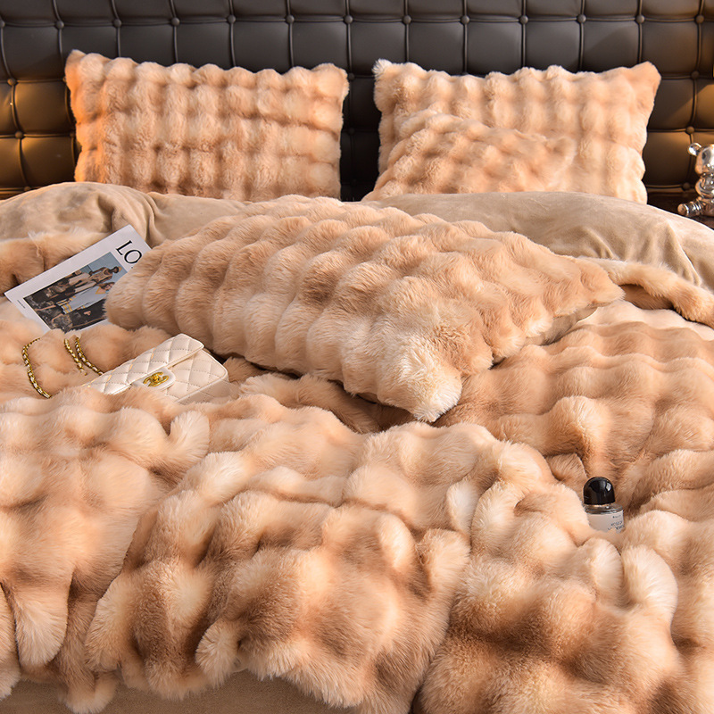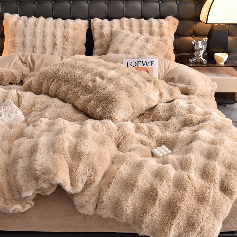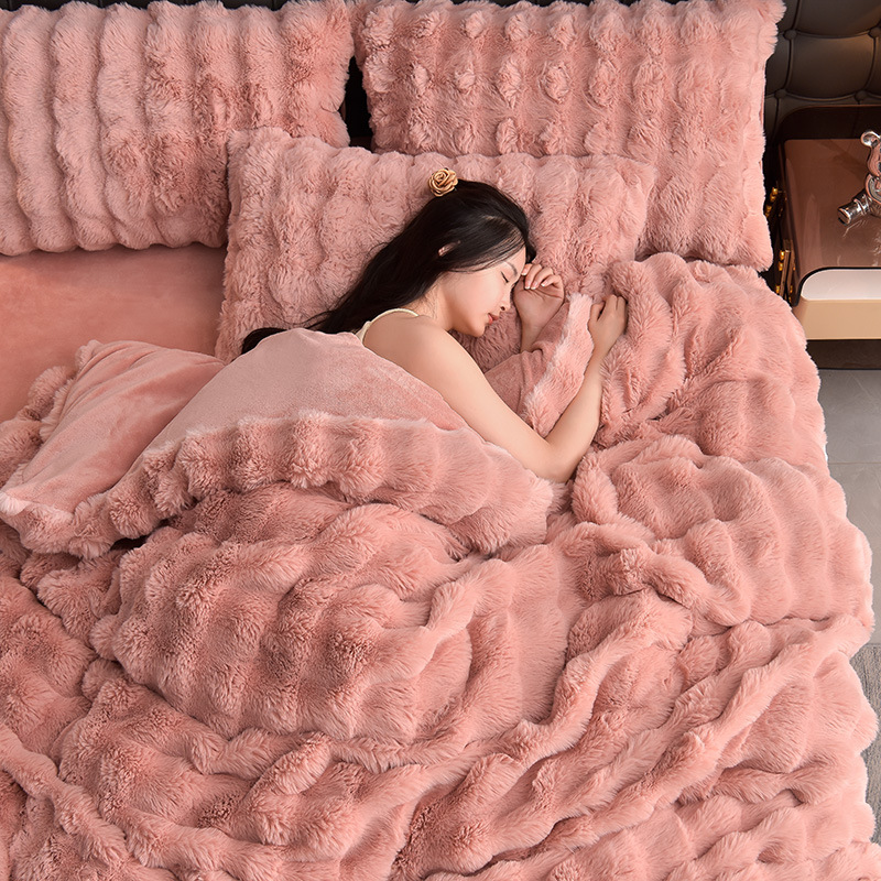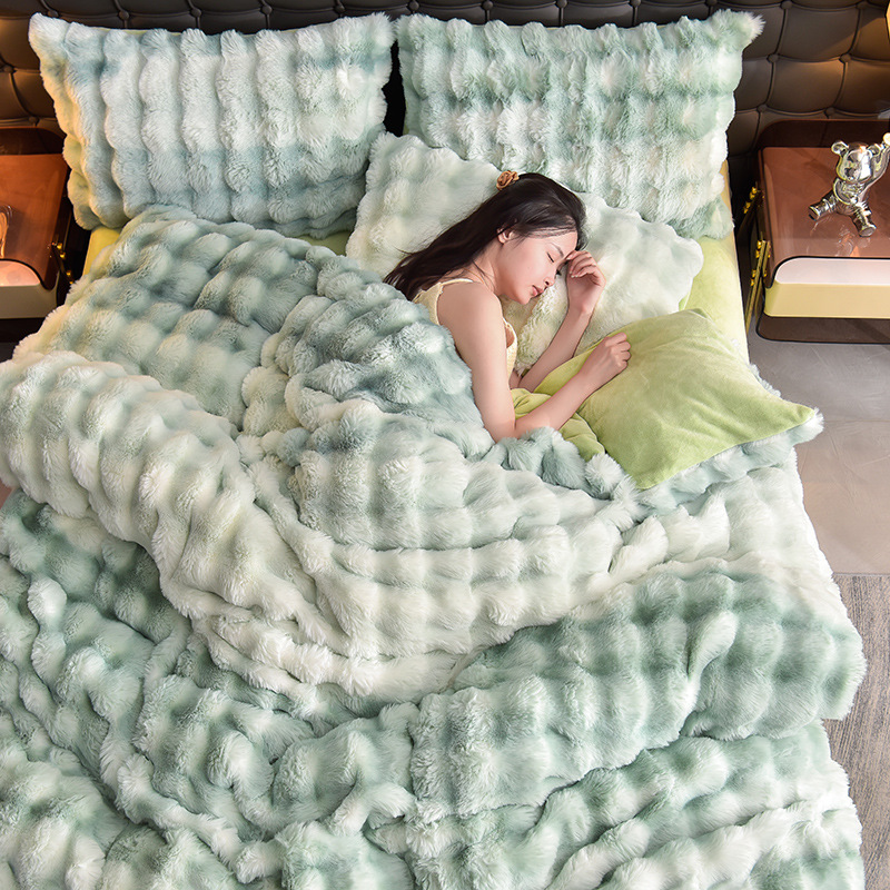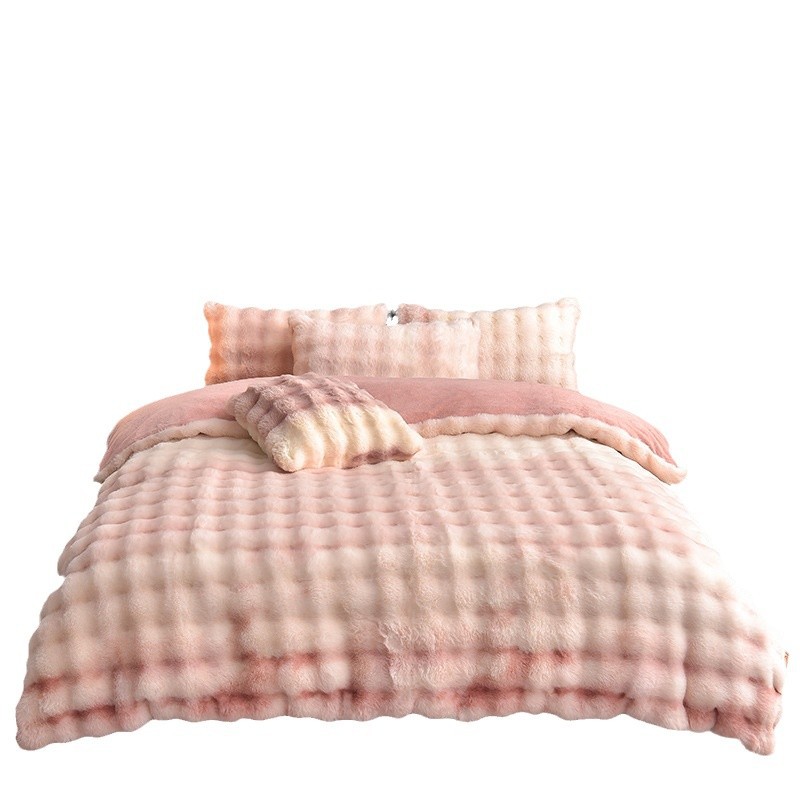 2024新款轻奢兔兔绒四件套加厚保暖牛奶绒兔毛扎染床单被套三件套