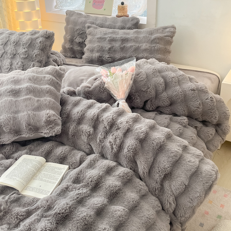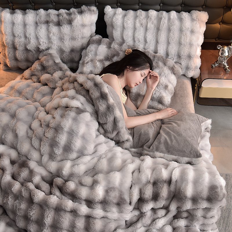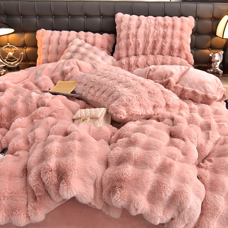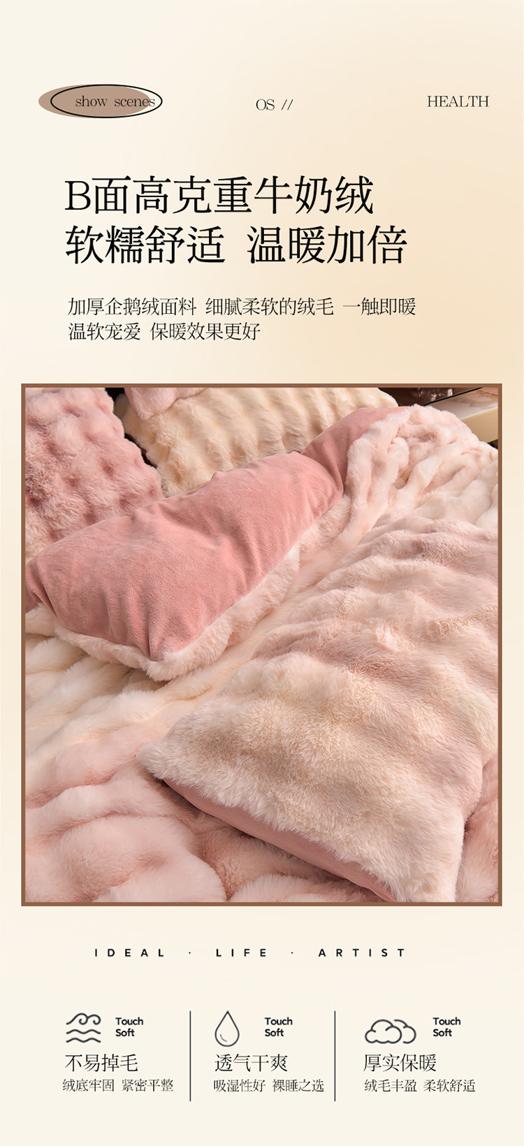 2024新款轻奢兔兔绒四件套加厚保暖牛奶绒兔毛扎染床单被套三件套