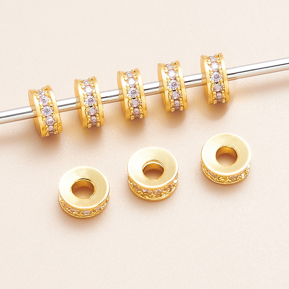 铜镀18K金强保色镶钻隔圈钻圈圆形隔片隔珠车轮钻手串饰品配件