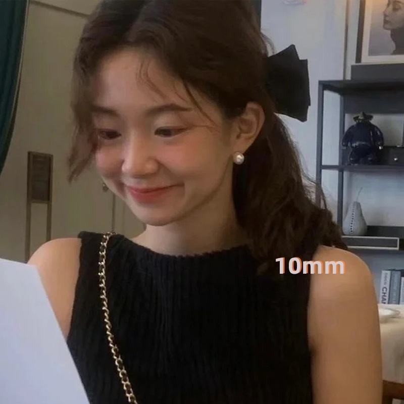 韩版简约气质S925银针圆形珍珠耳钉女复古港风百搭小众防过敏耳饰