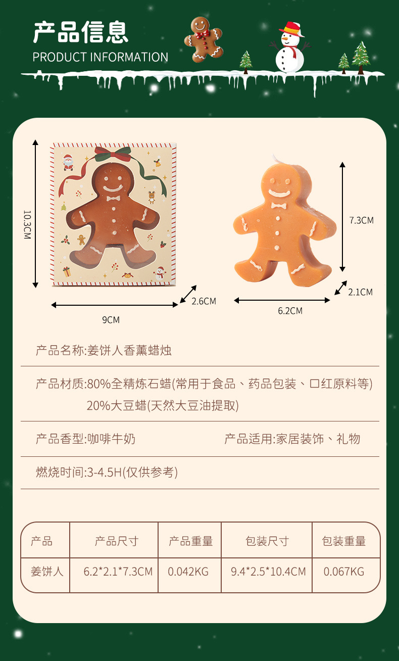 姜饼人圣诞节日香薰蜡烛礼物香味造型蜡圣诞节伴手礼香氛跨境蜡烛