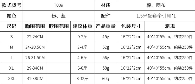 | S码-【2斤内/1.5m牵引绳】 | USD $2.34 | 3458 piece available |